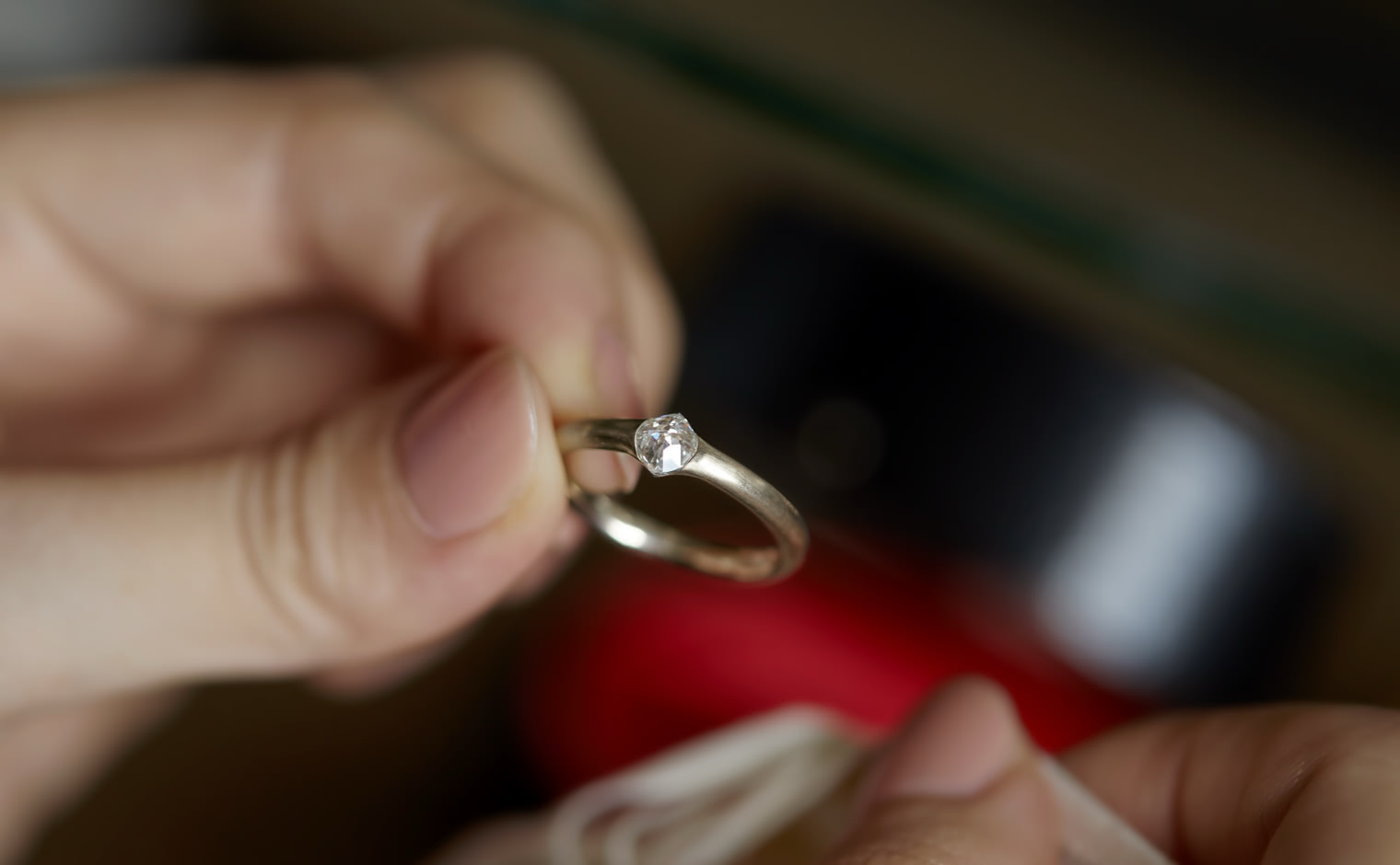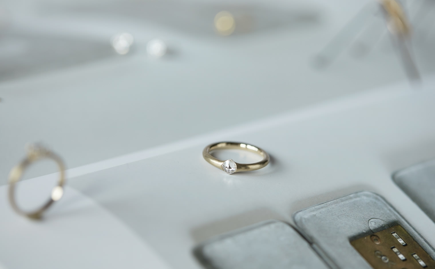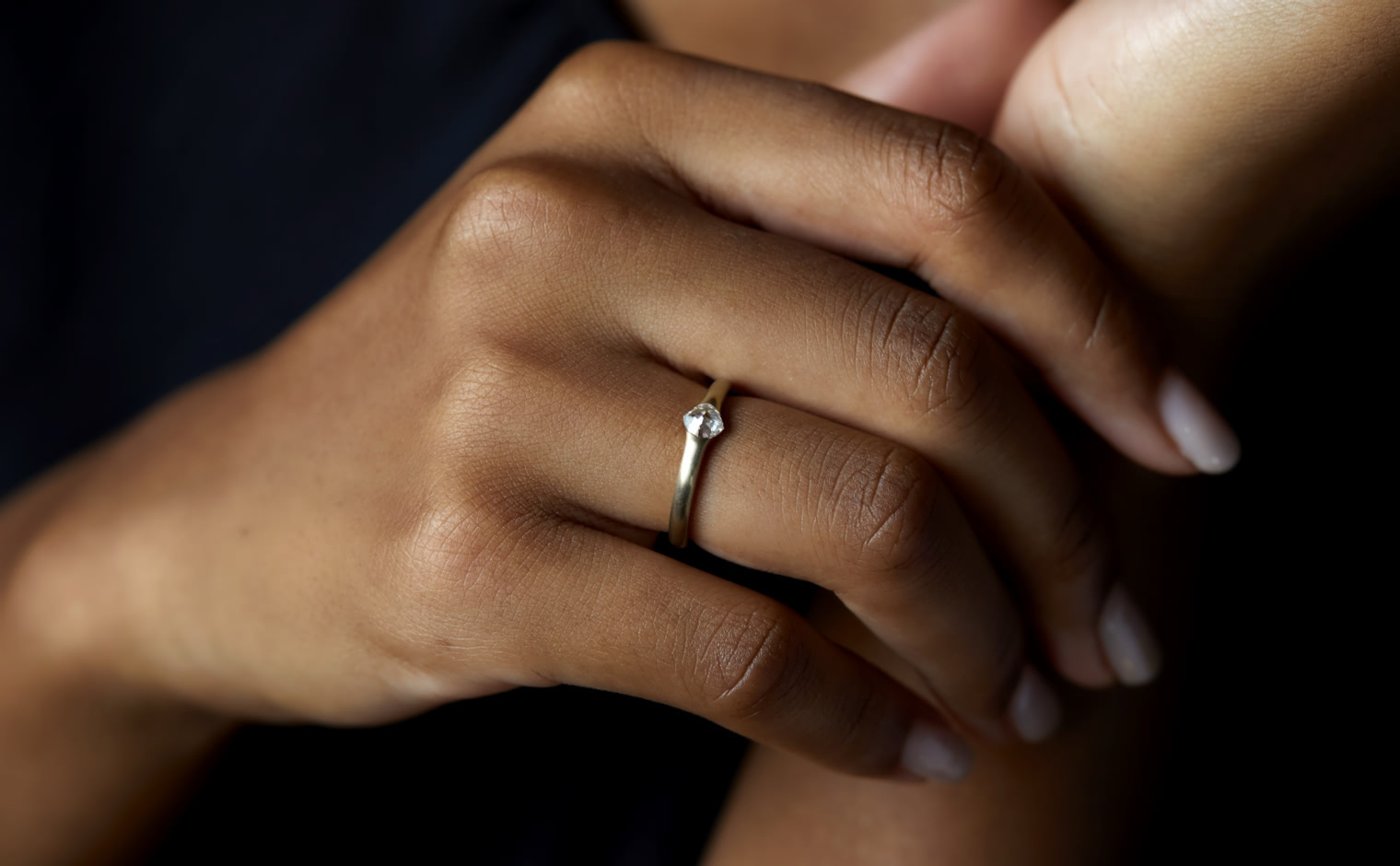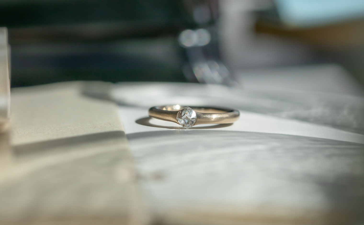 Back-to-back brilliance. With its two pristinely dazzling hand-cut diamonds set back-to-back with their culets exposed, one center and one under, embedded in the middle of a wide, partially polished band, the Diamond Adamas Ring–Iceberg denotes the timeless truth, that love must be strong and pure.