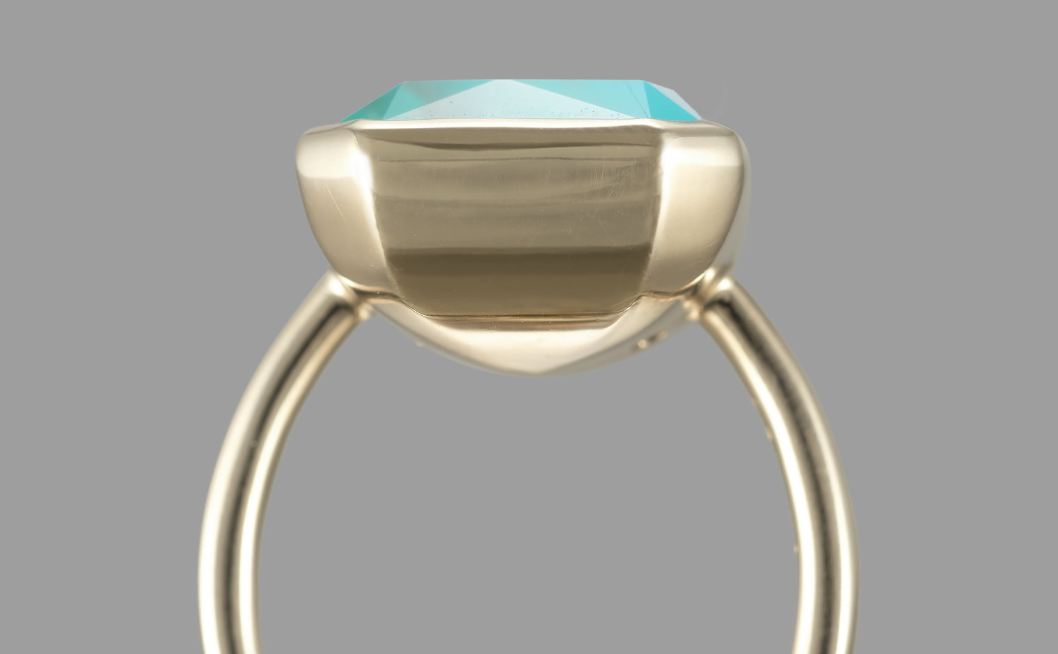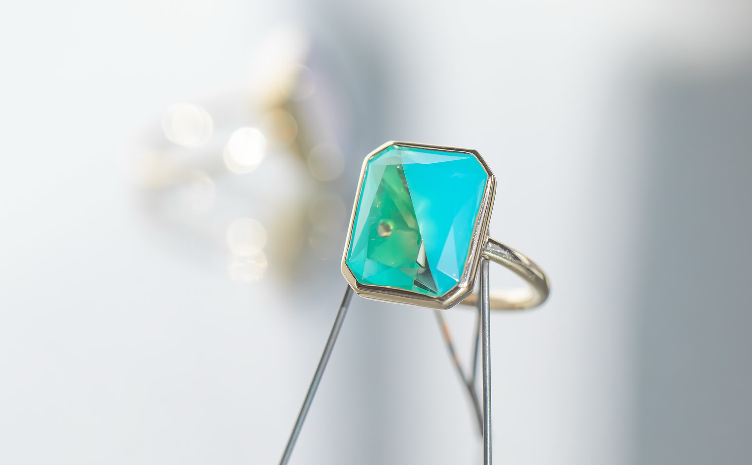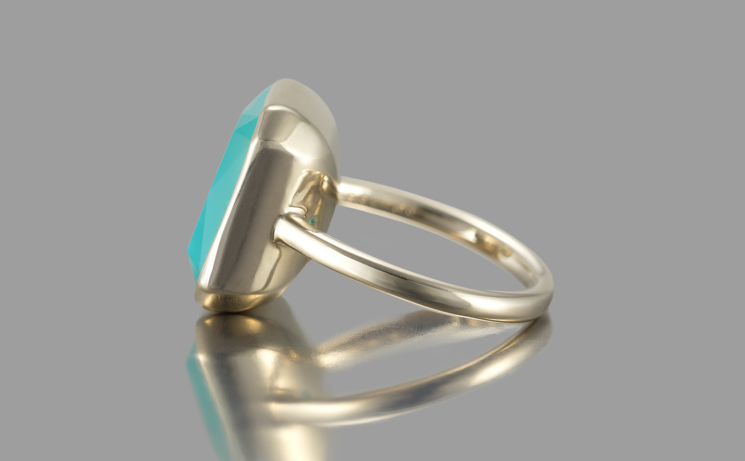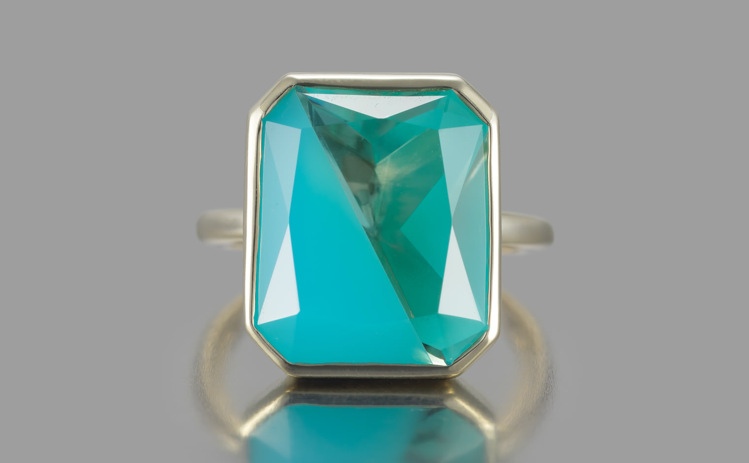 With its Sea Blue Chalcedony and Quartz masterfully cut and held together on a handcrafted polished custom metal setting, the dual-toned Azure Horizon Ring captures the untouched magic of nature’s pristine water paradise on your finger.