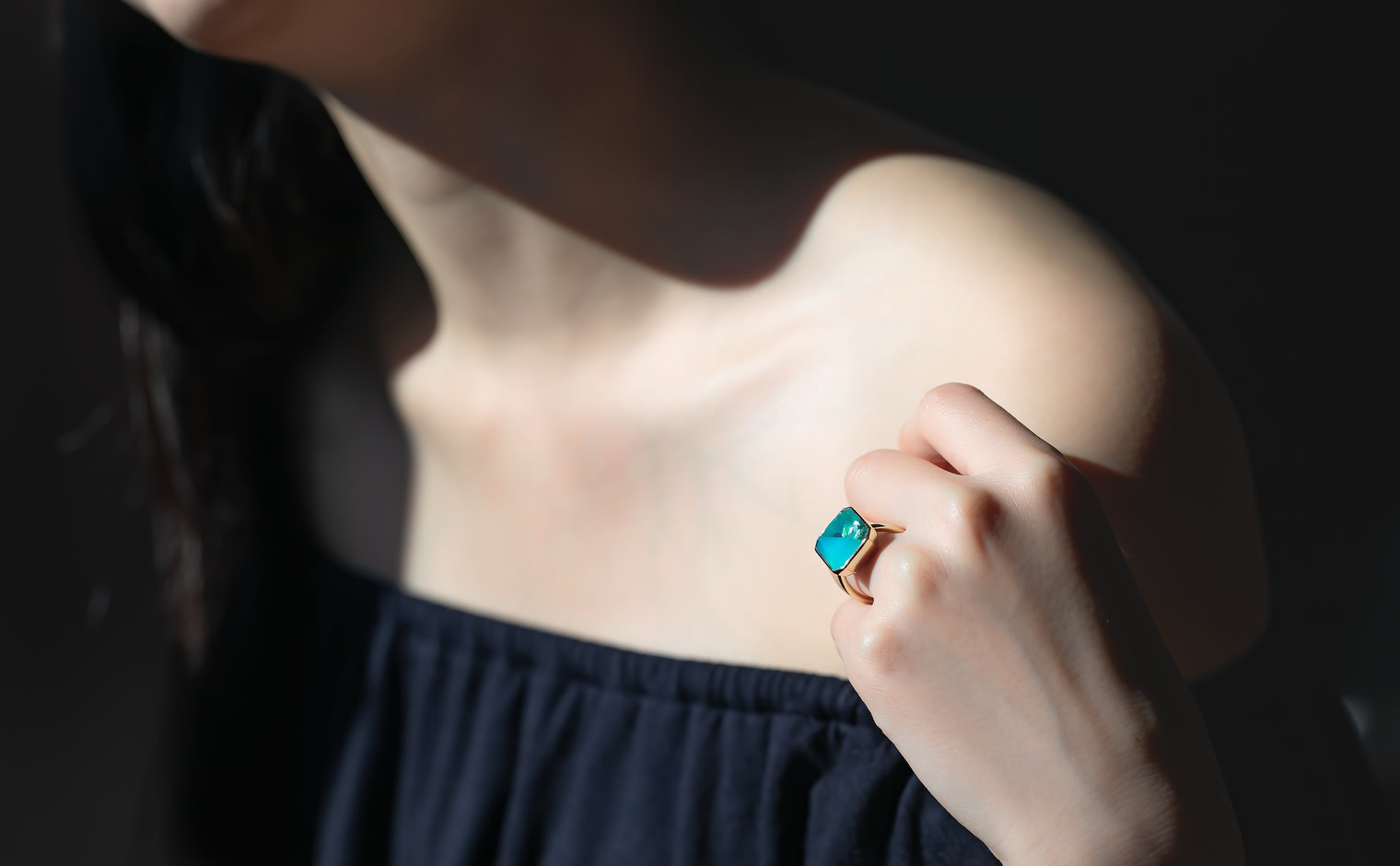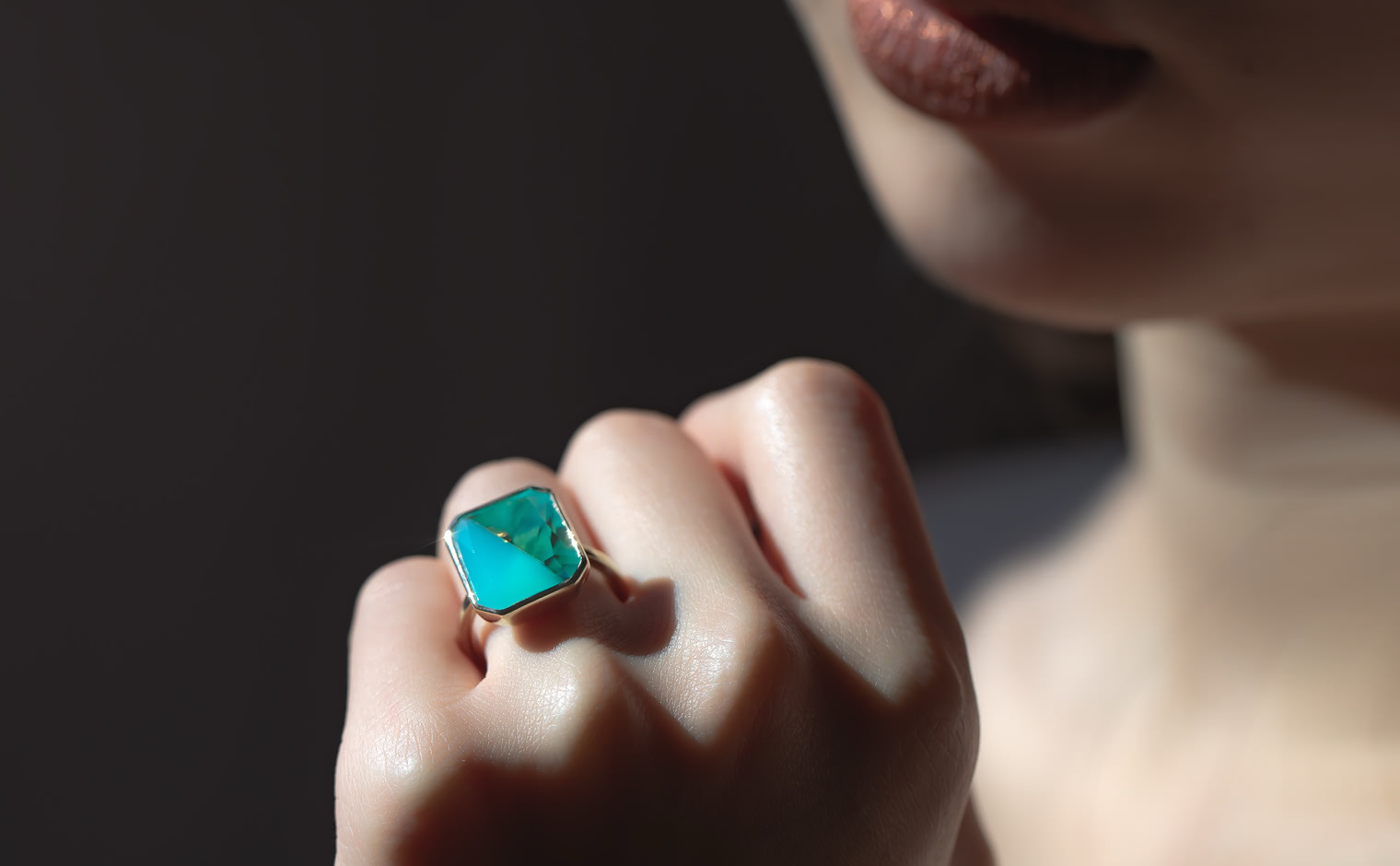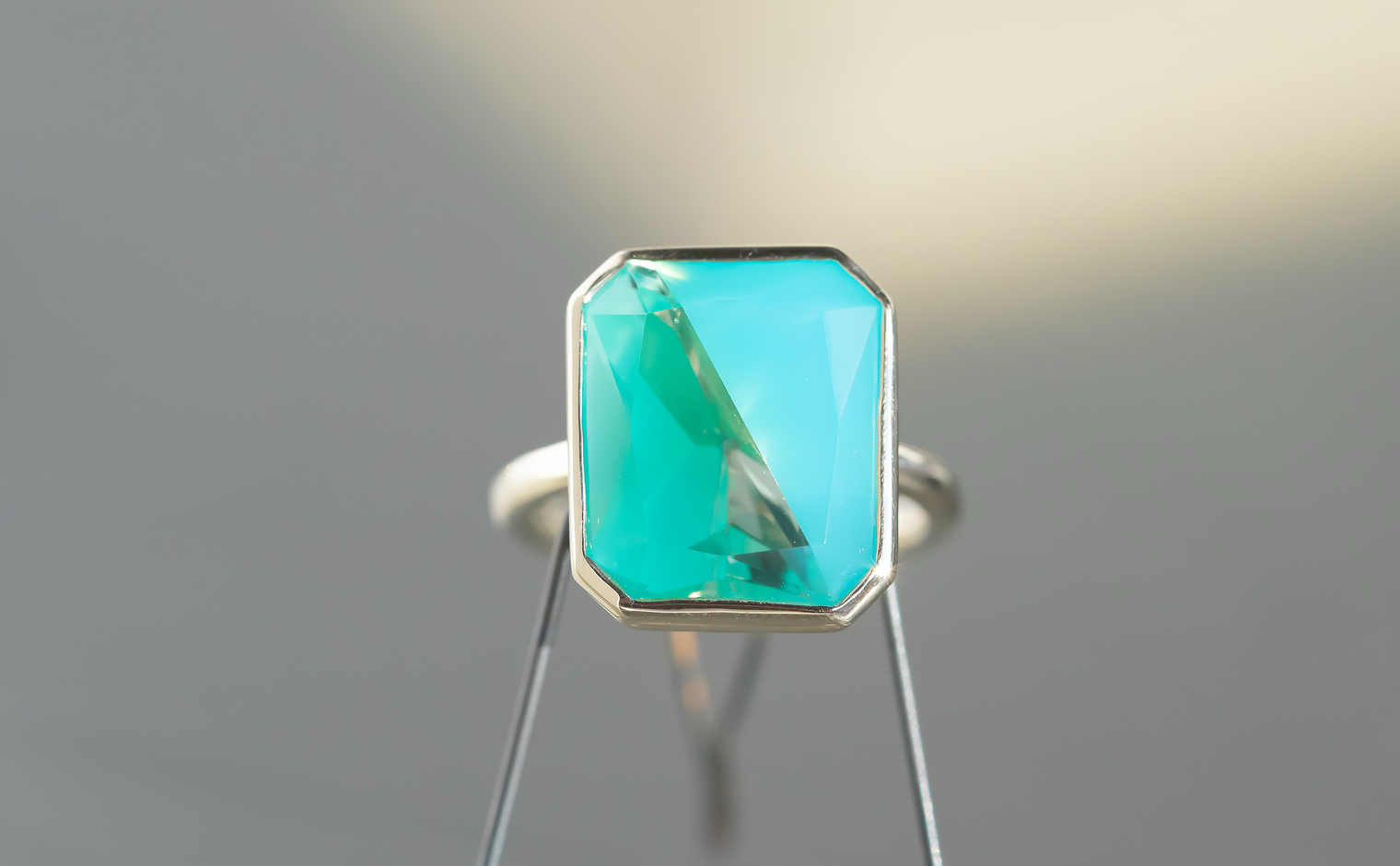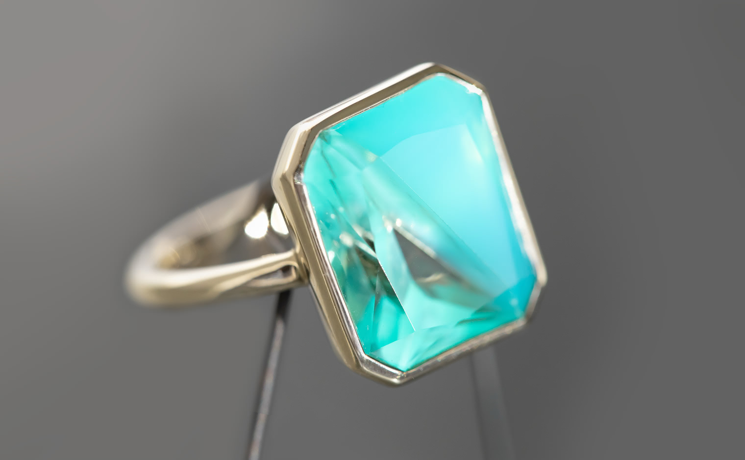 With its Sea Blue Chalcedony and Quartz masterfully cut and held together on a handcrafted polished custom metal setting, the dual-toned Azure Horizon Ring captures the untouched magic of nature’s pristine water paradise on your finger.