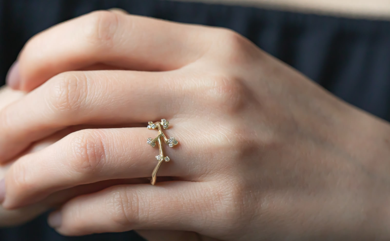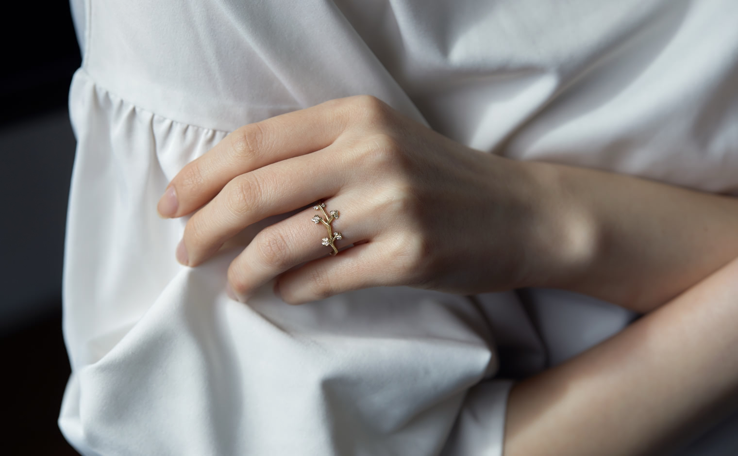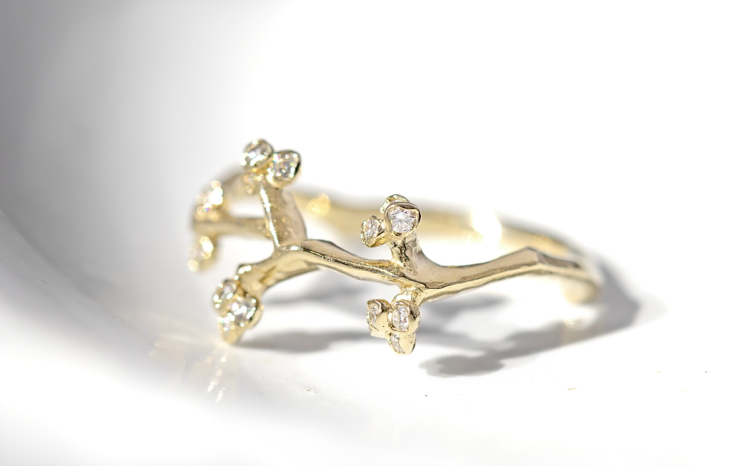 A delicate dance of light, where diamonds trace the essence of nature’s grace. The Branches Ring reflects organic artistry—a luminous expression of movement, elegance, and quiet sophistication.