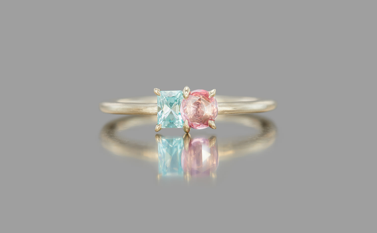 A soft harmony of color and light unfolds in quiet balance. The Calyx Ring–Sapphire & Emerald embodies enduring elegance, a refined expression of artistry and grace.