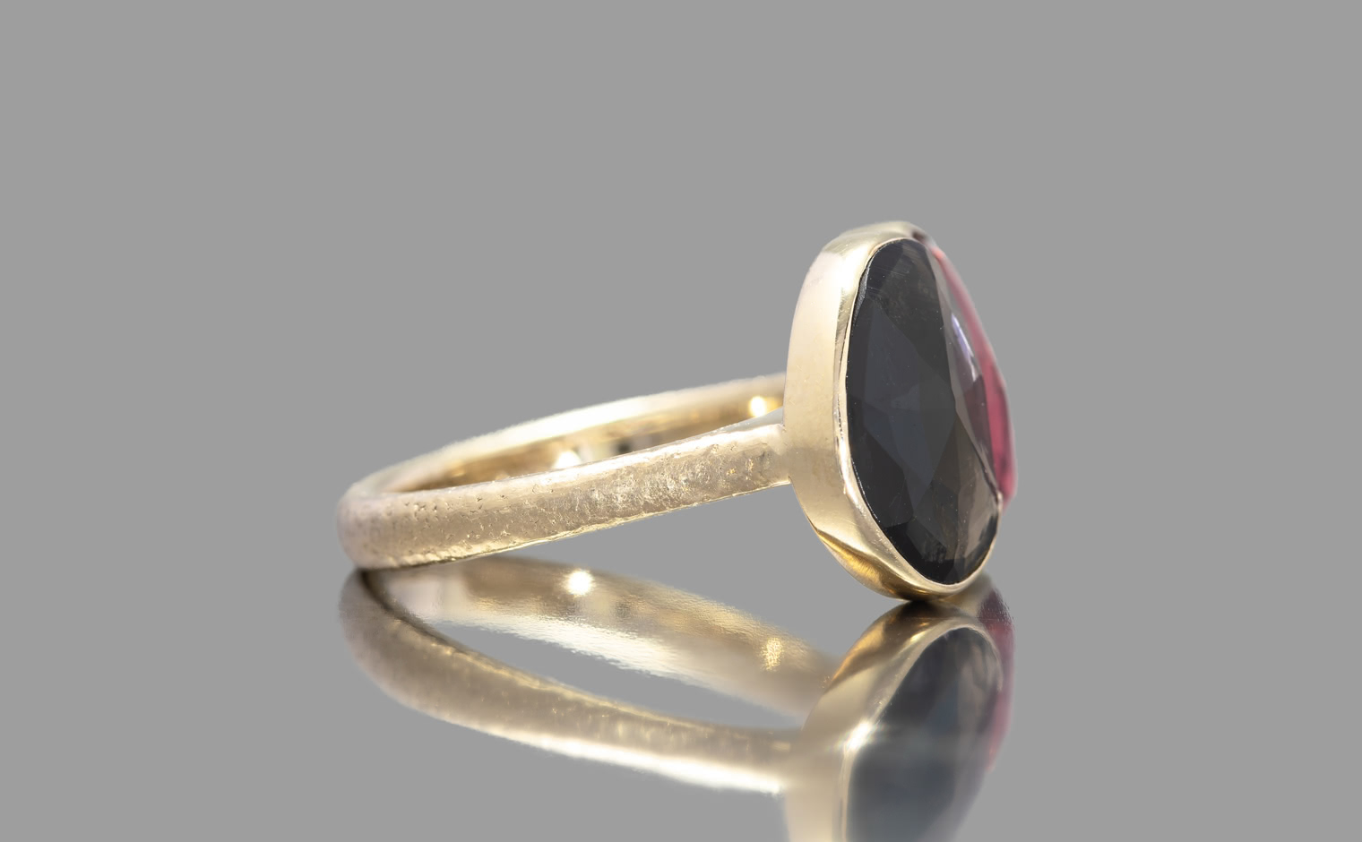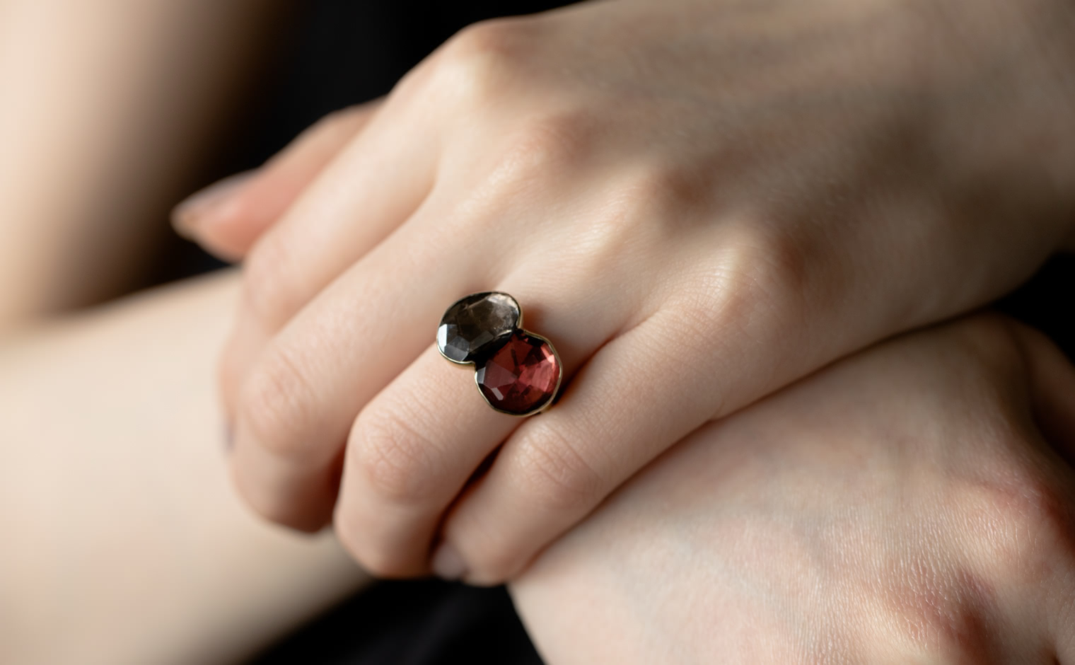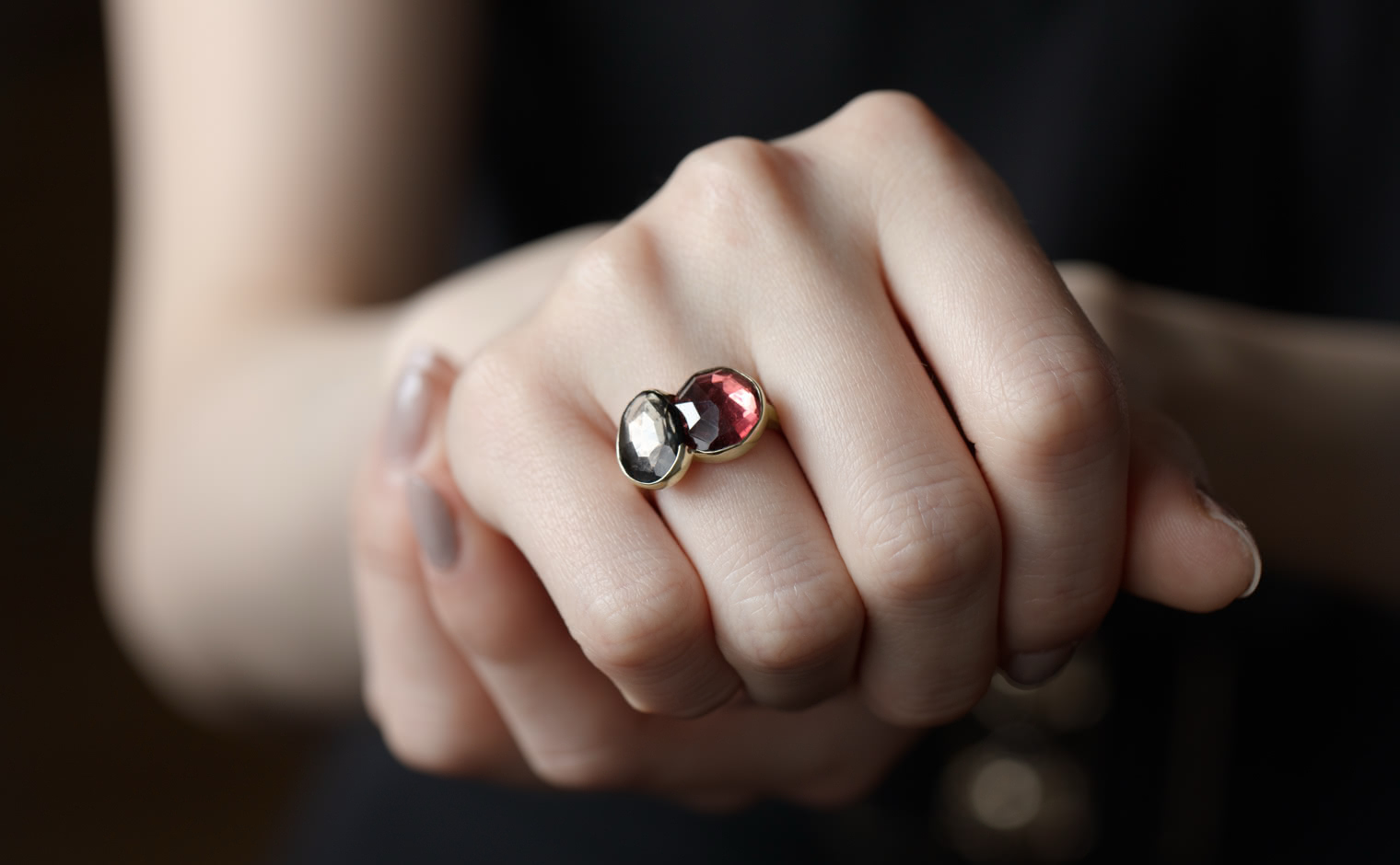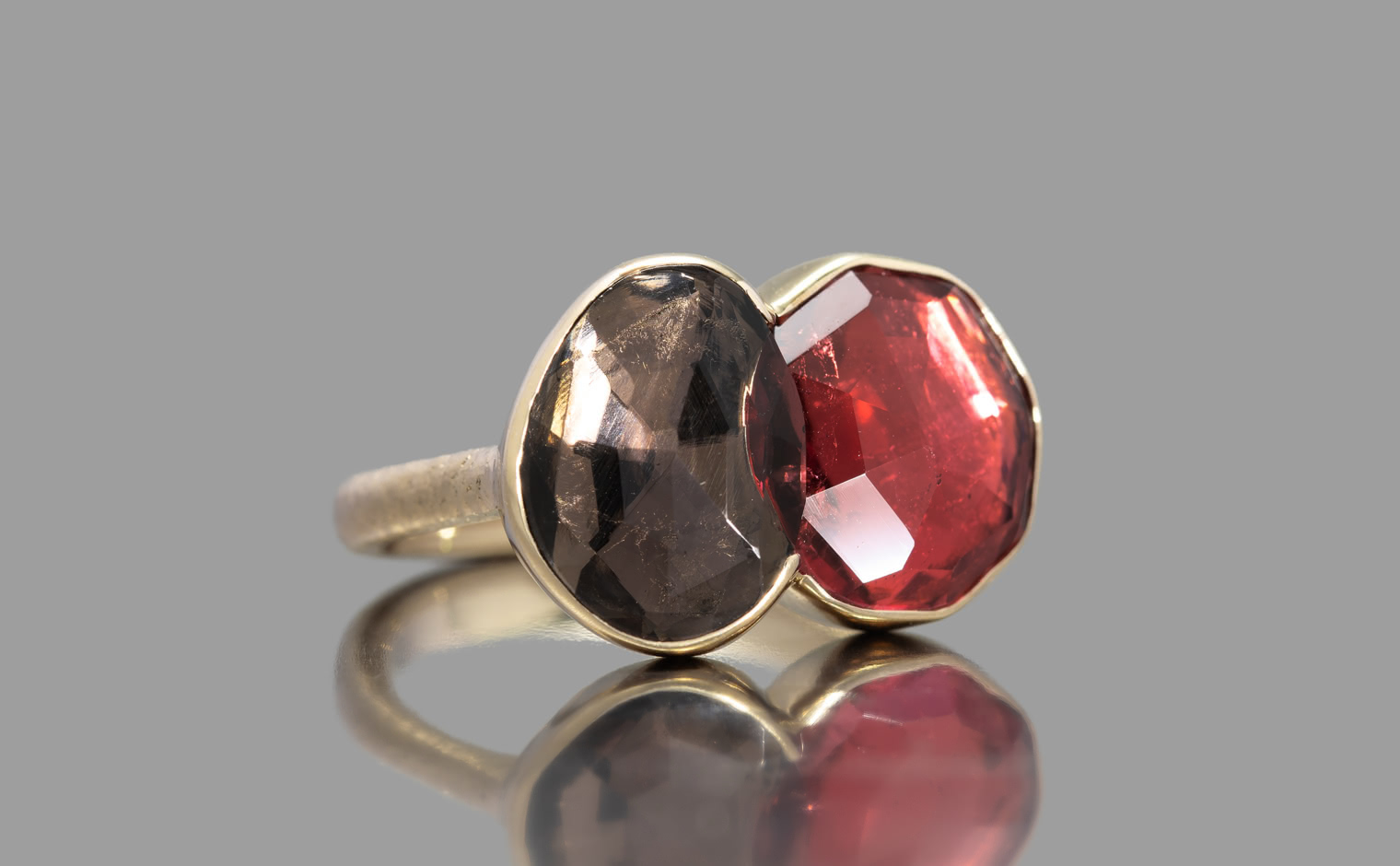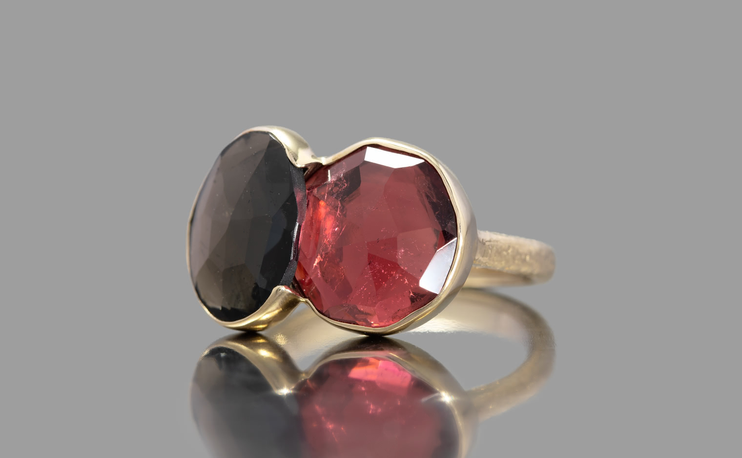 The intense colors of this ring, inspired by Red Admiral butterflies, is an ode to everything beautiful and delicate found in nature. The vivid ruby is a symbol of romance and passion, and the sensuous tourmaline evokes refined and graceful feminity.