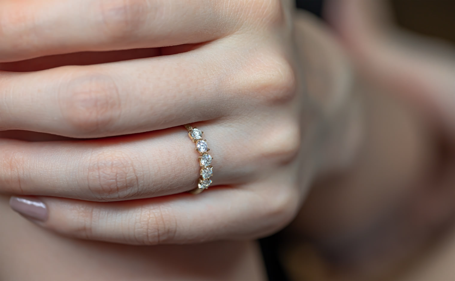 A quiet rhythm of light, where diamonds trace a celestial path. The Cosmic Line Ring–Supreme embodies refined artistry, an ode to brilliance—radiant, delicate, and infinite.
