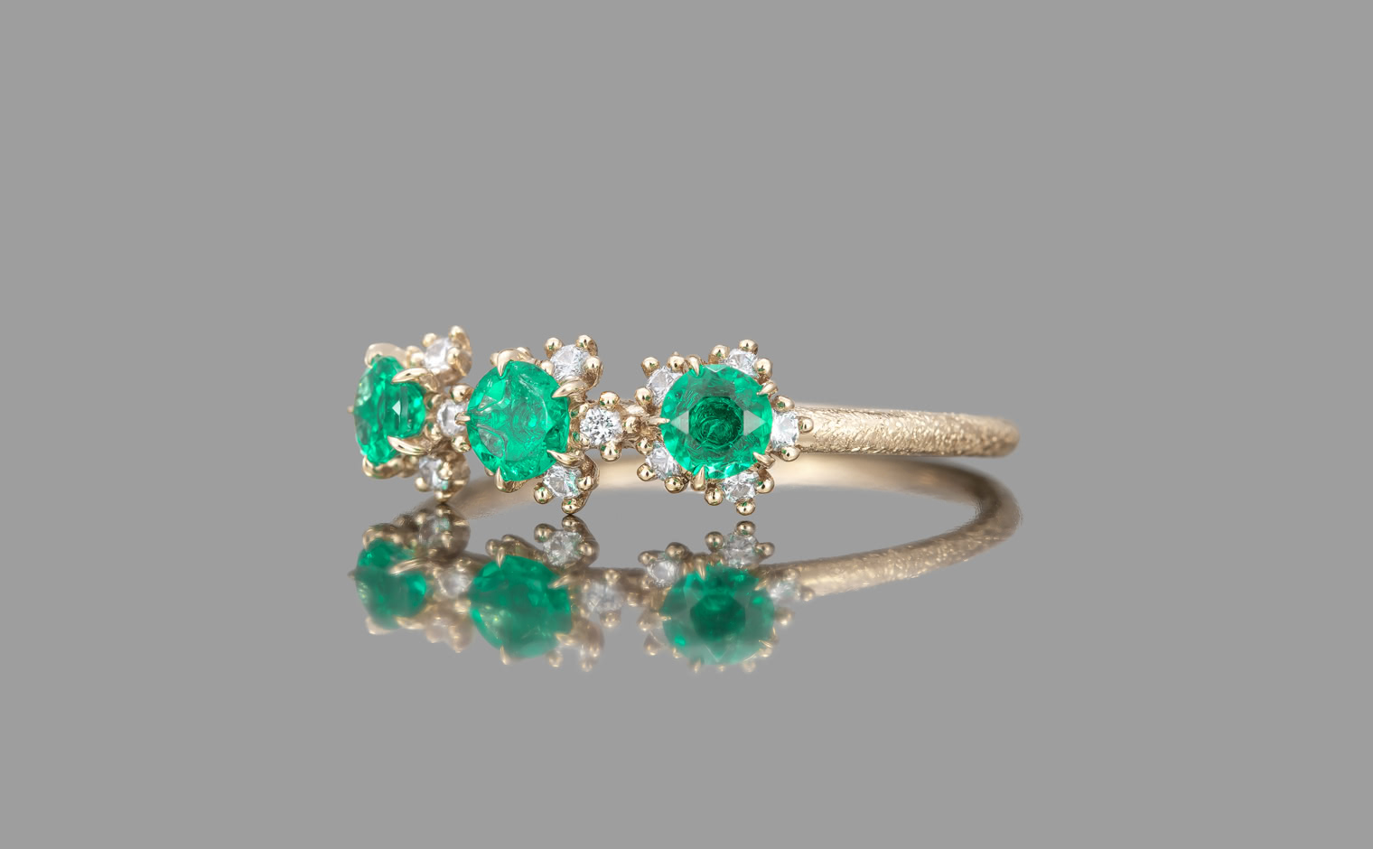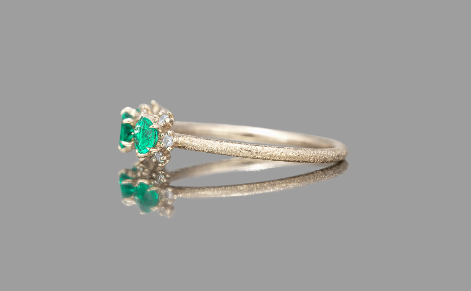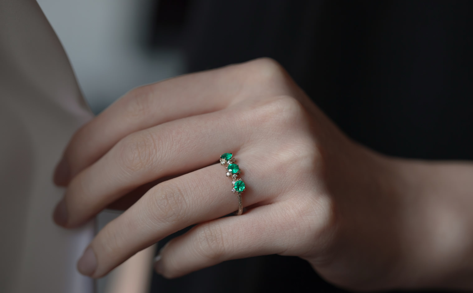 Emeralds, their gentle radiance unfolding in quiet harmony. The Cosmos Ring–Emerald reflects natural beauty, a timeless expression of grace and refined elegance.