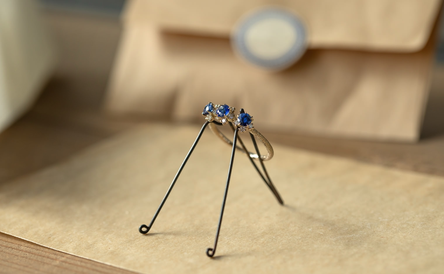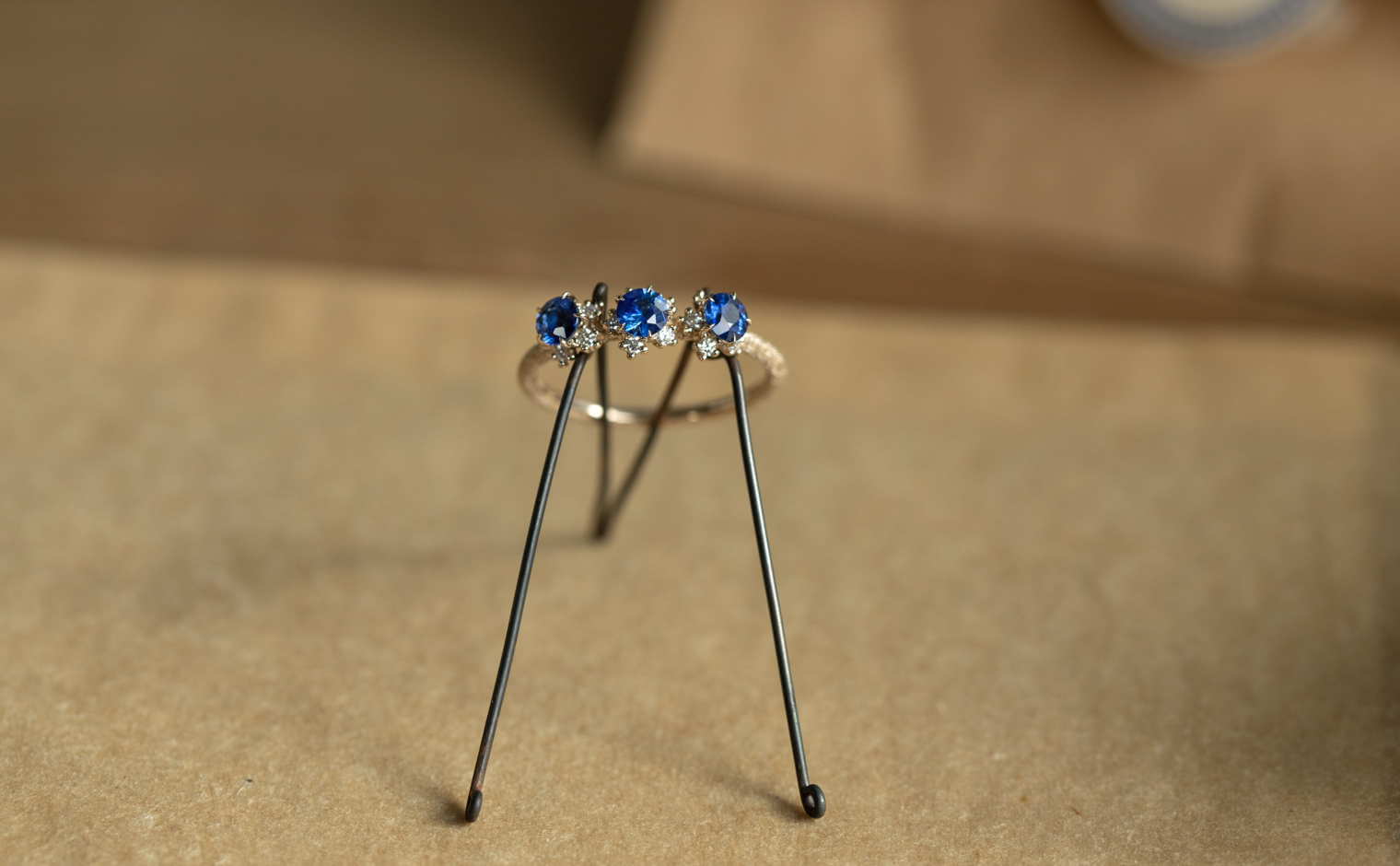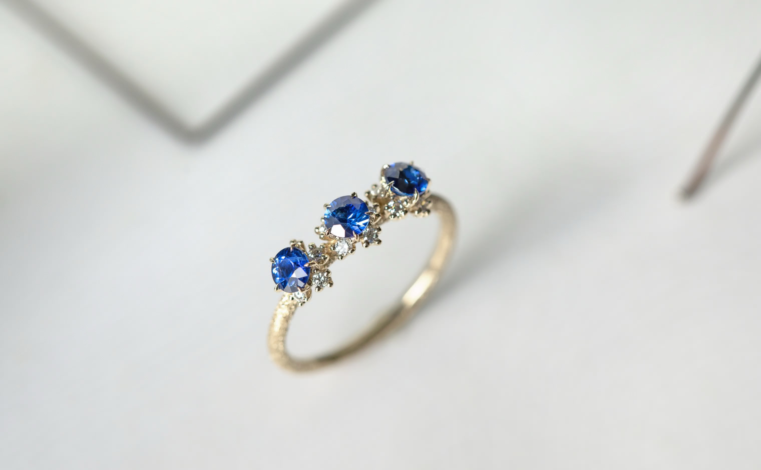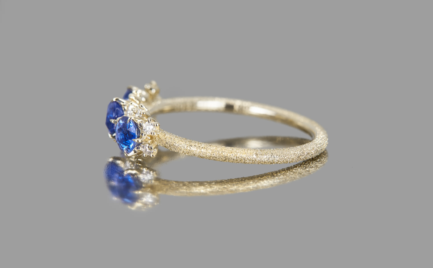 Sapphires in quiet brilliance, their light unfolding with gentle grace. The Cosmos Ring–Sapphire reflects timeless beauty, a refined expression of elegance and subtle artistry.