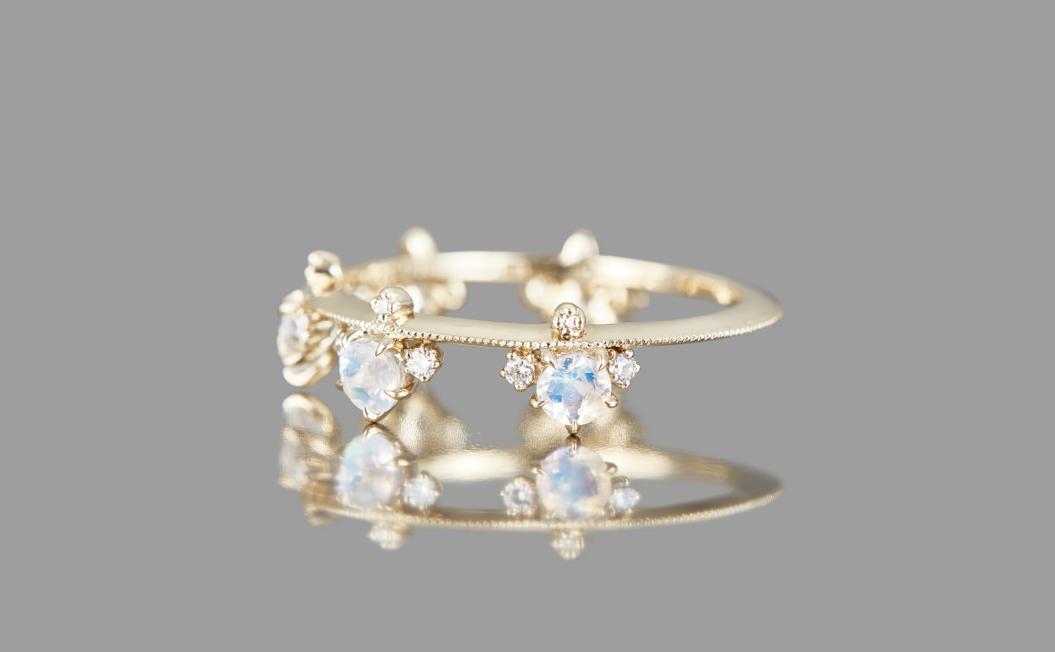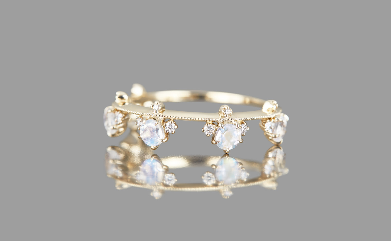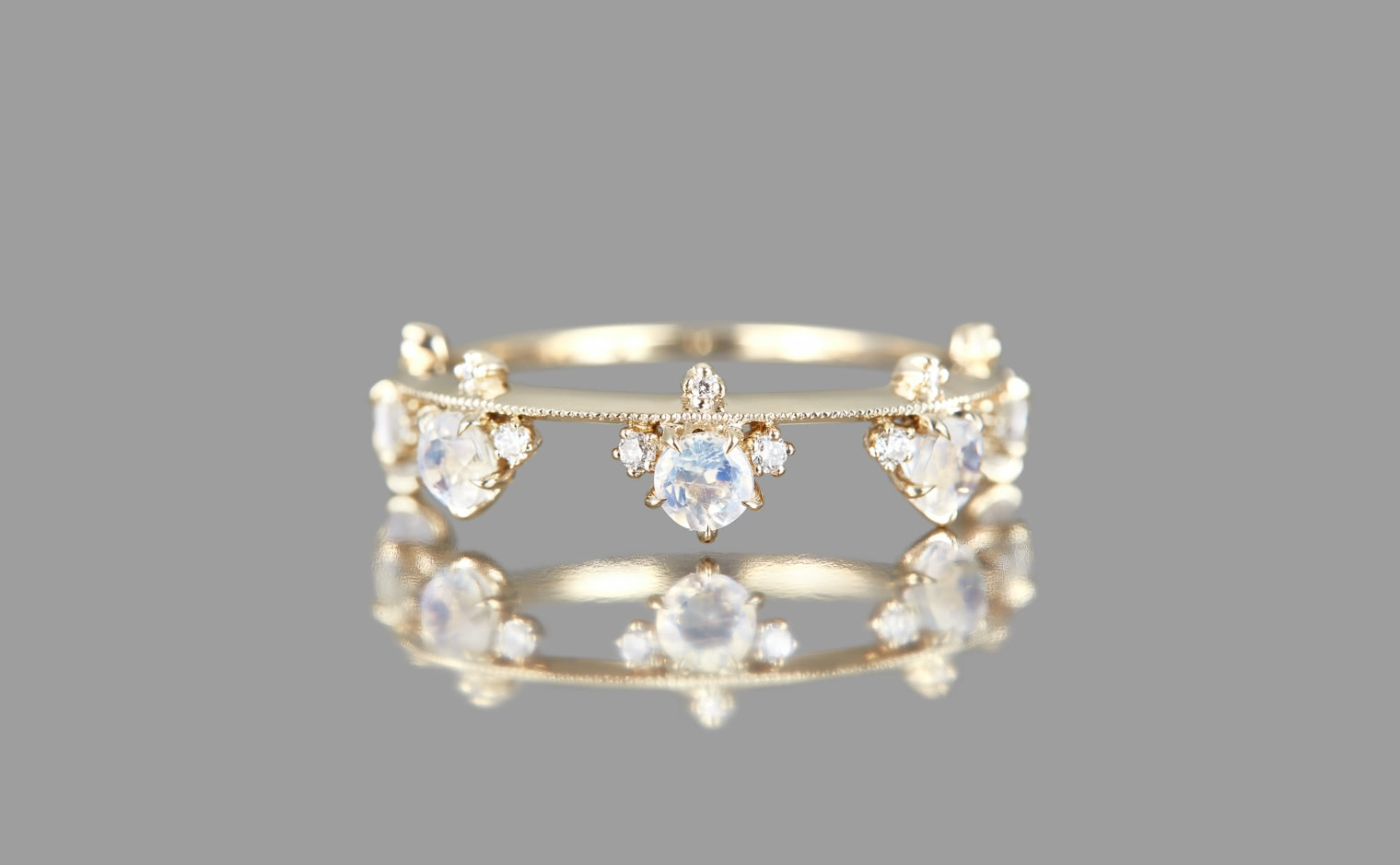 A new twist on a classic kataoka favorite, this Crown ring debuts delicious faceted rainbow Moonstones in lieu of traditional round diamonds.