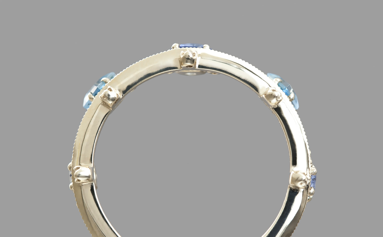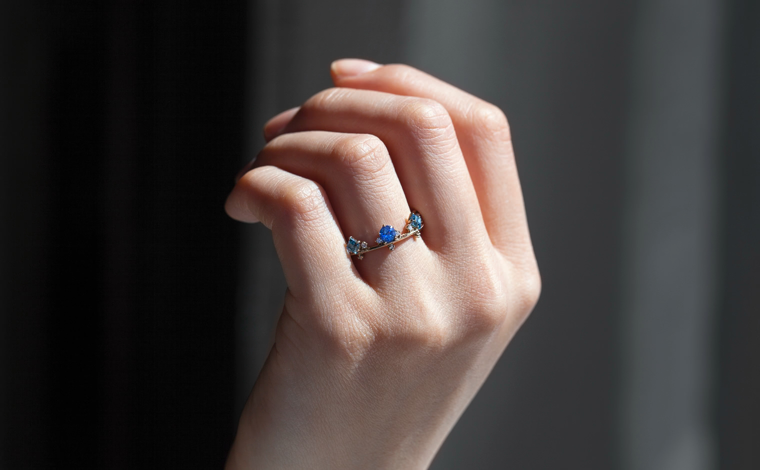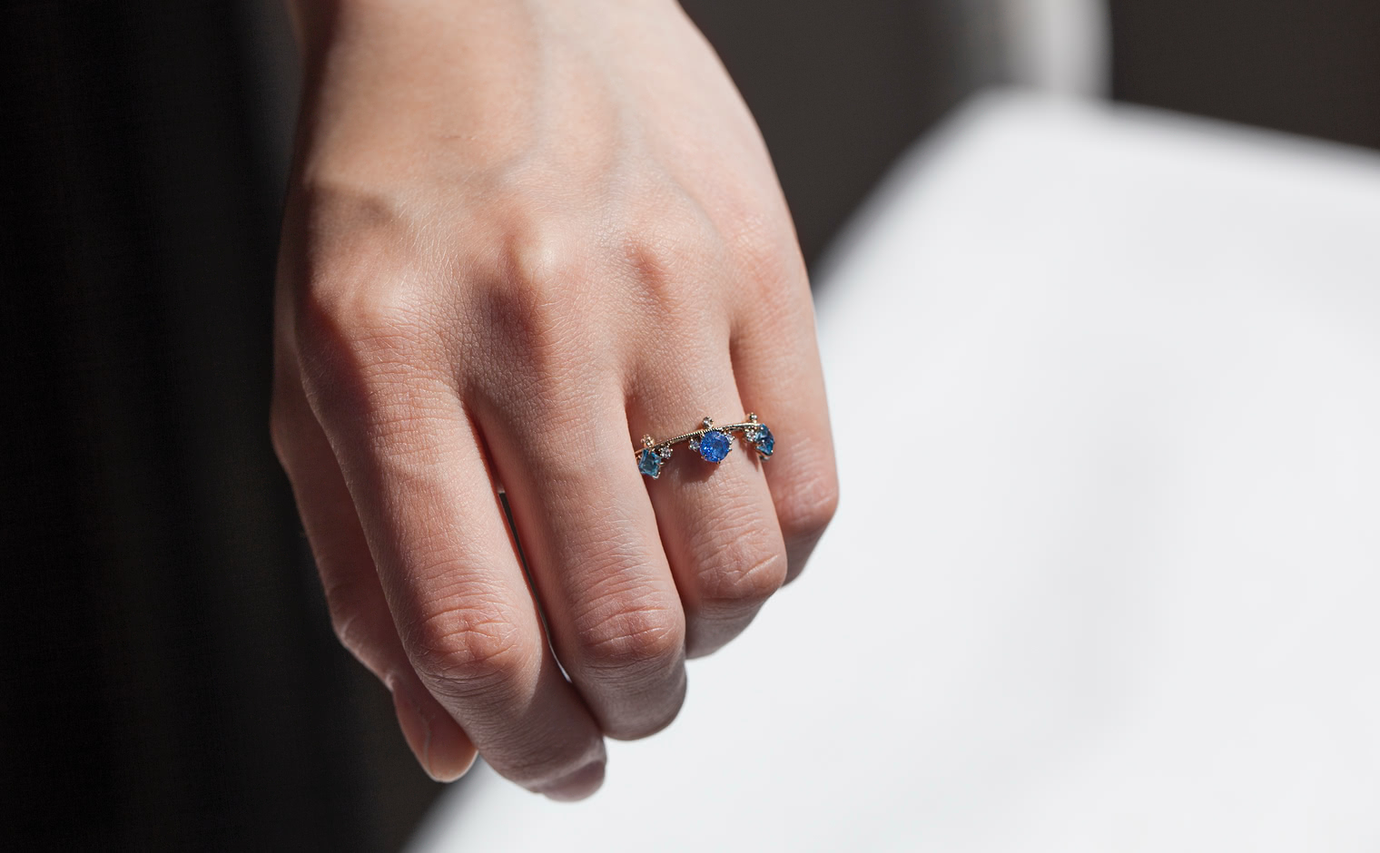 A kataoka staple, this ring combines the playful hues of sapphires and aquamarines to balance on a thin band of custom-blended gold.