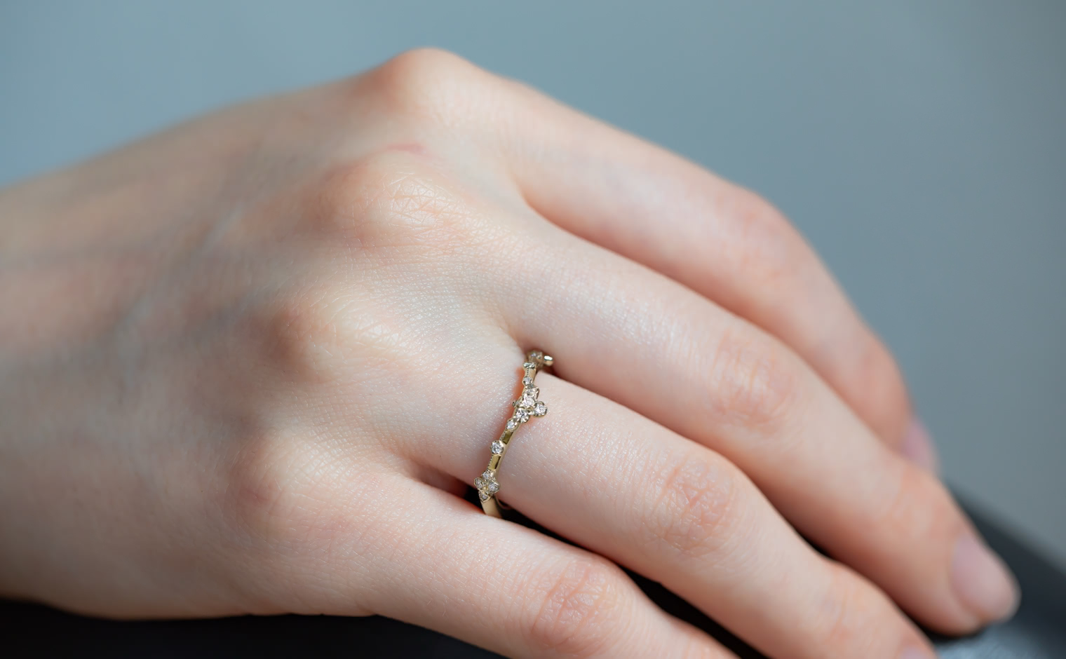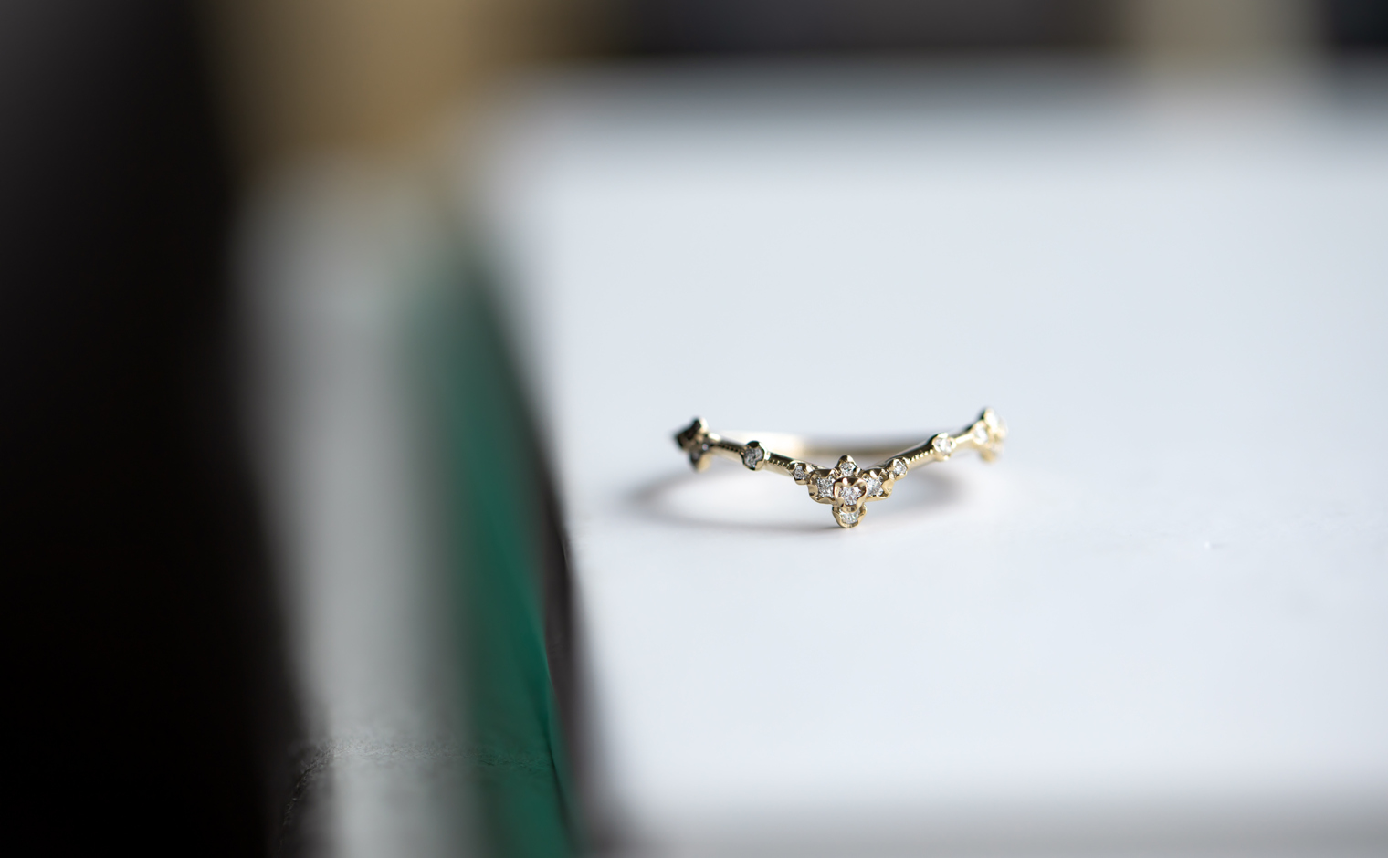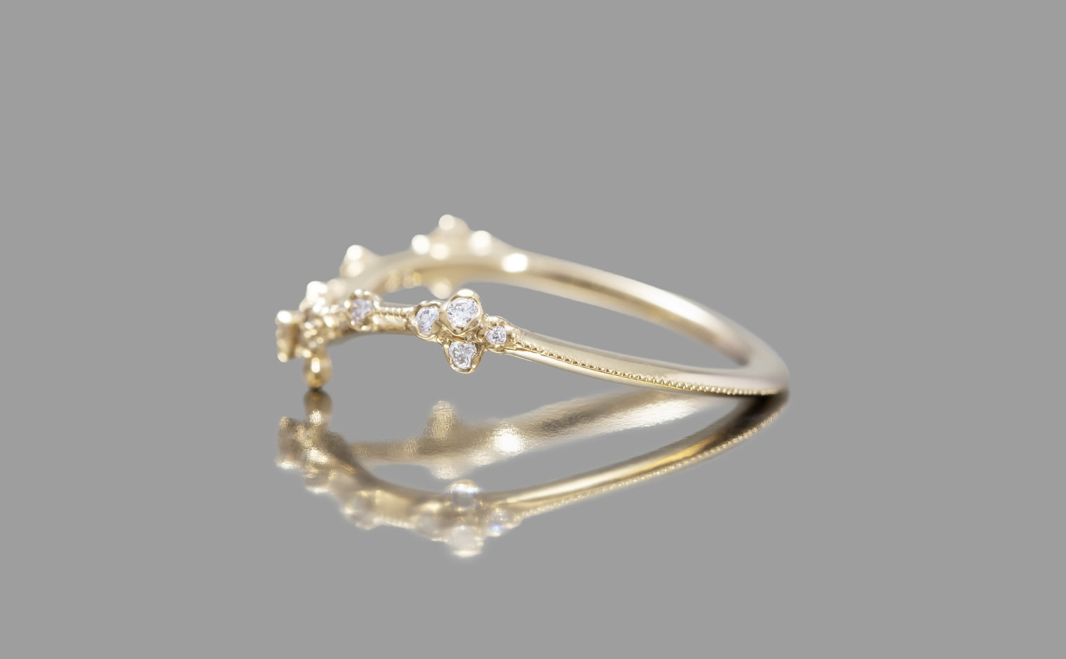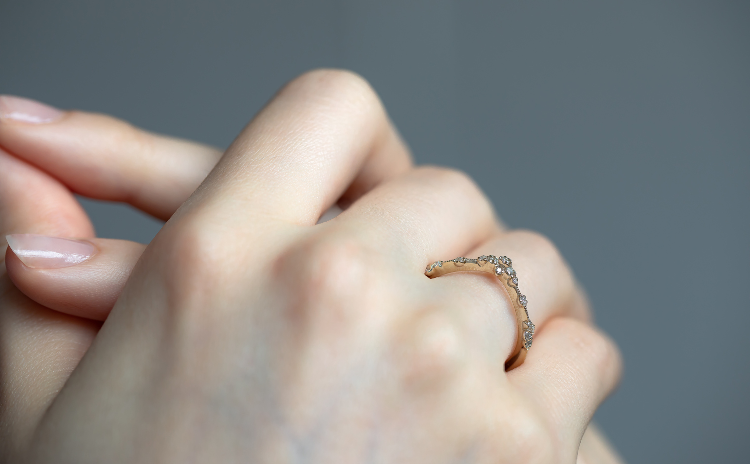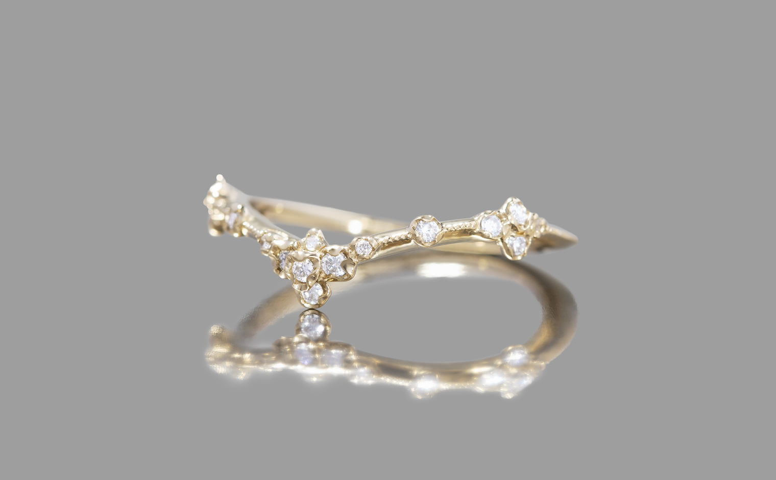 A celestial curve, where diamonds whisper with fleeting brilliance. The Curved Cluster Ring embodies subtle sophistication, an enduring expression of artistry and infinite grace.