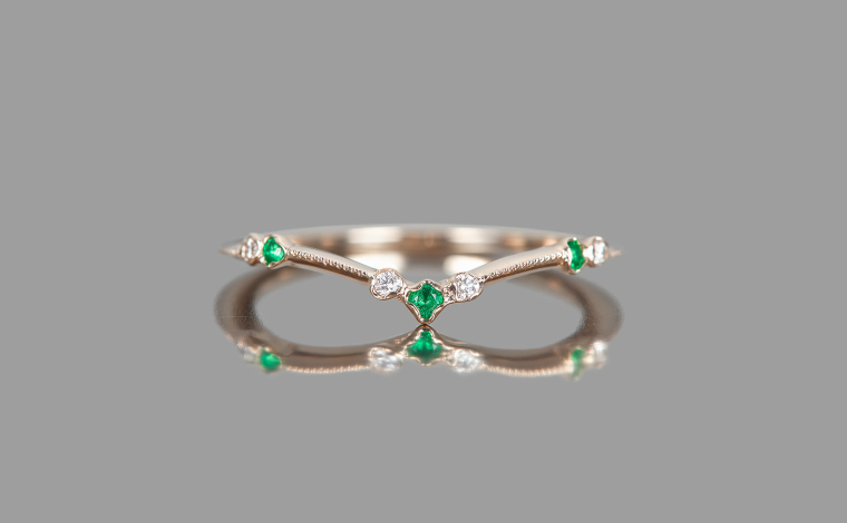 Emeralds and diamonds in quiet glow, their radiance flowing with natural elegance. The Curved Emerald Ring reflects delicate artistry, a lasting expression of sophistication—graceful, radiant, and enduring.