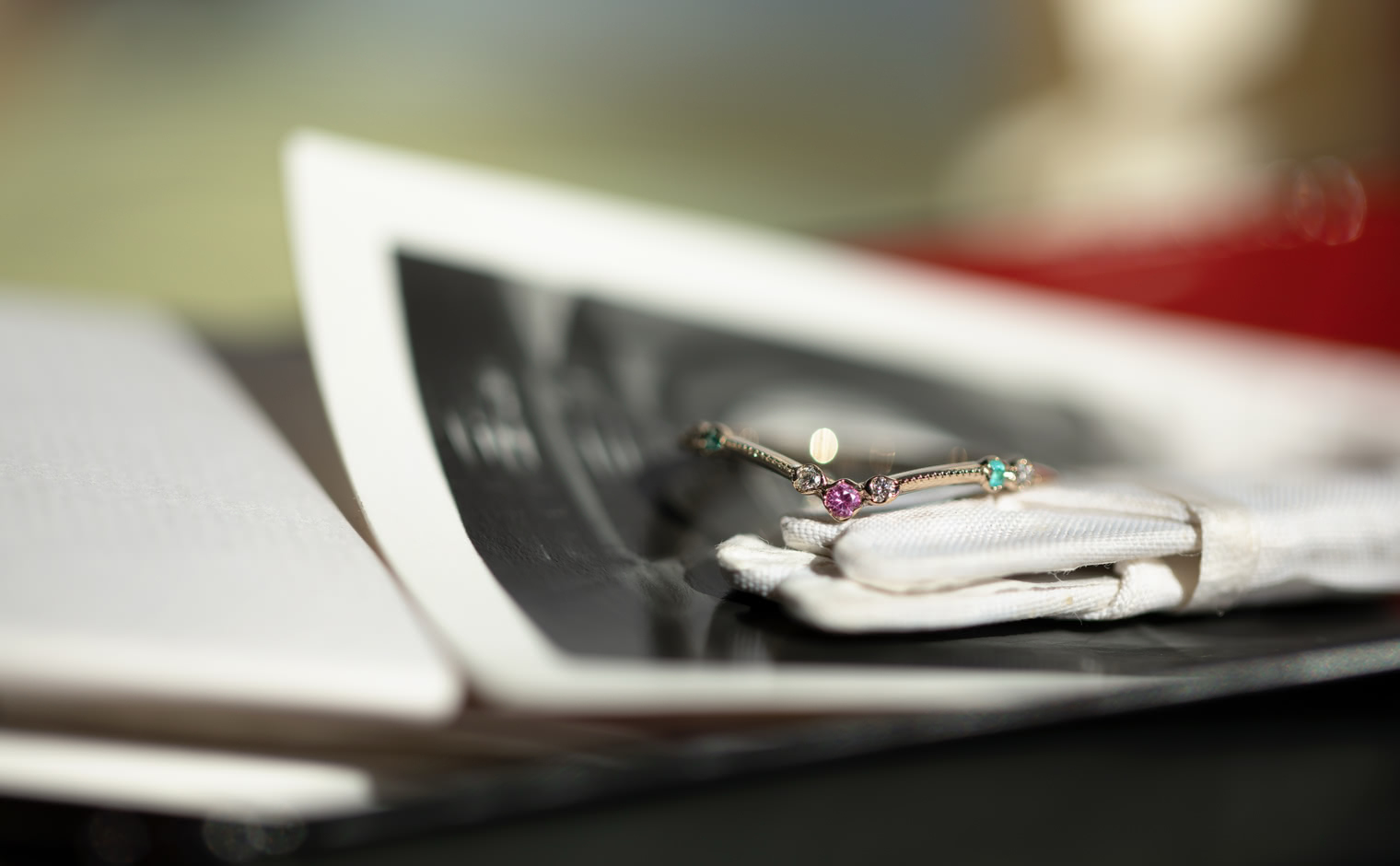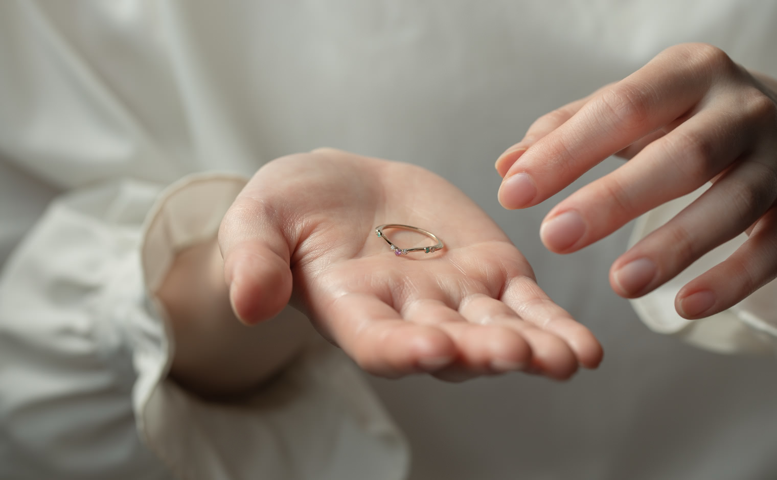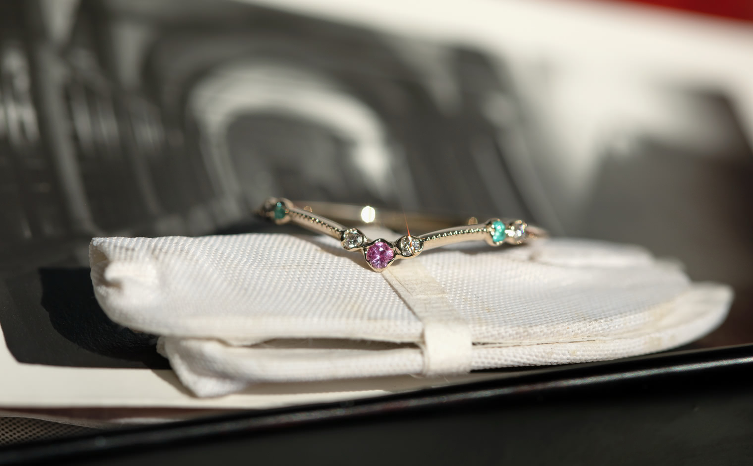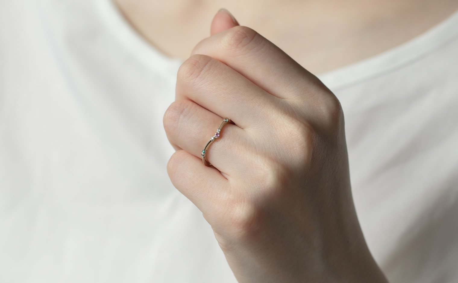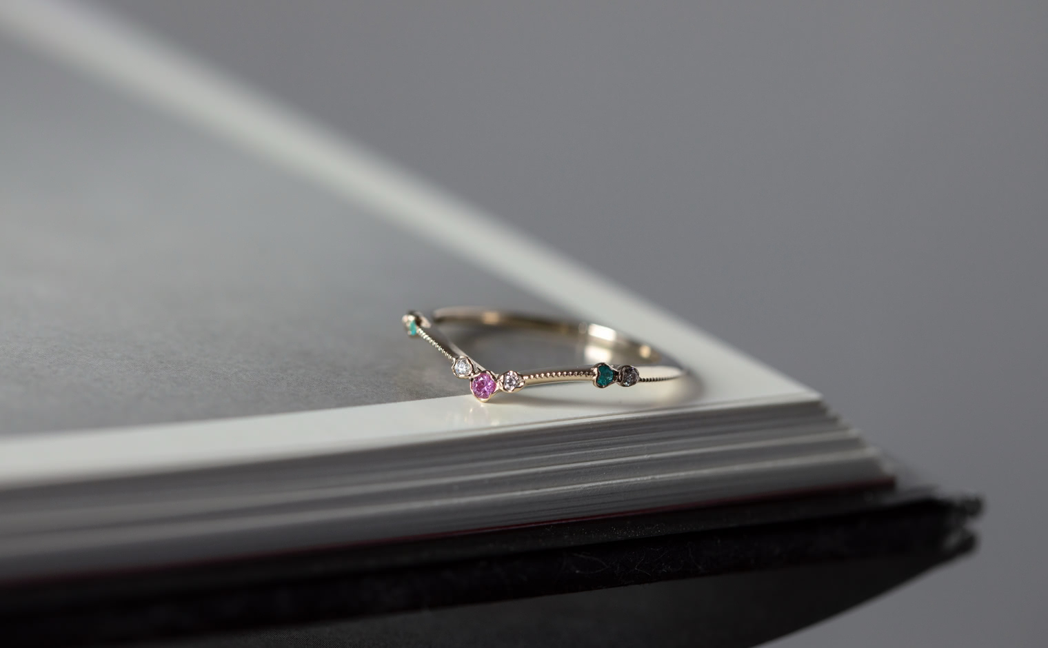 A delicate harmony of light and hue, where sapphire and Paraiba tourmalines unveil their luminous glow. The Curved Sapphire & Paraiba Ring reflects subtle sophistication, a whispered expression of grace and enduring charm.