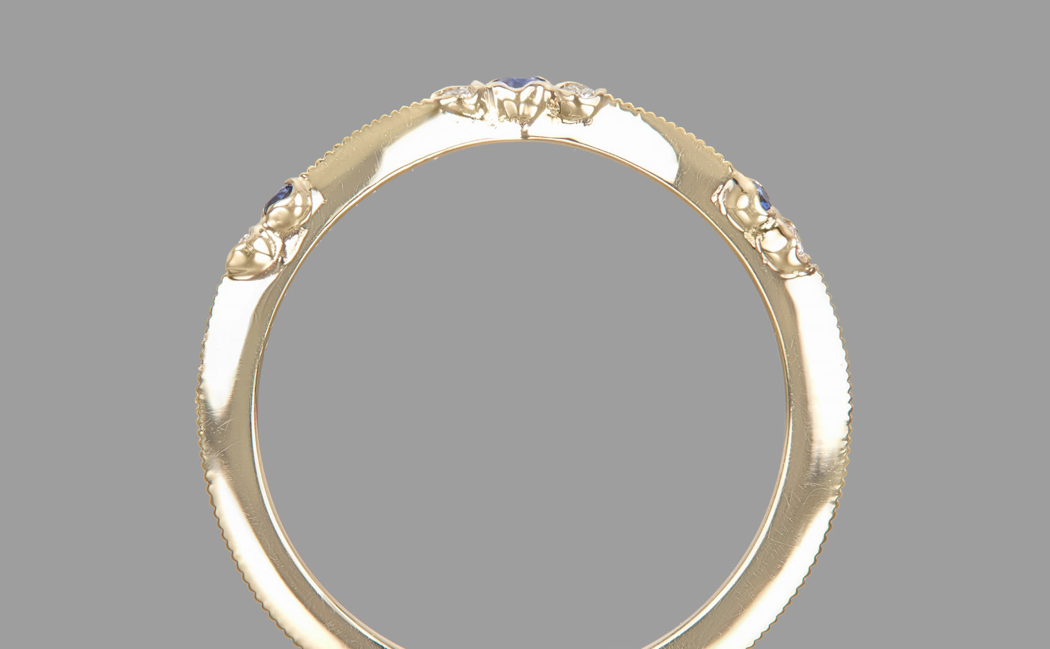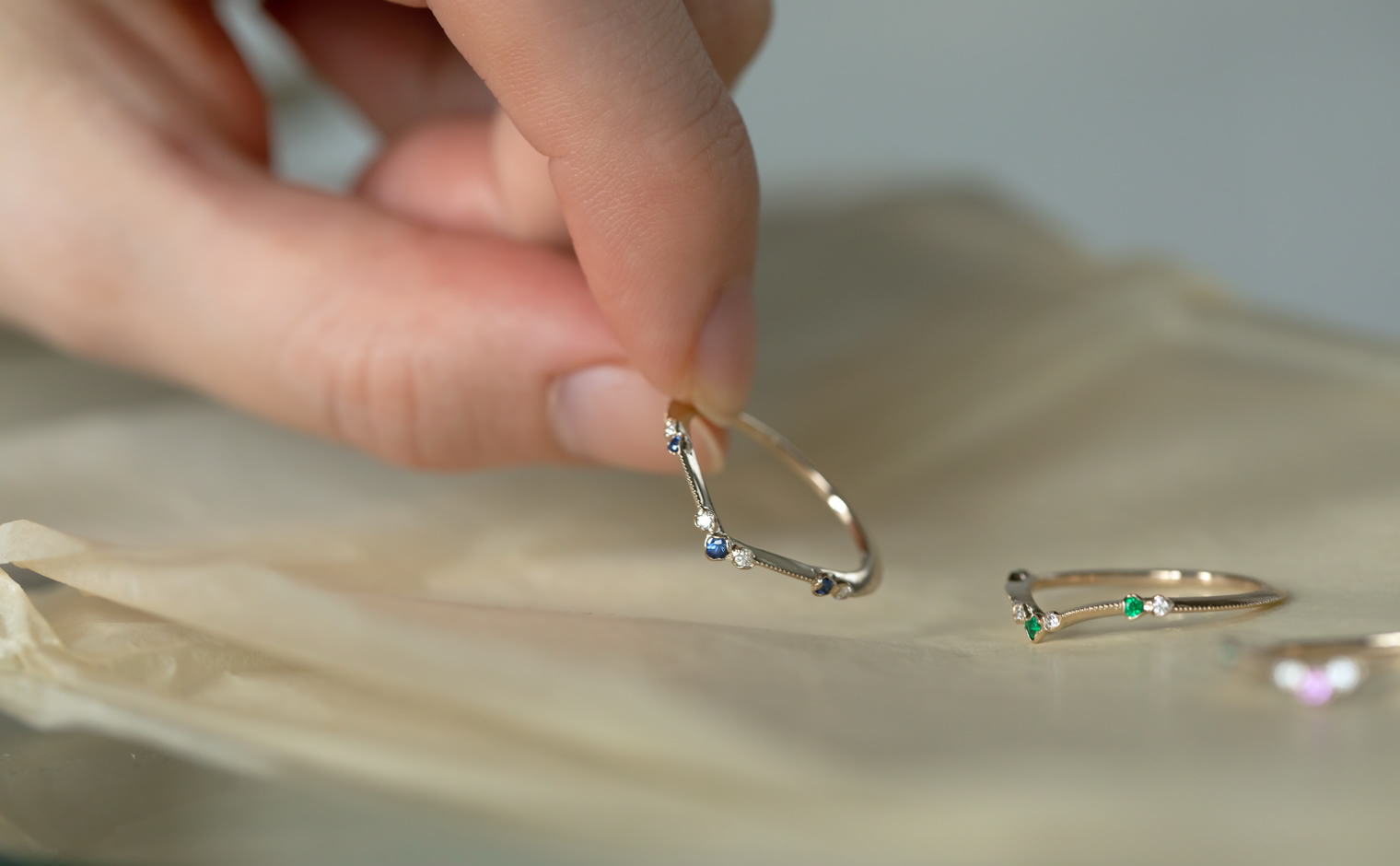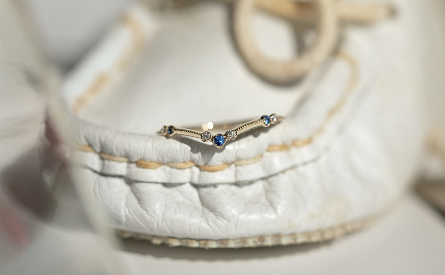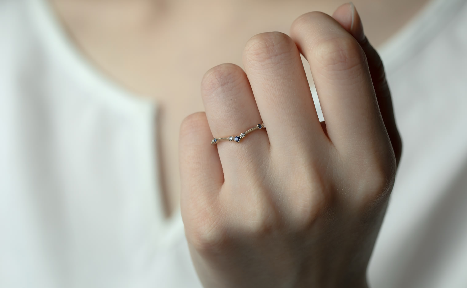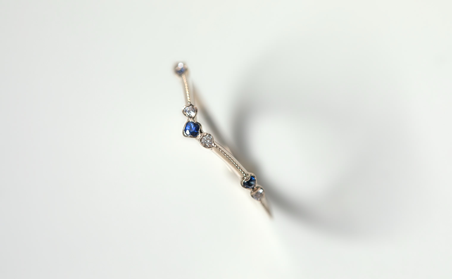 A flowing shimmer of hue, where sapphires and diamonds unveil soft radiance. The Curved Sapphire Ring reflects refined elegance, a delicate balance of tradition and modern grace.