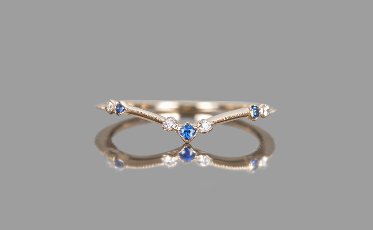 A flowing shimmer of hue, where sapphires and diamonds unveil soft radiance. The Curved Sapphire Ring reflects refined elegance, a delicate balance of tradition and modern grace.