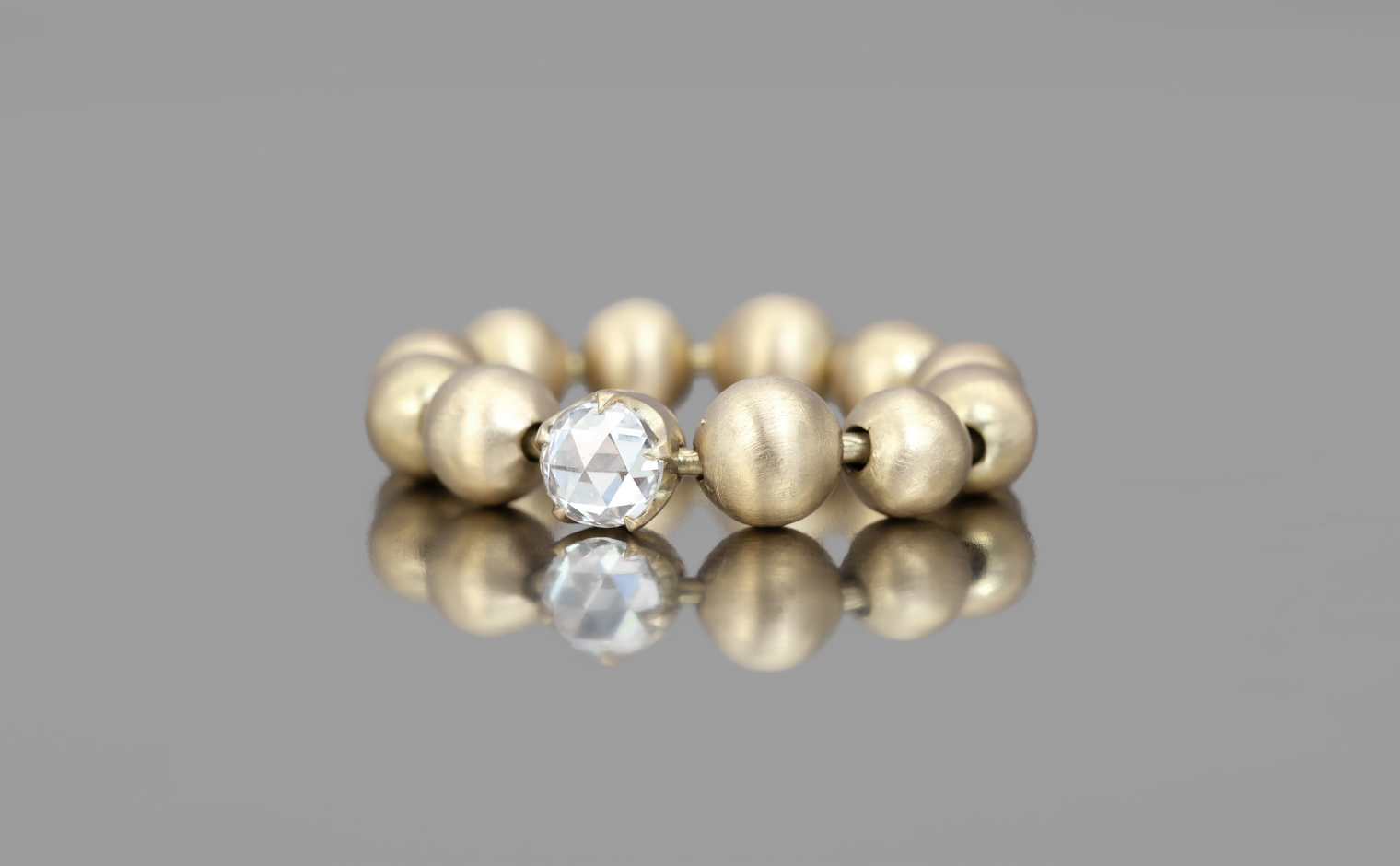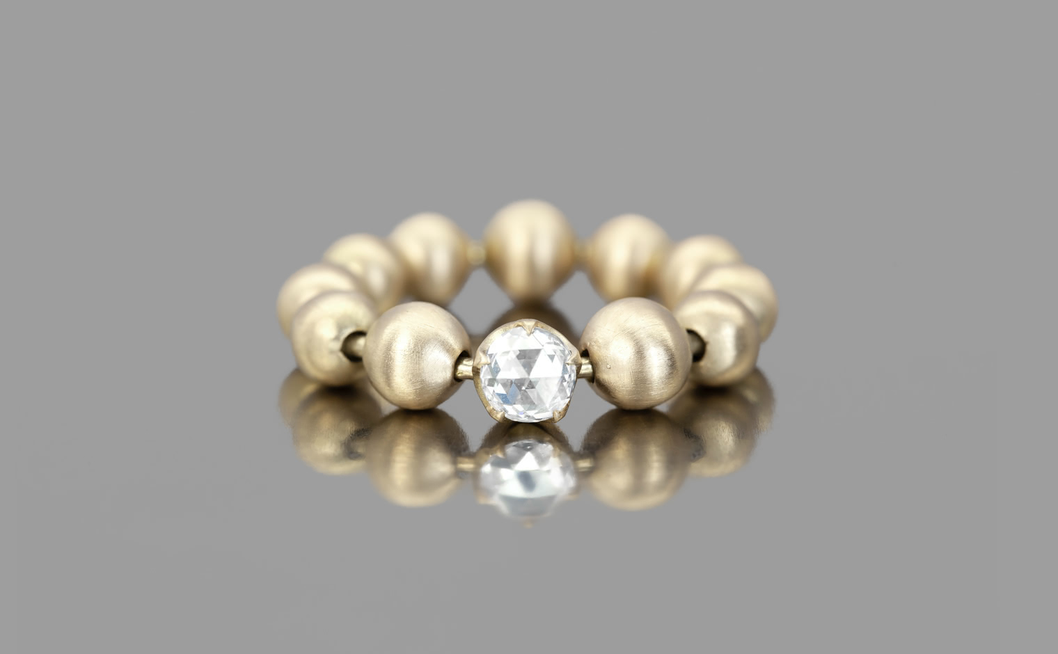 One of our boldest creations, the Diamond Roller Ring features smooth gold spheres painstakingly hand-made out of gleaming gold.