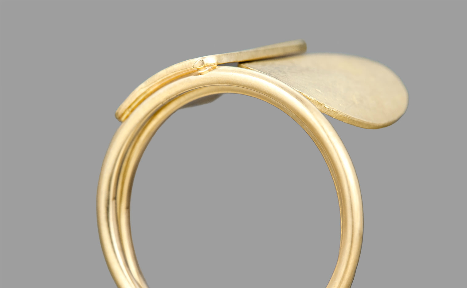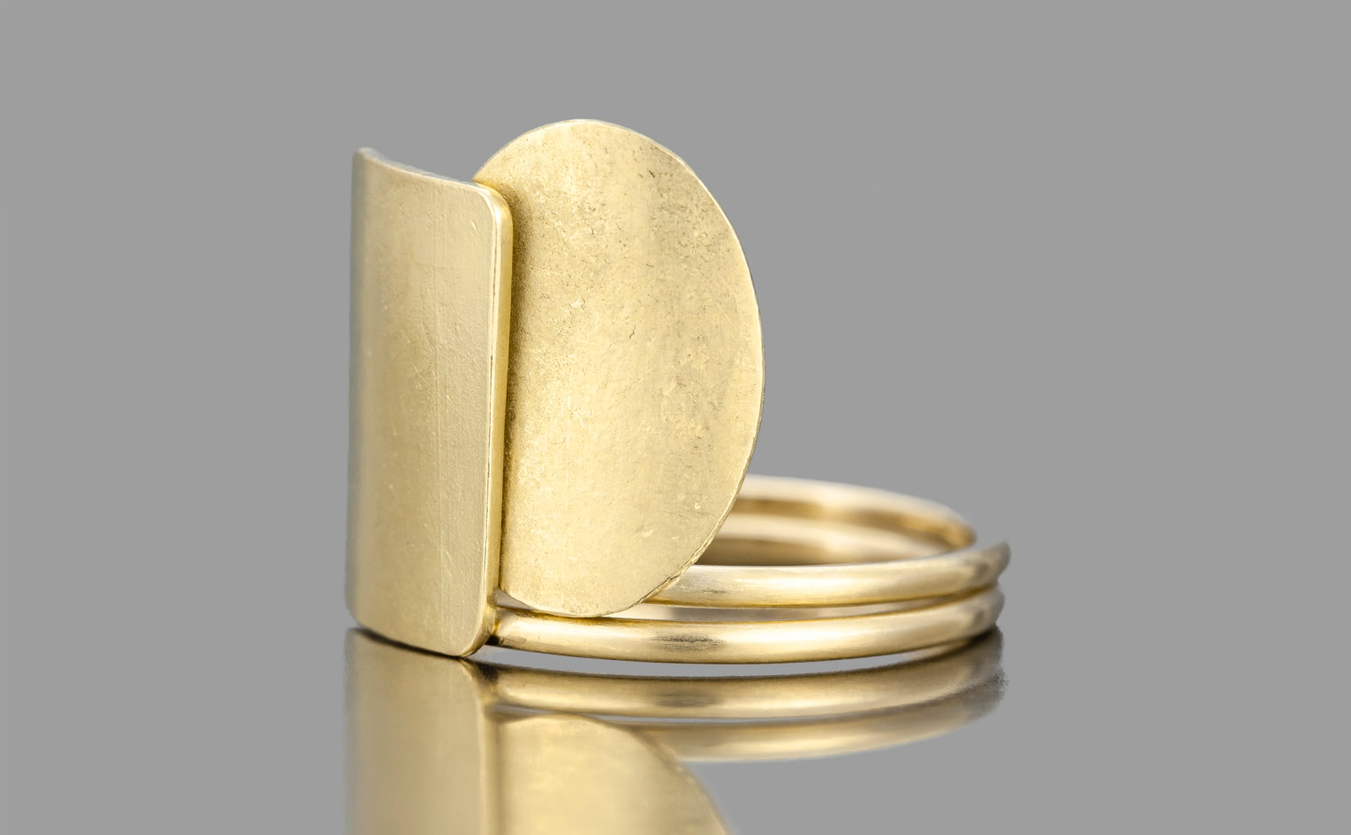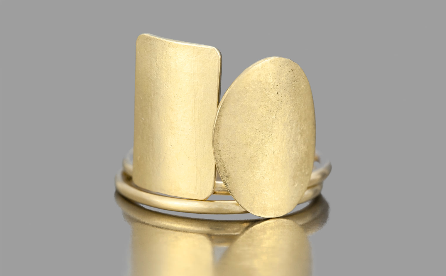 Moody, sable gold is shaped into two complimenting profiles perched atop thin bands of custom-blended metal. Worn together or one at a time, these rings were designed for a charismatic, elegant approach to your everyday look.