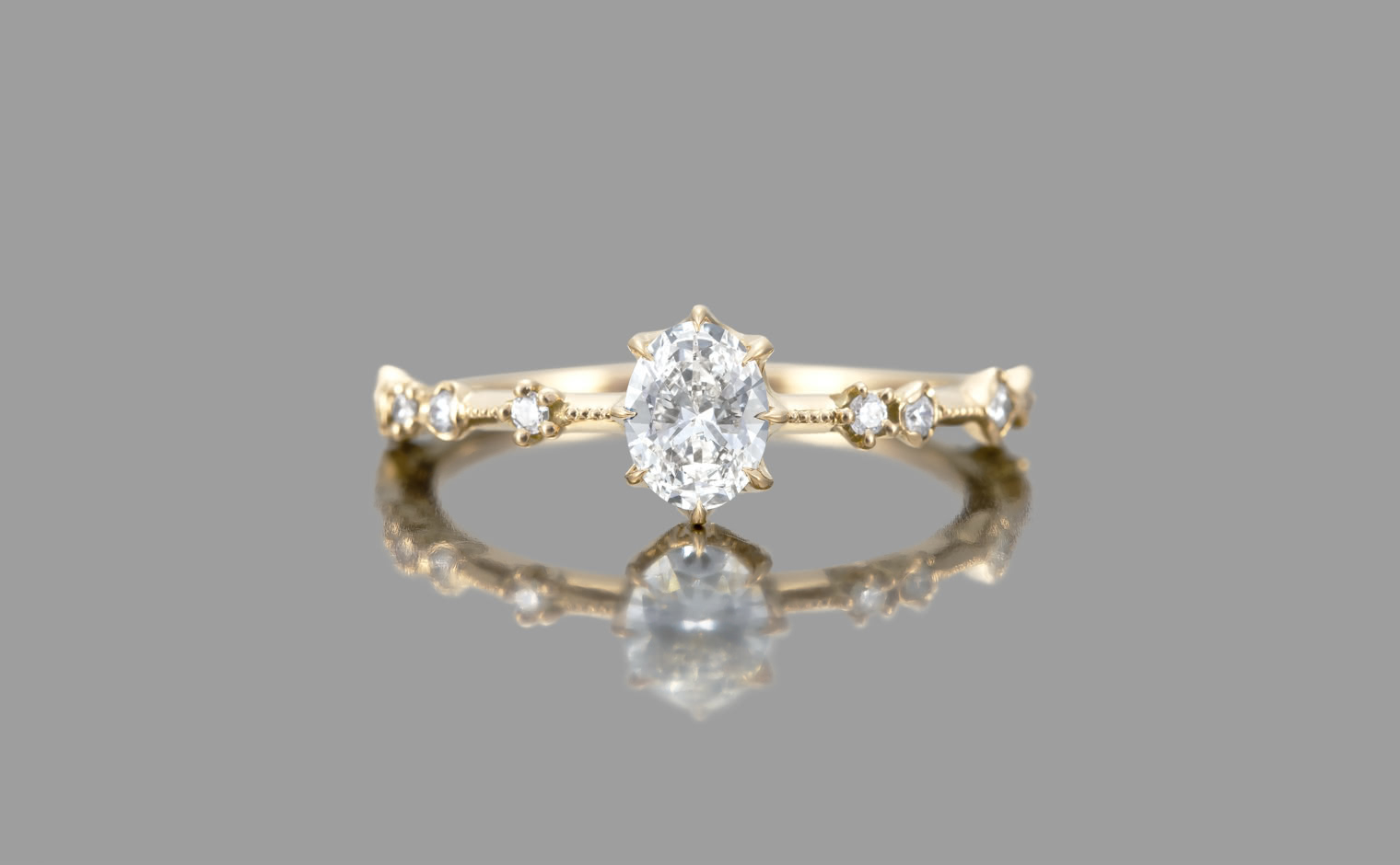 - Diamond (center) 0.40 ct. F color, clarity SI-1, Oval cut