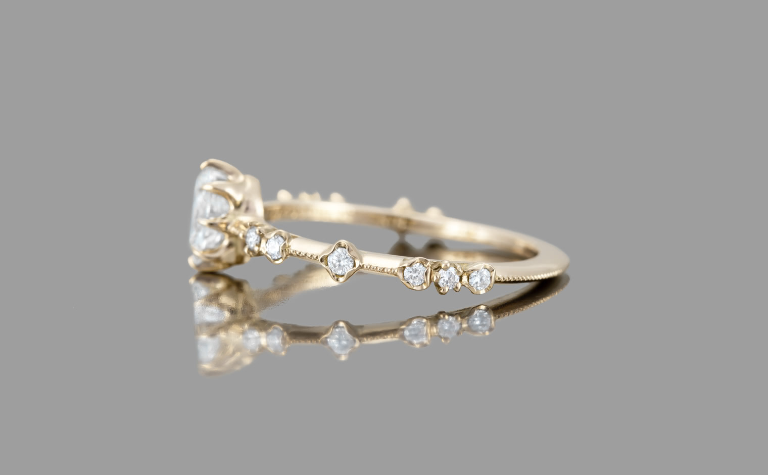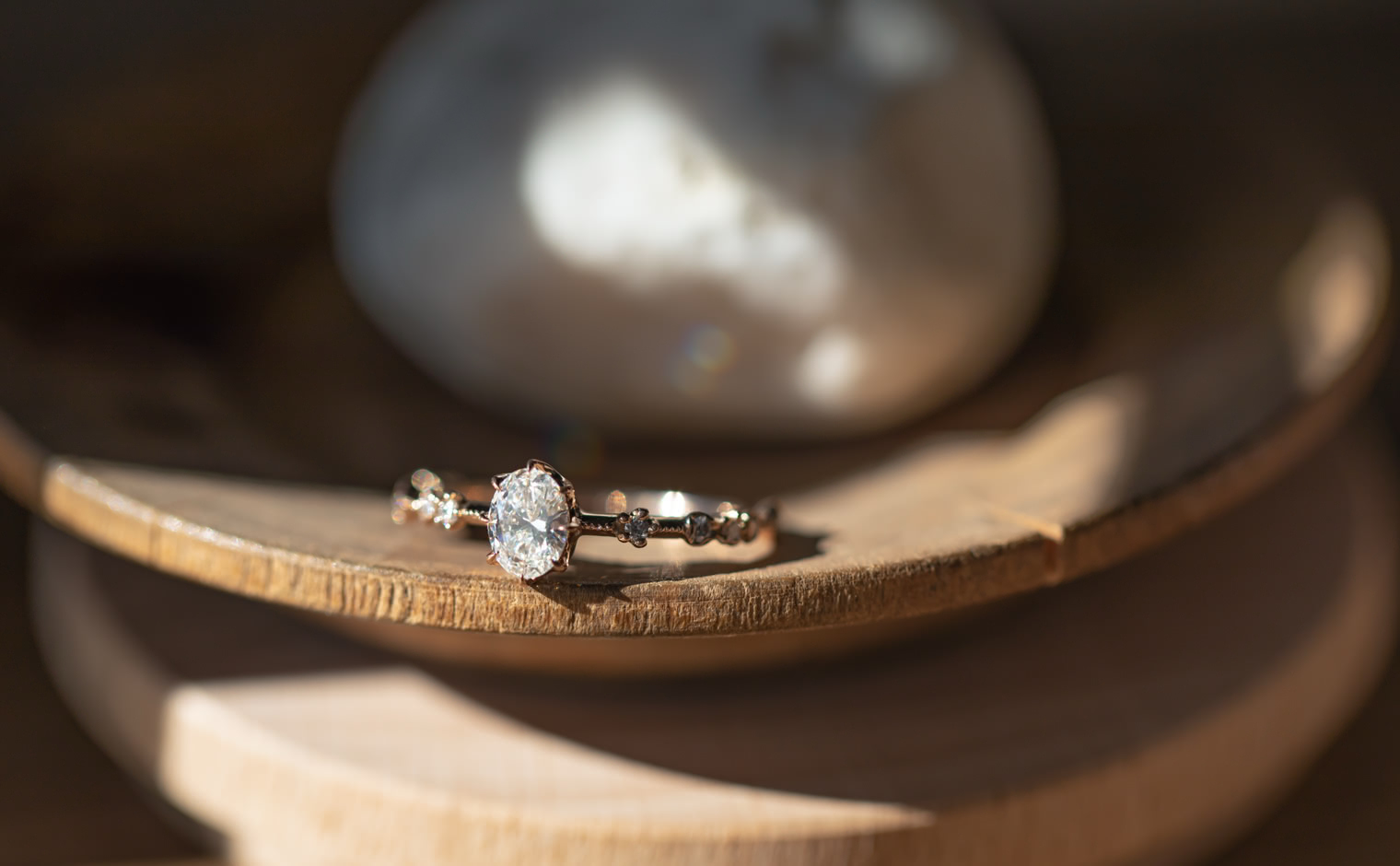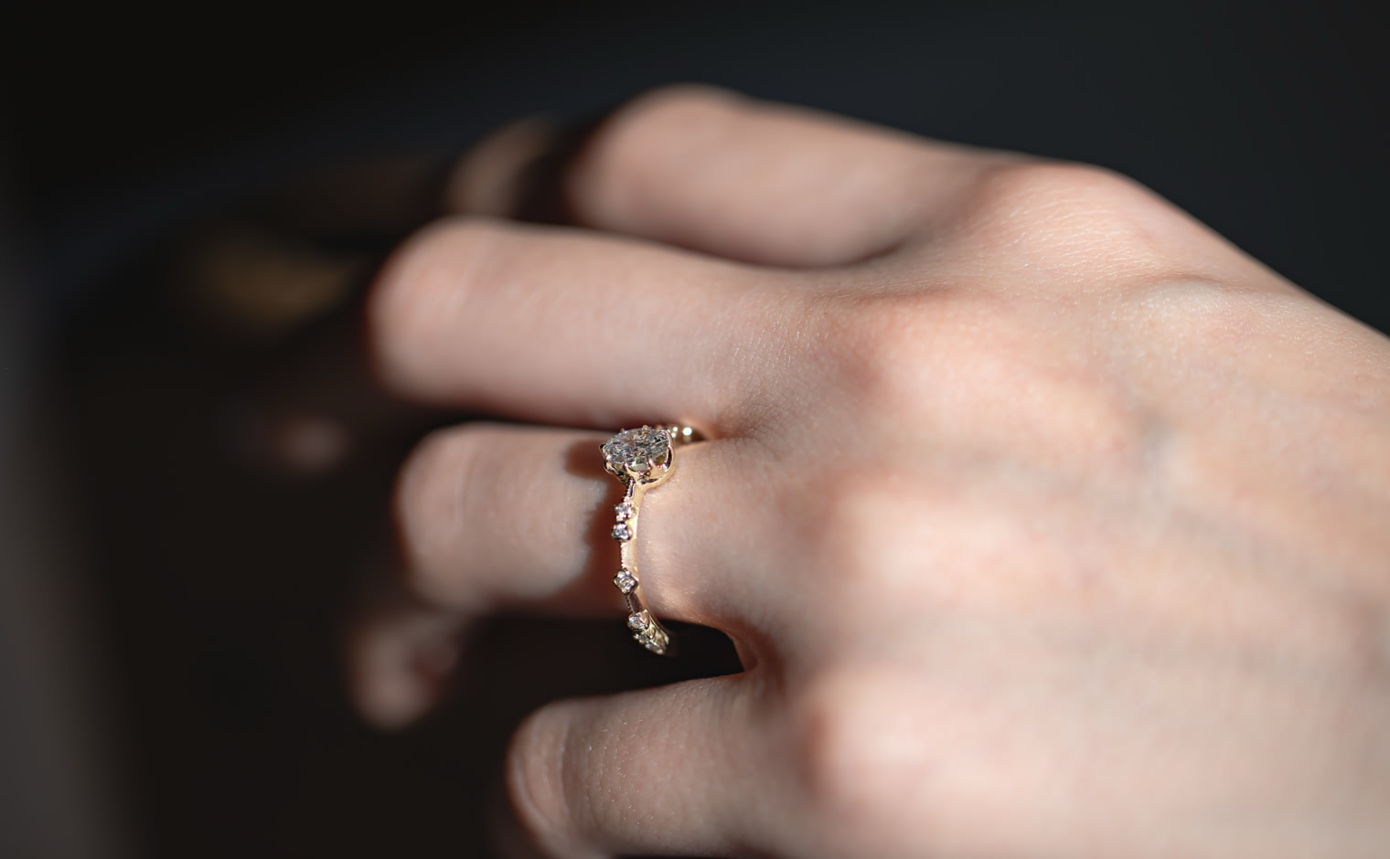 A celestial shimmer, where light lingers with serene grace. The Eclipse Ring–Diamond reflects moonlit brilliance, a lasting beauty woven through time.