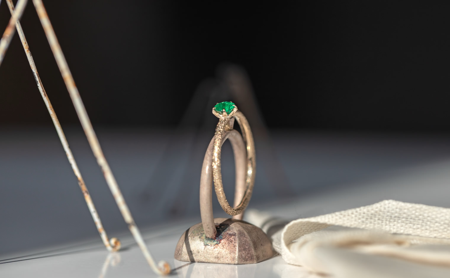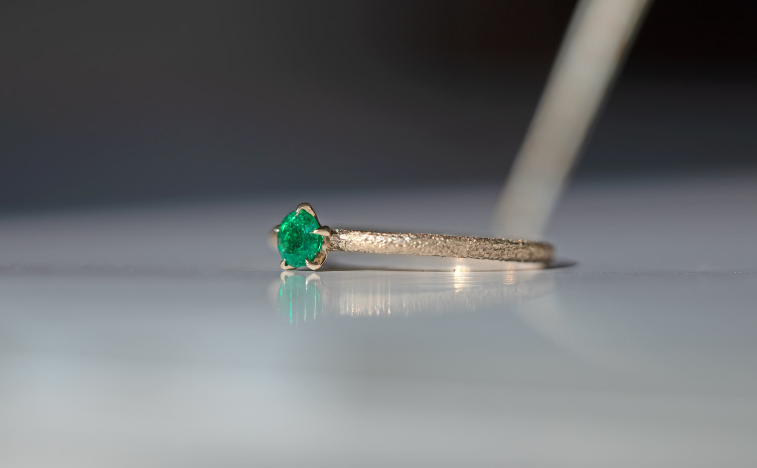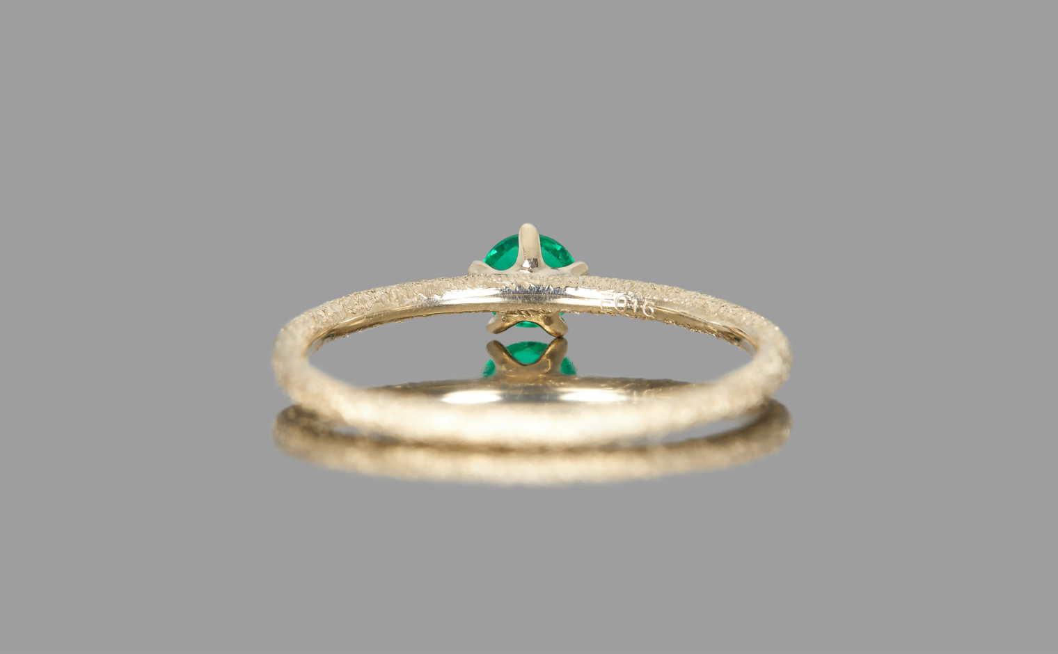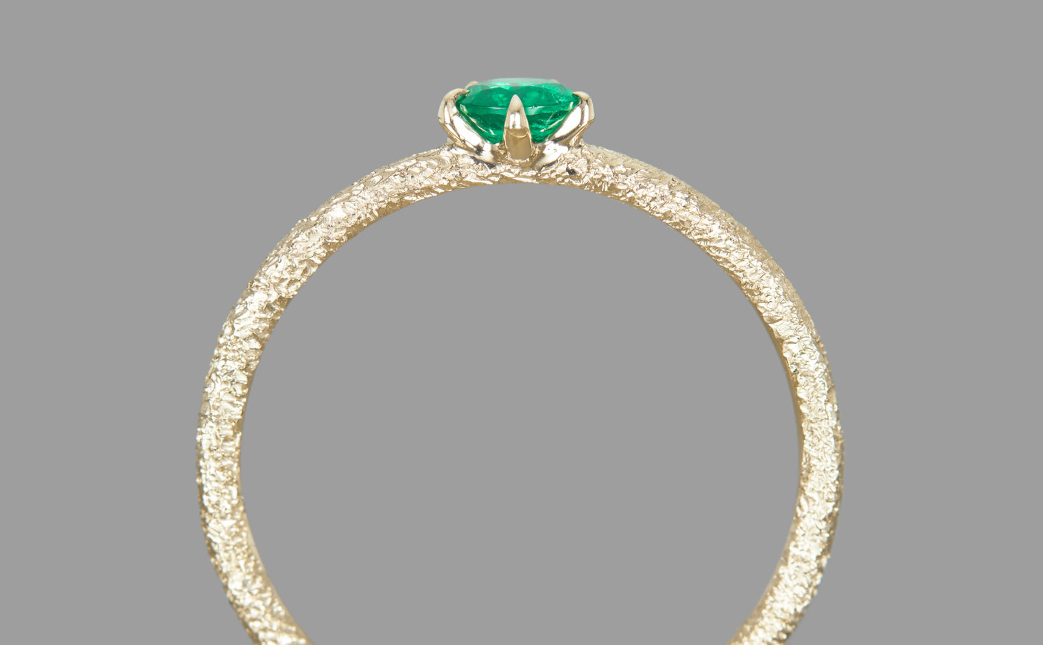 An emerald, glowing with quiet grace in delicate balance. The Emerald Stardust Ring captures soft radiance, a lasting expression of timeless elegance.