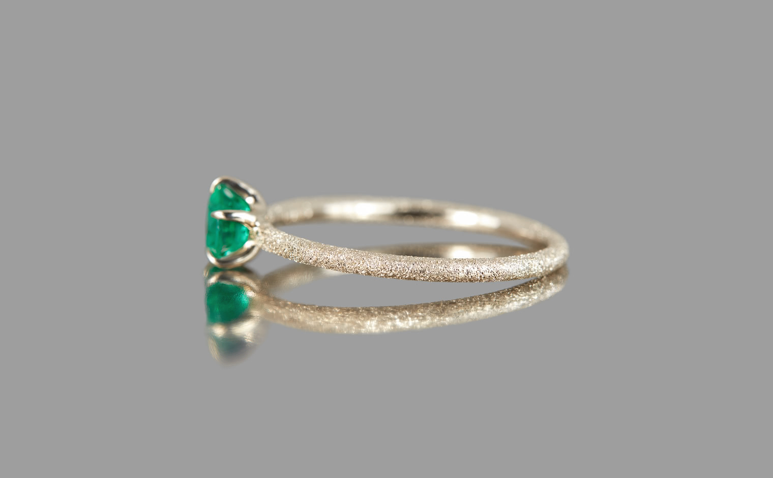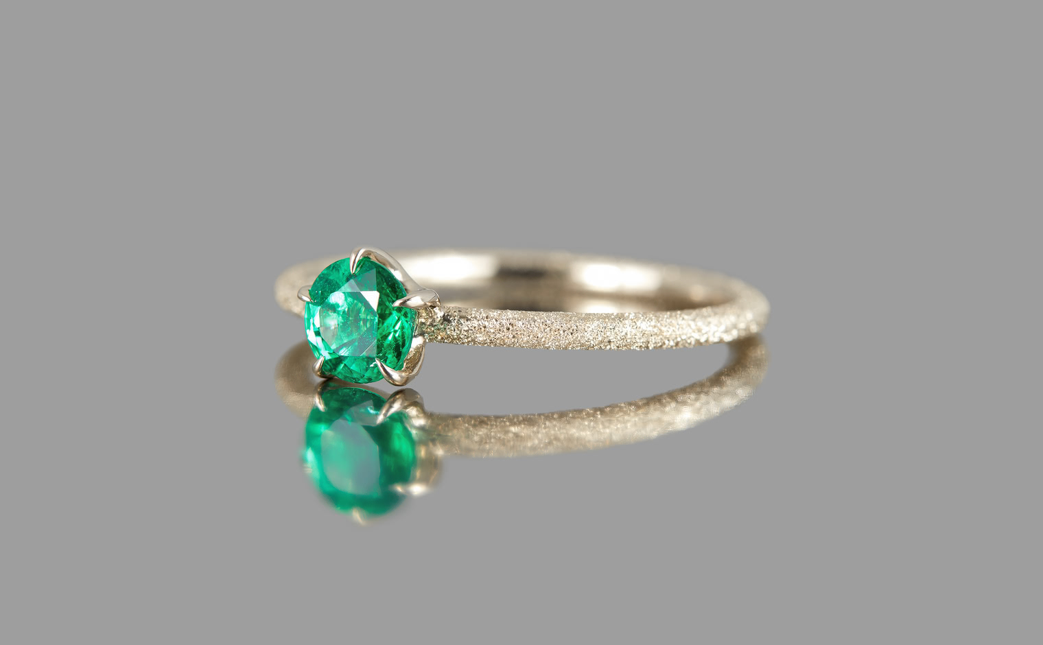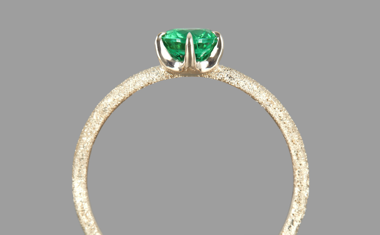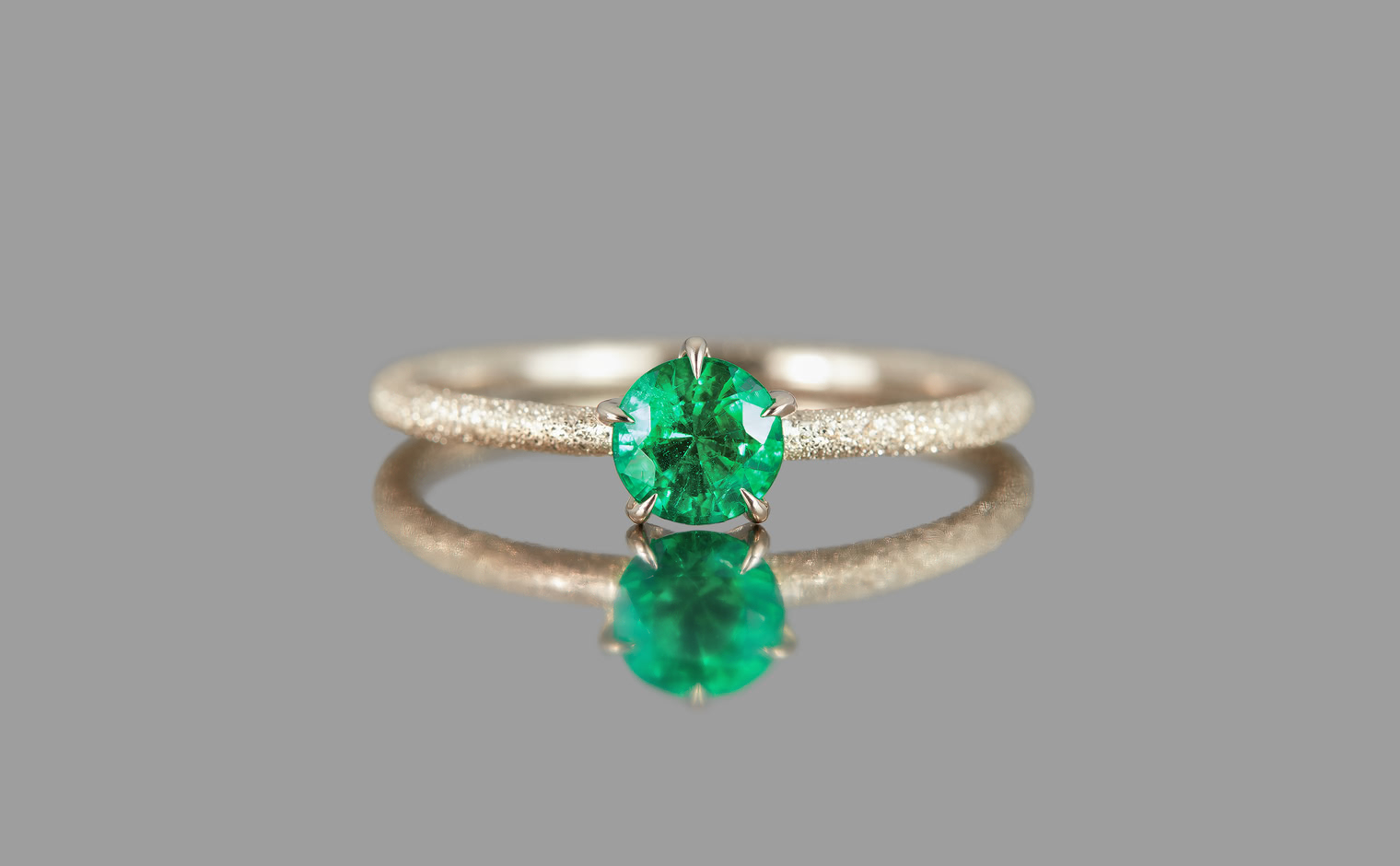 The Ultimate Green Glow. With its impressive brilliant cut that lets its flamboyant emerald illuminate atop its handcrafted stardust-finished band, the Emerald Stardust Ring-Supreme enchants with a lush glow as each magical moment passes by.