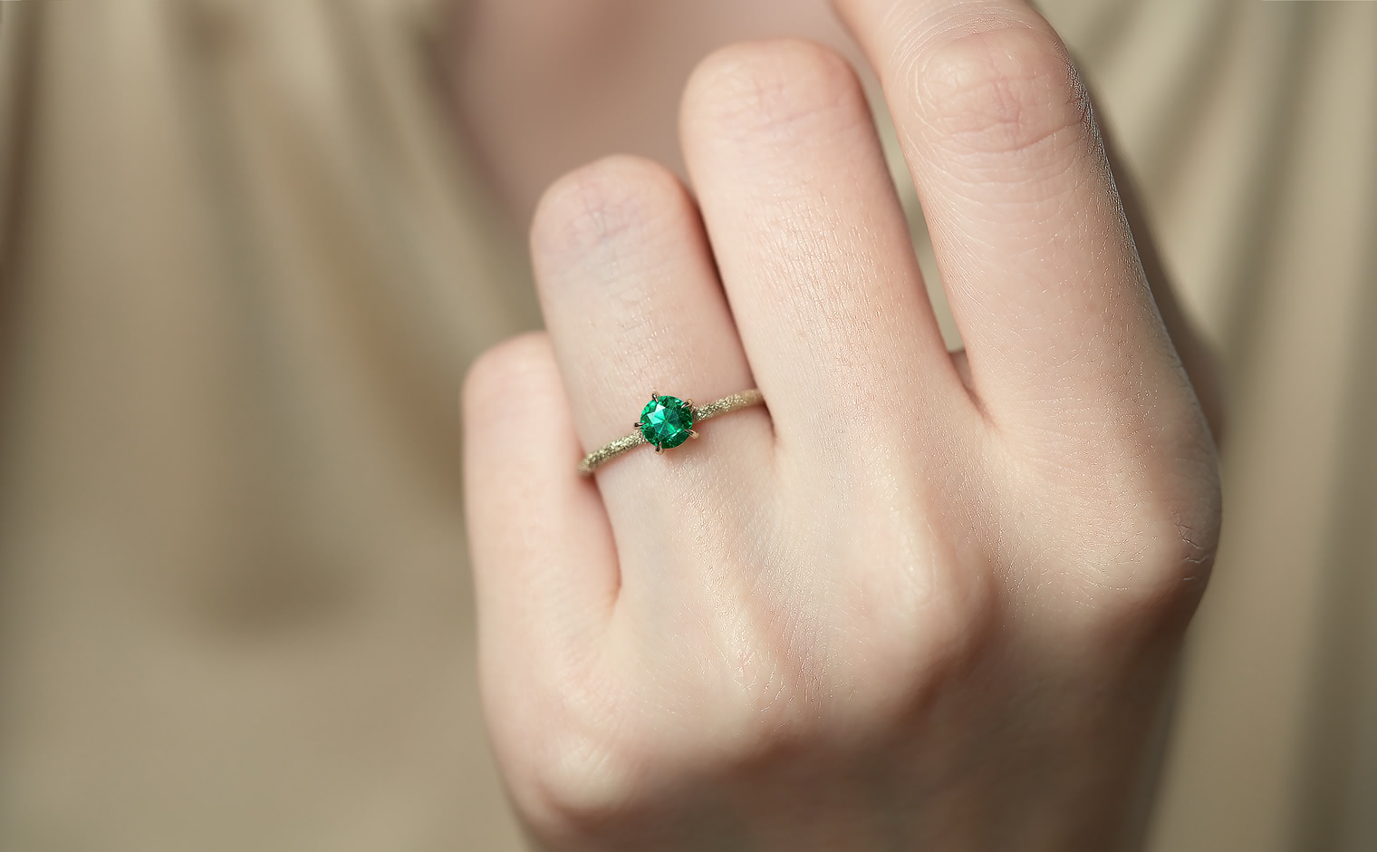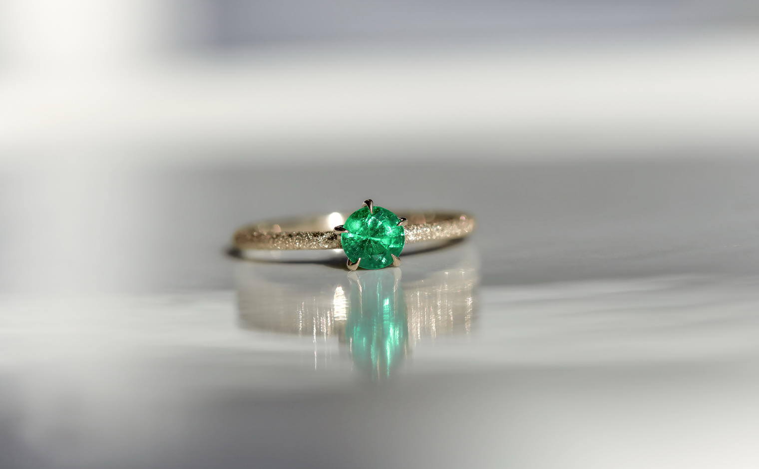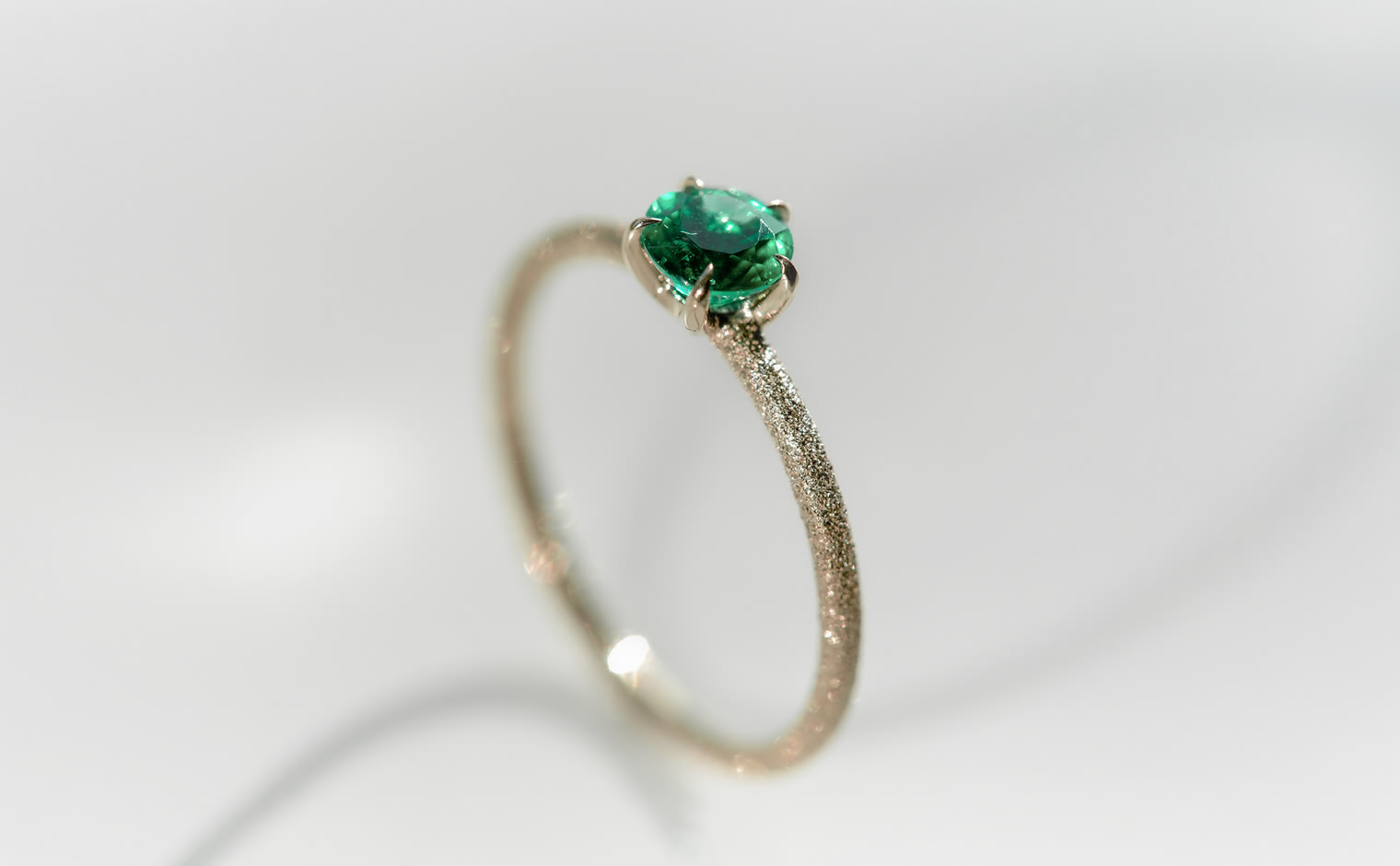 The Ultimate Green Glow. With its impressive brilliant cut that lets its flamboyant emerald illuminate atop its handcrafted stardust-finished band, the Emerald Stardust Ring-Supreme enchants with a lush glow as each magical moment passes by.