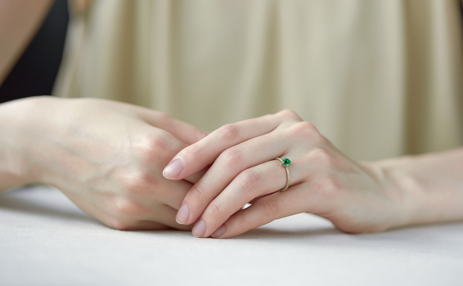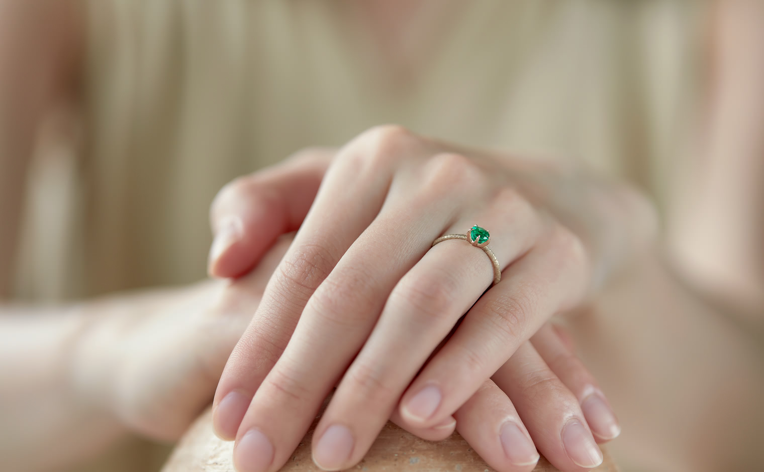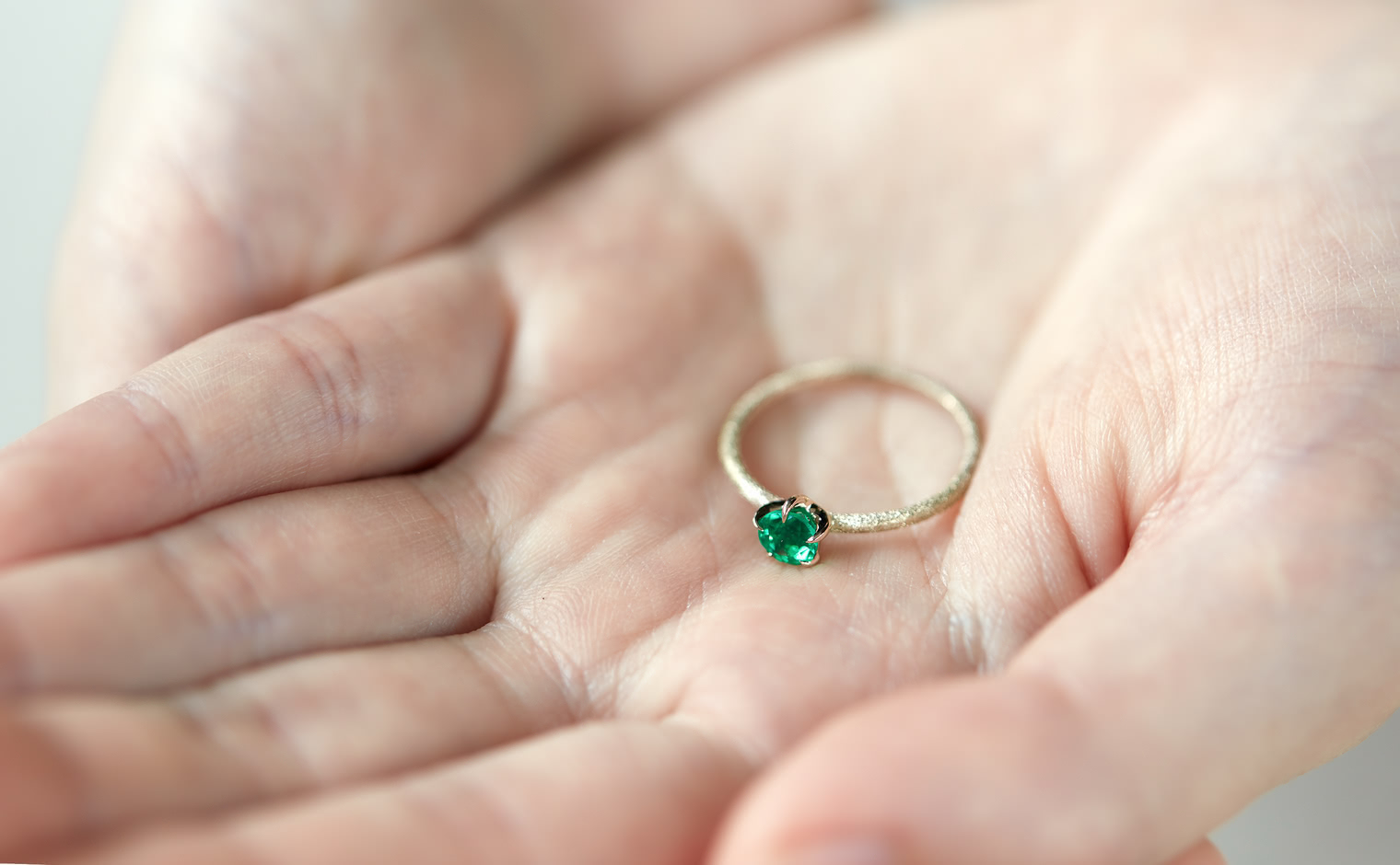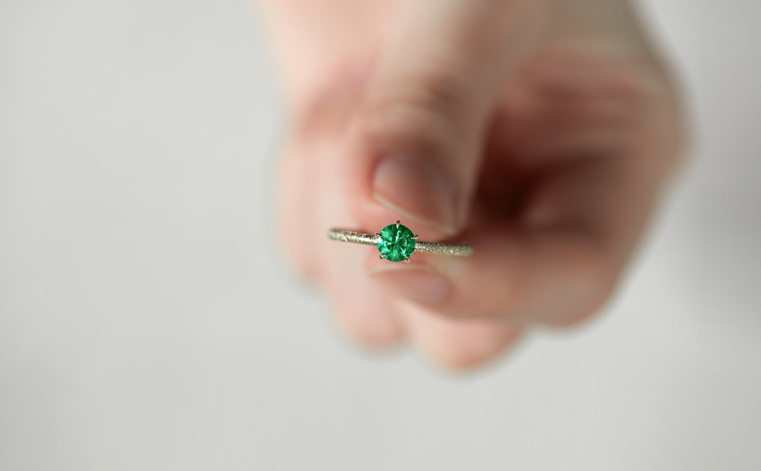 The Ultimate Green Glow. With its impressive brilliant cut that lets its flamboyant emerald illuminate atop its handcrafted stardust-finished band, the Emerald Stardust Ring-Supreme enchants with a lush glow as each magical moment passes by.