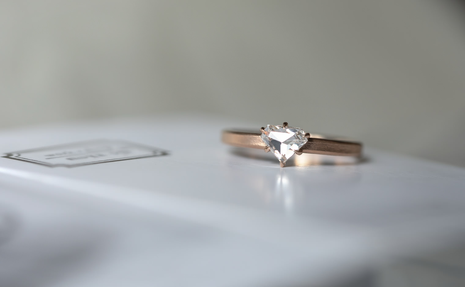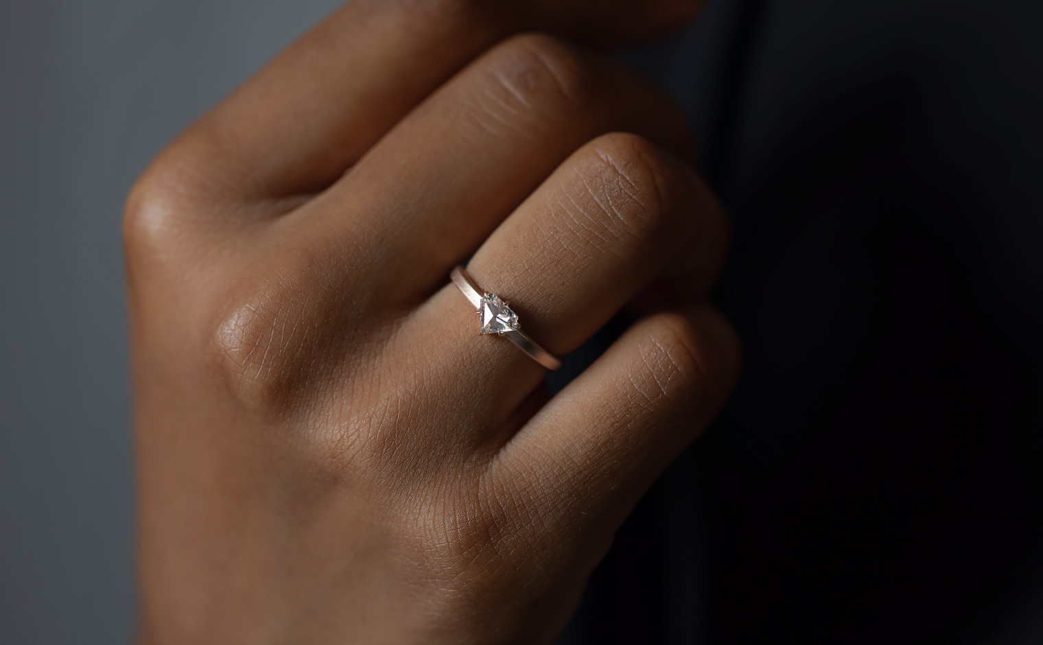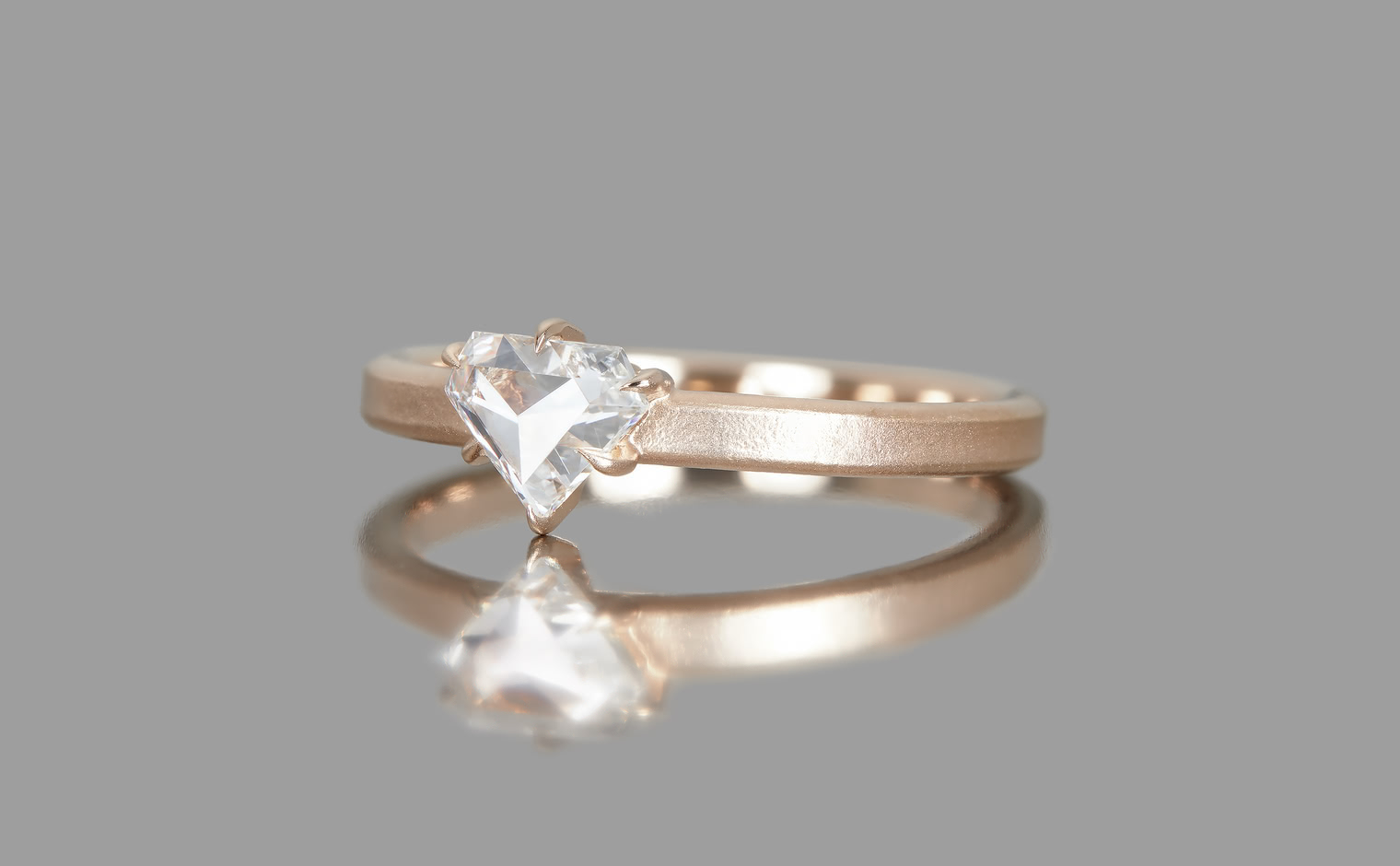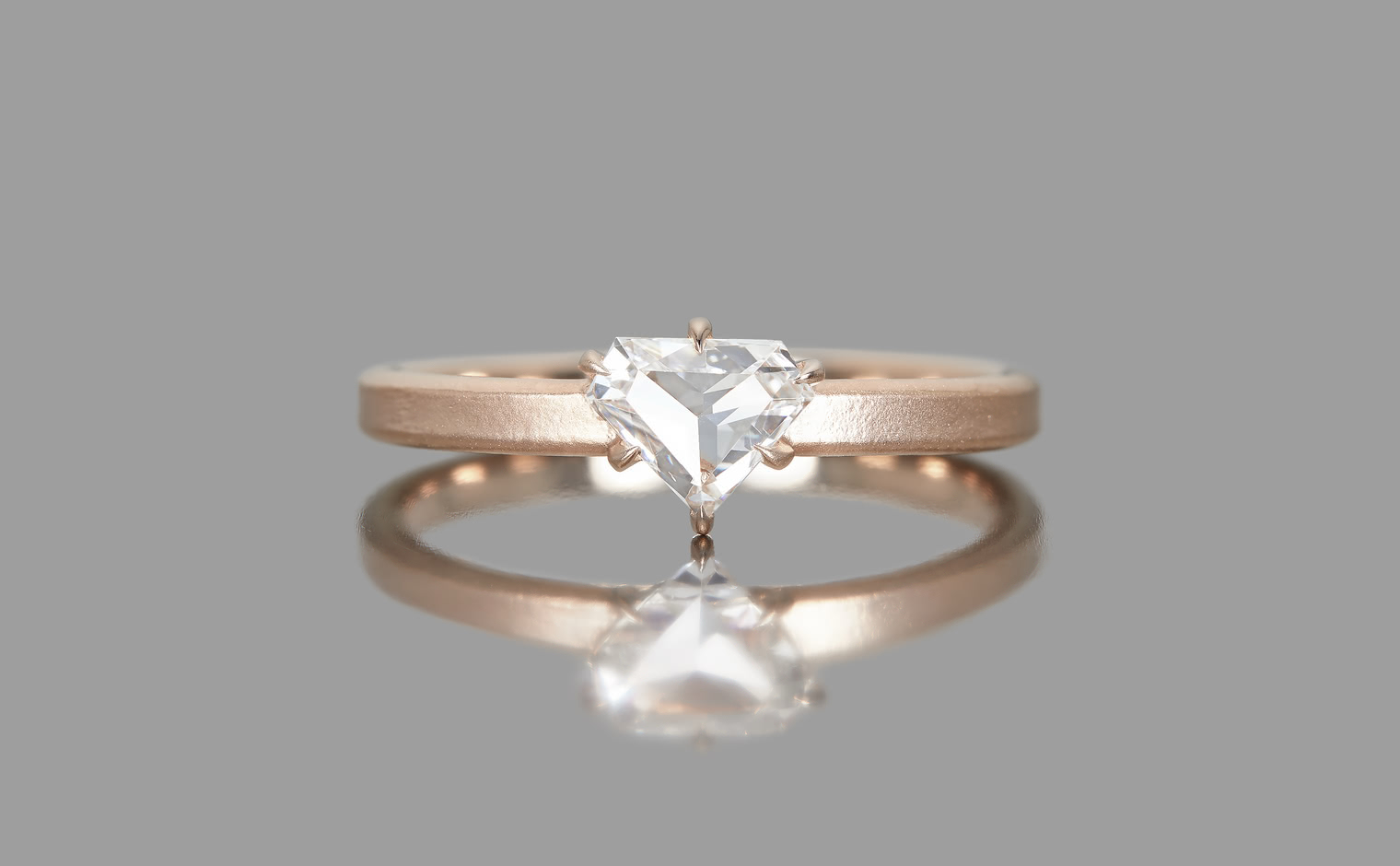 Dare to be bolder. Created with a shimmering shield-cut diamond on a semi-polished rose gold band, the Escudo Ring-Supreme captures the meaning of beauty found in audacious minimalism.
