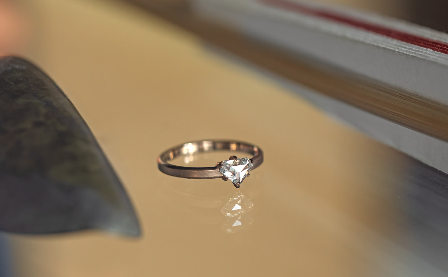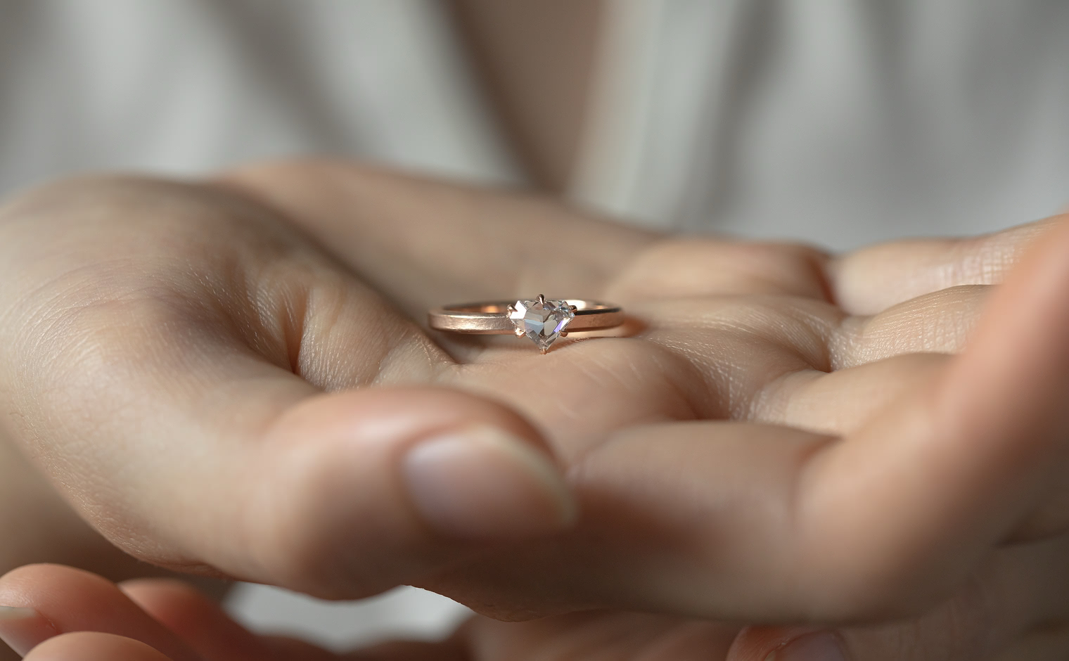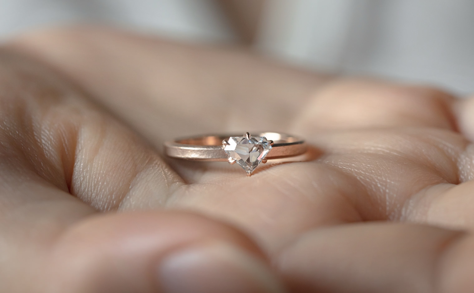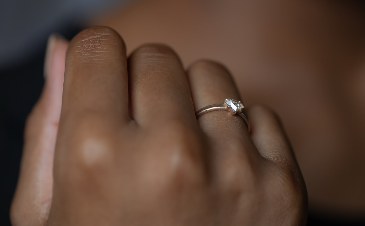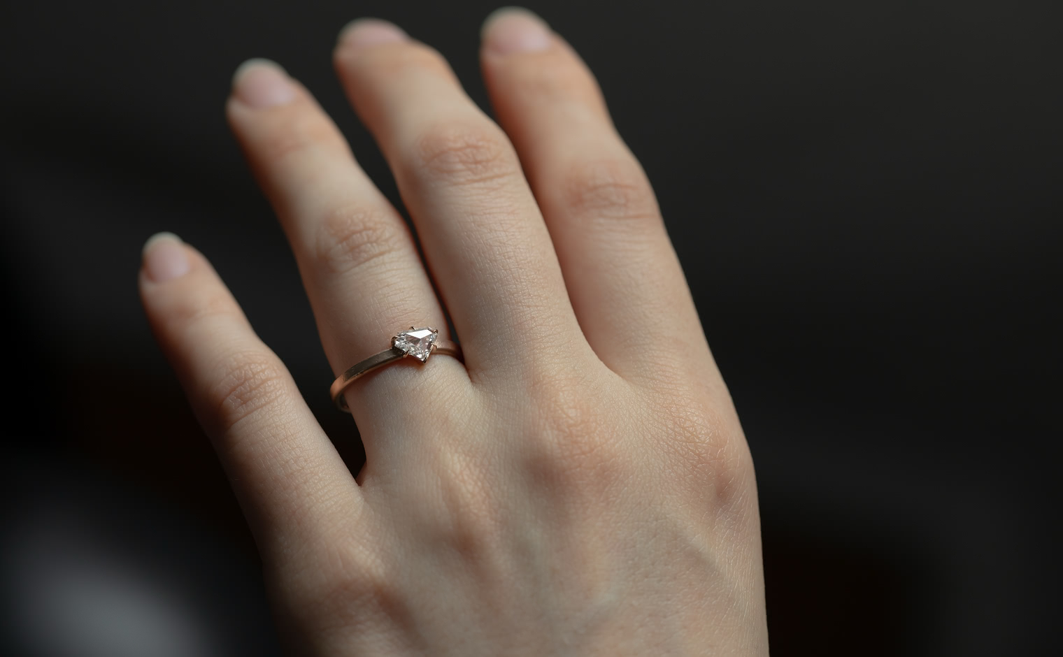 Dare to be bolder. Created with a shimmering shield-cut diamond on a semi-polished rose gold band, the Escudo Ring-Supreme captures the meaning of beauty found in audacious minimalism.