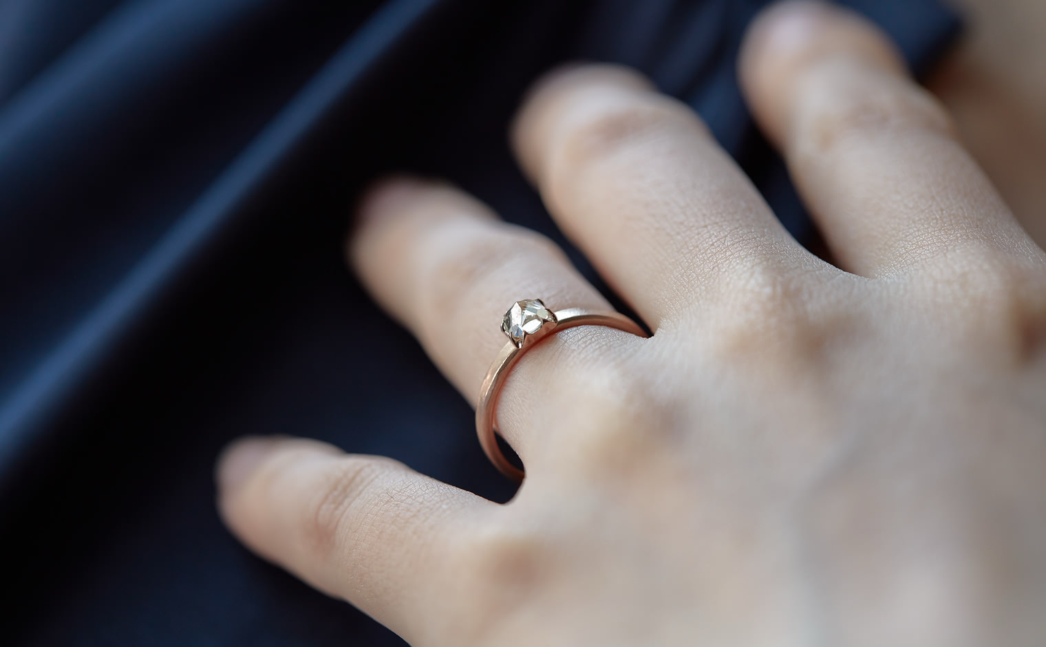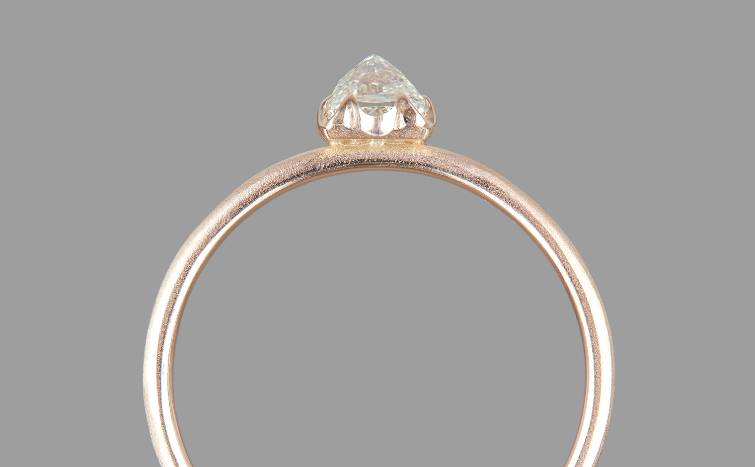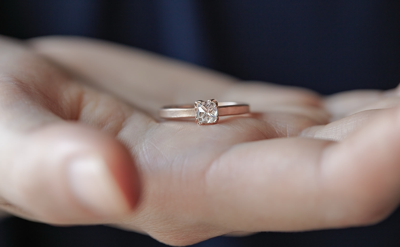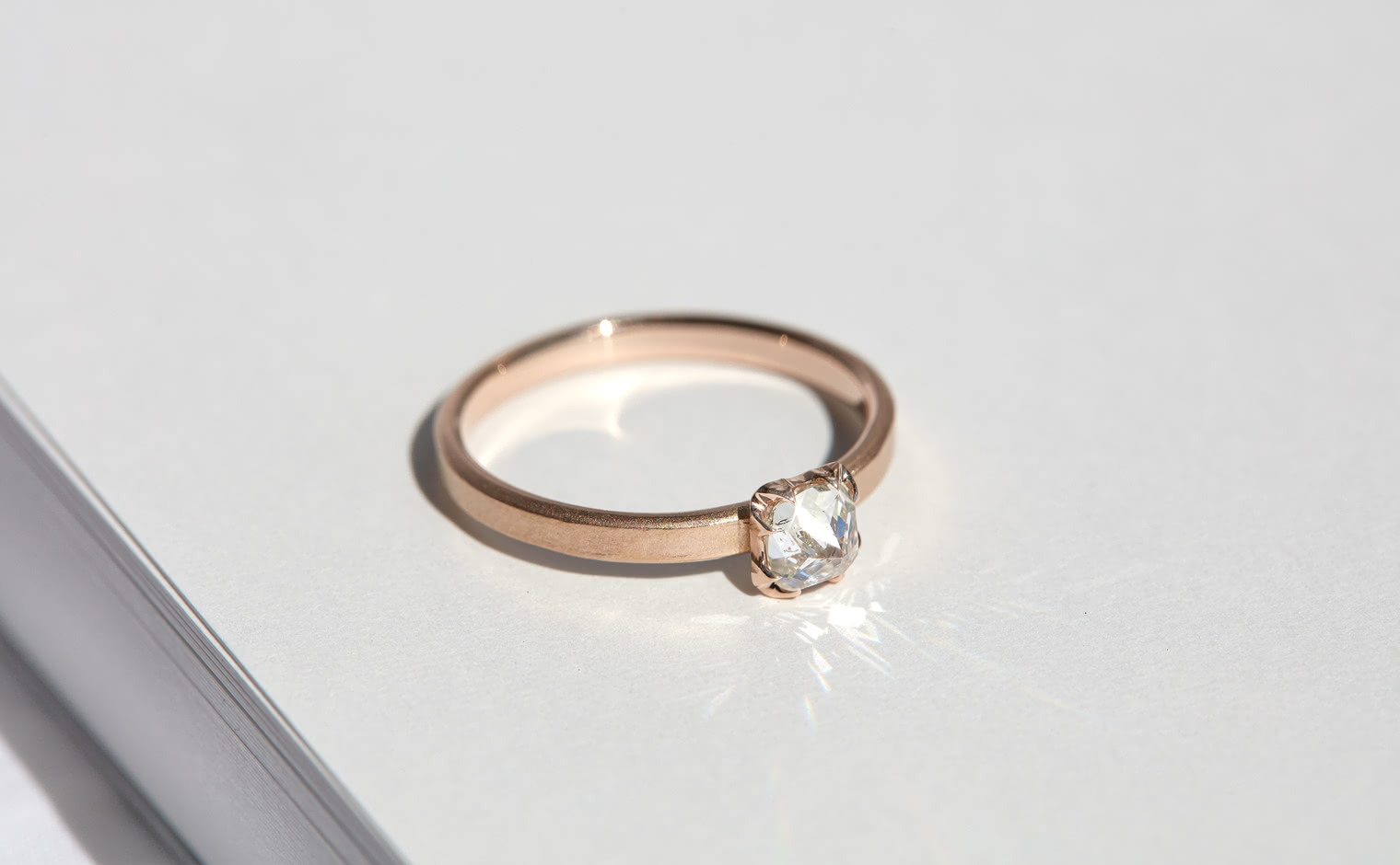 Love is Over the Top. Sparkling and authentic, this unique rough diamond is masterfully mounted inverted on a handcrafted rose gold band, making the Iceberg Ring-Cushion an irresistibly bucolic and charming piece of treasure.