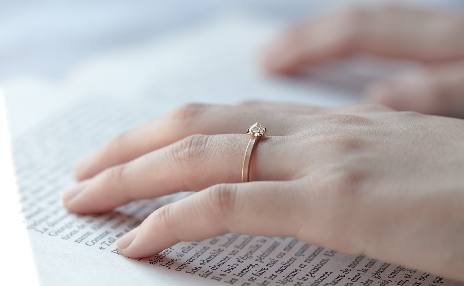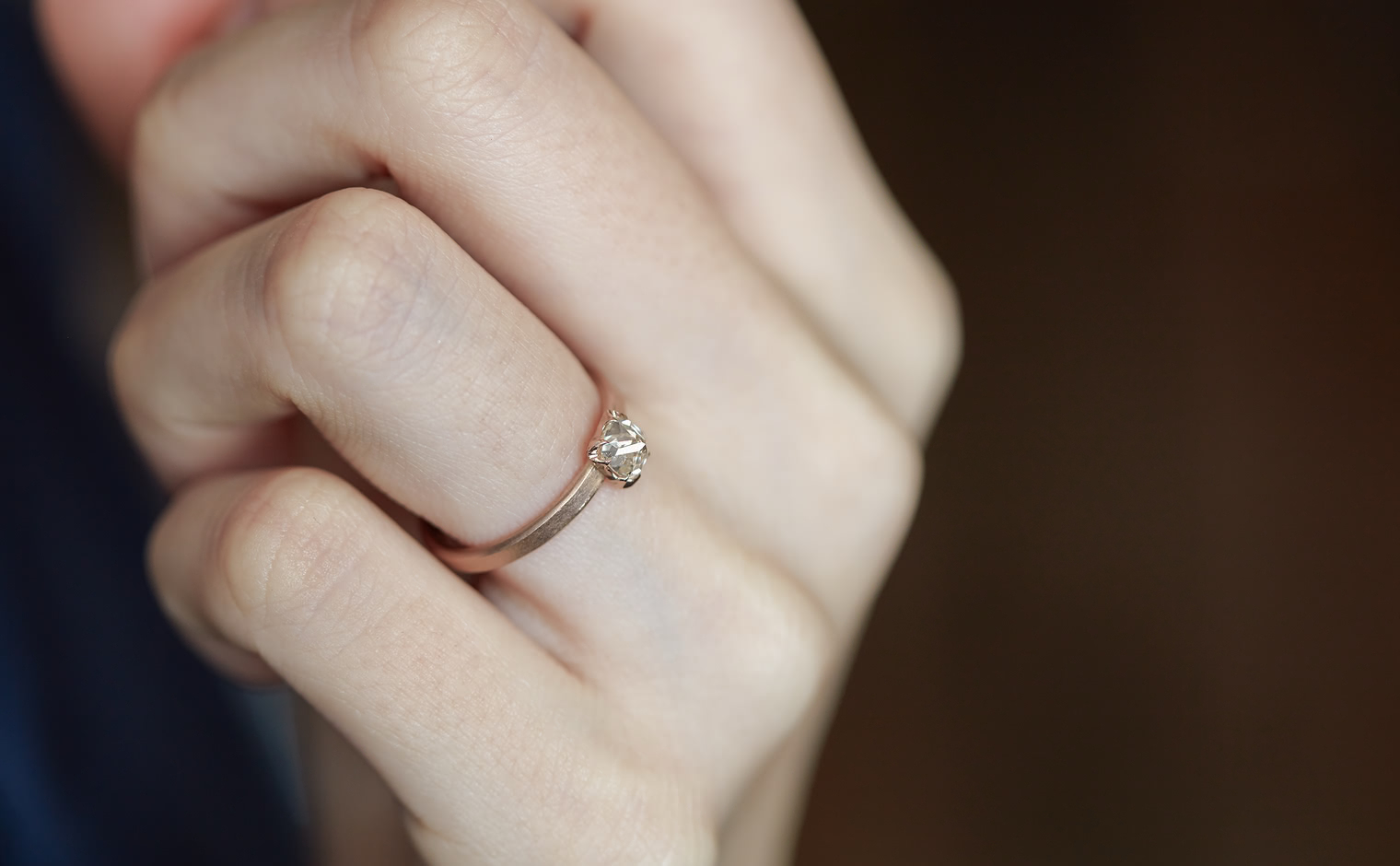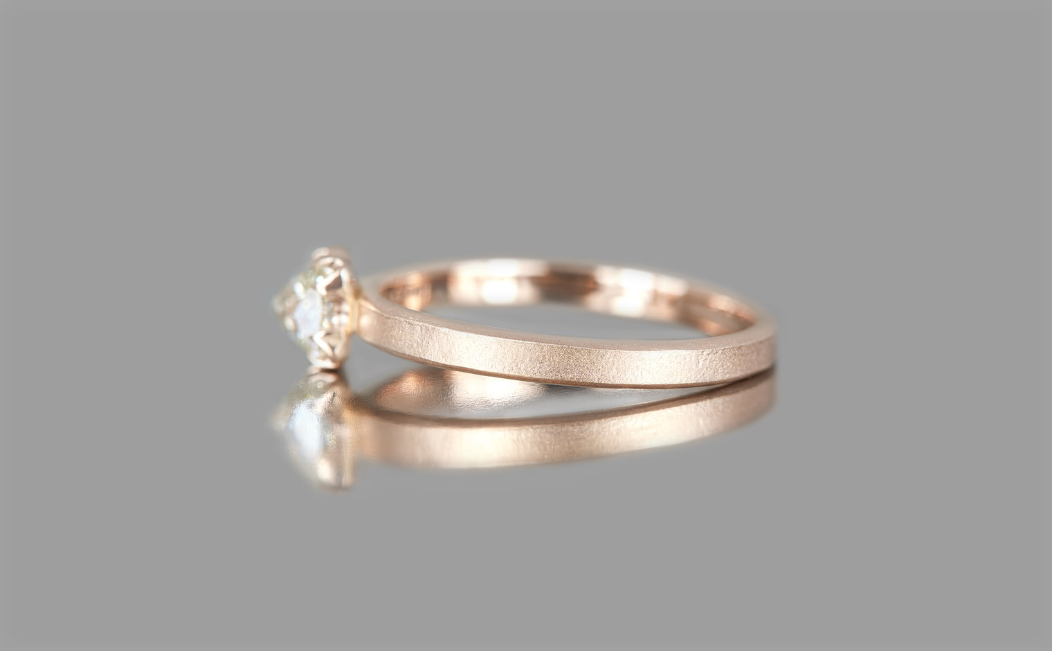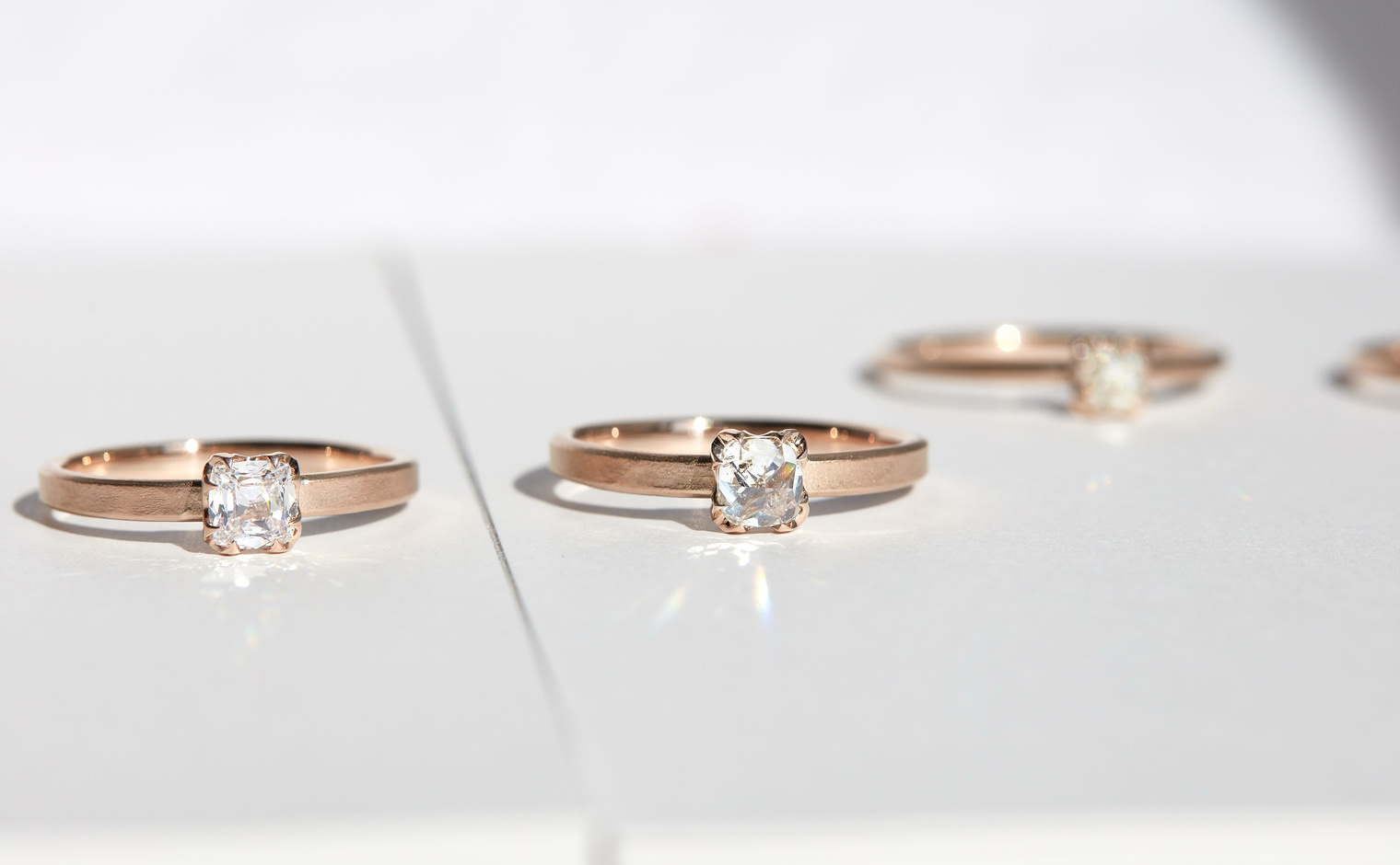Love is Over the Top. Sparkling and authentic, this unique rough diamond is masterfully mounted inverted on a handcrafted rose gold band, making the Iceberg Ring-Cushion an irresistibly bucolic and charming piece of treasure.