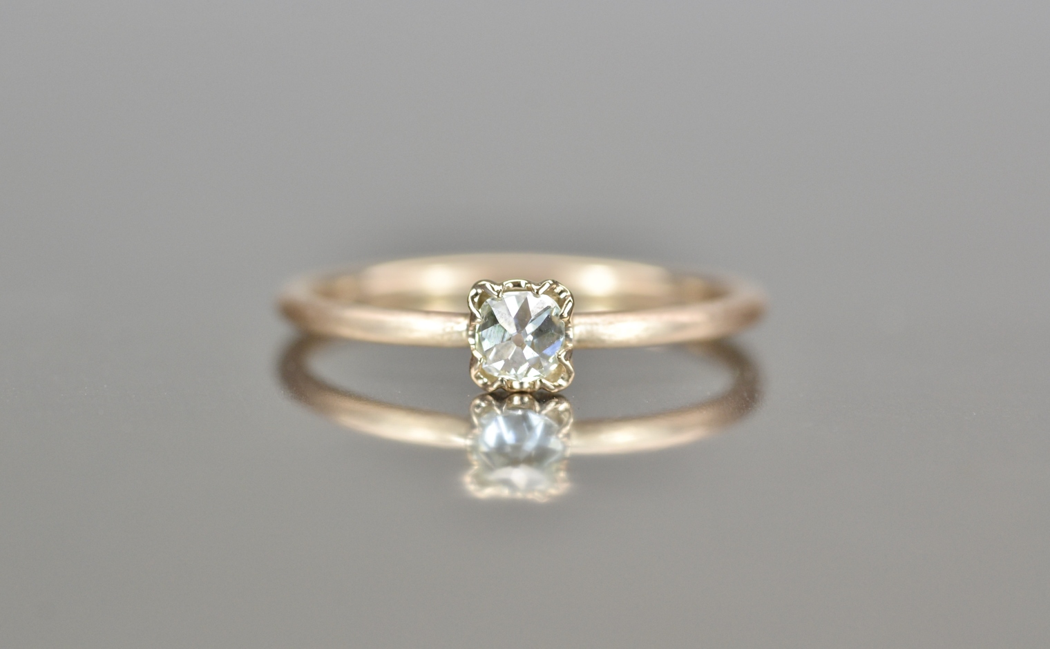 Classic yet contemporary, this solitaire diamond is masterfully hand-selected for its brilliance and cut. A setting of expertly blended gold is created to embrace the stone and lift it center stage for maximum effect. Carefully designed and crafted, this is the perfect ring to pair with others.