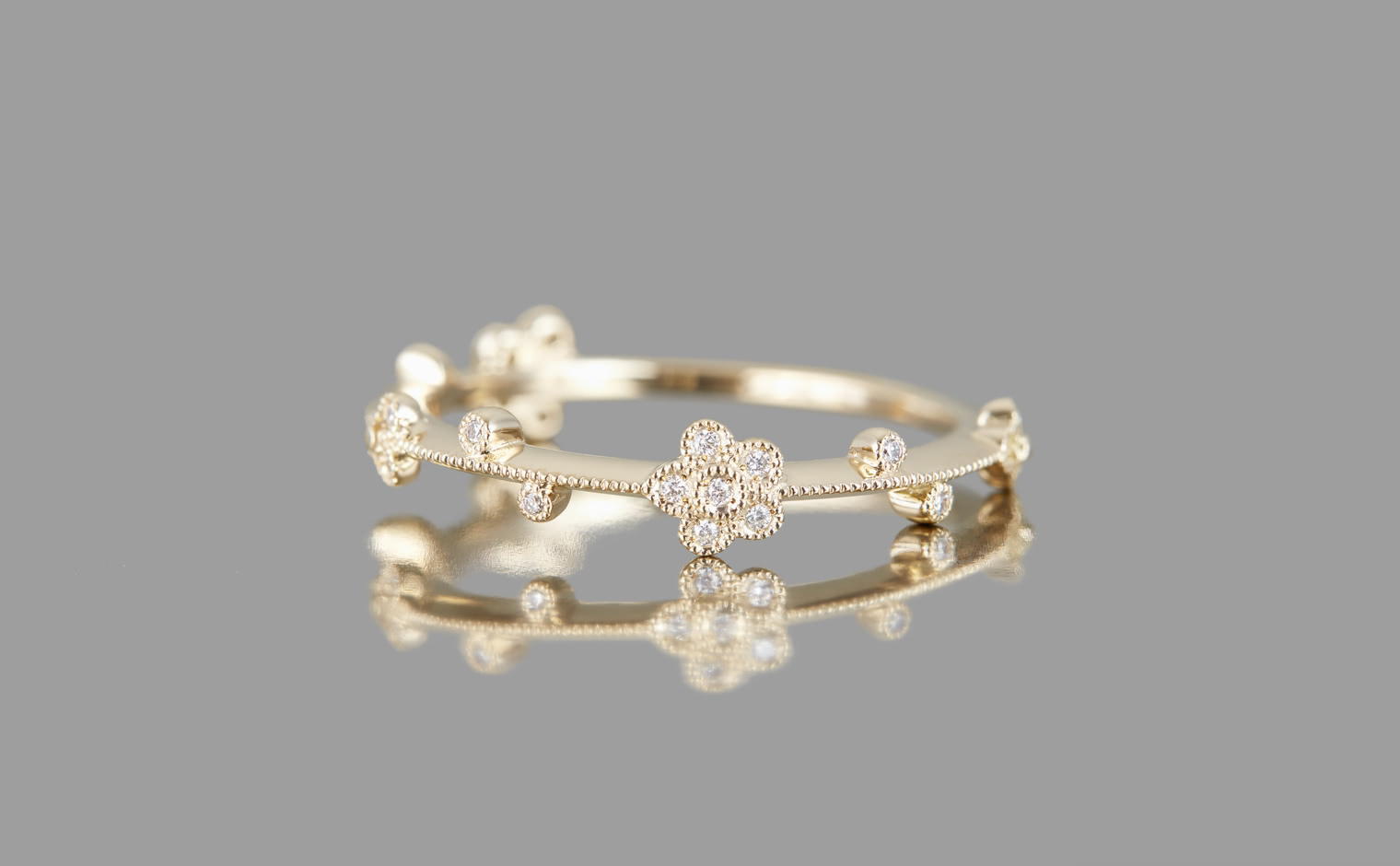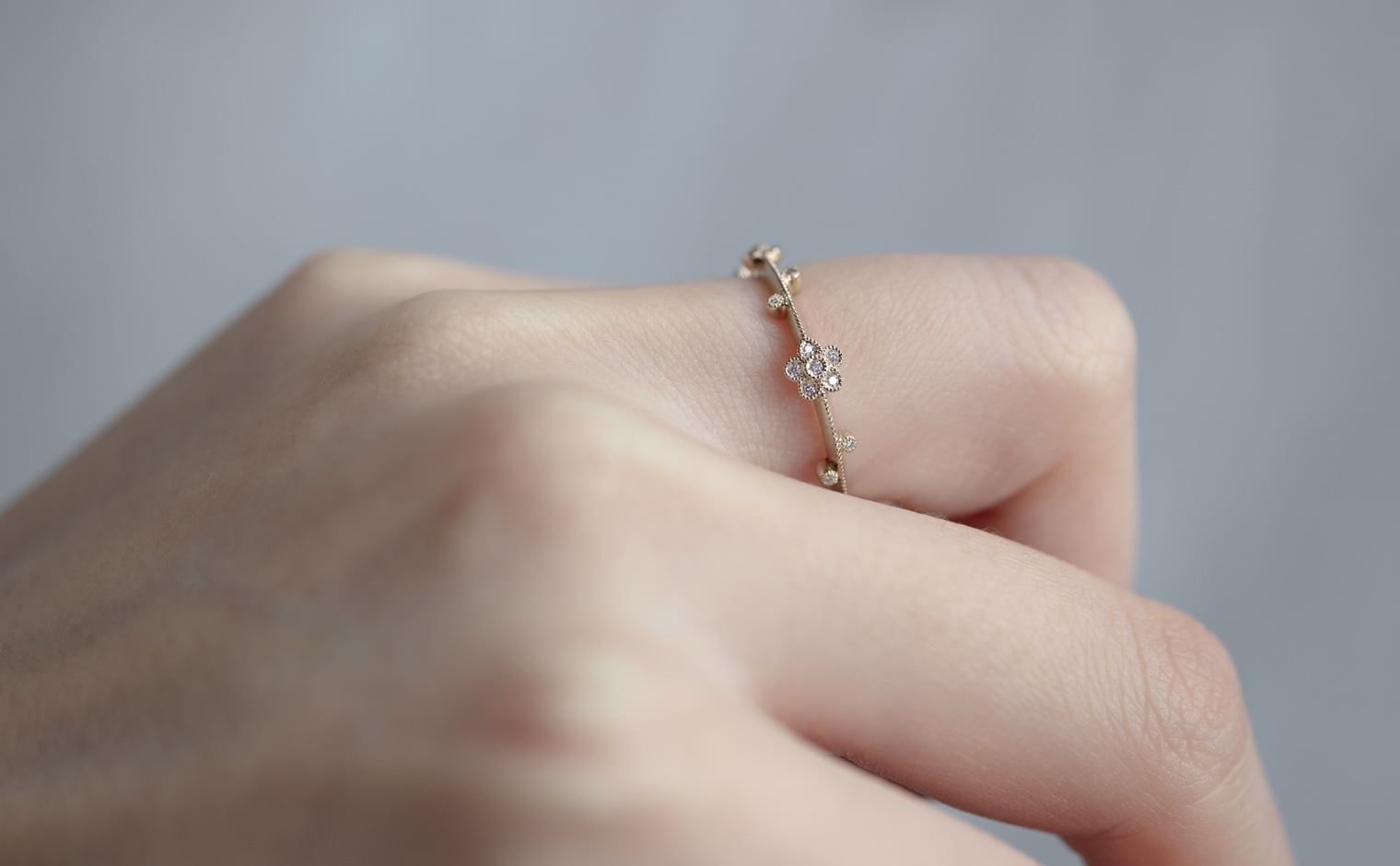 Delicate radiance unfolds in graceful harmony. The Little Flowers Ring mirrors timeless refinement, a subtle expression of beauty and grace.