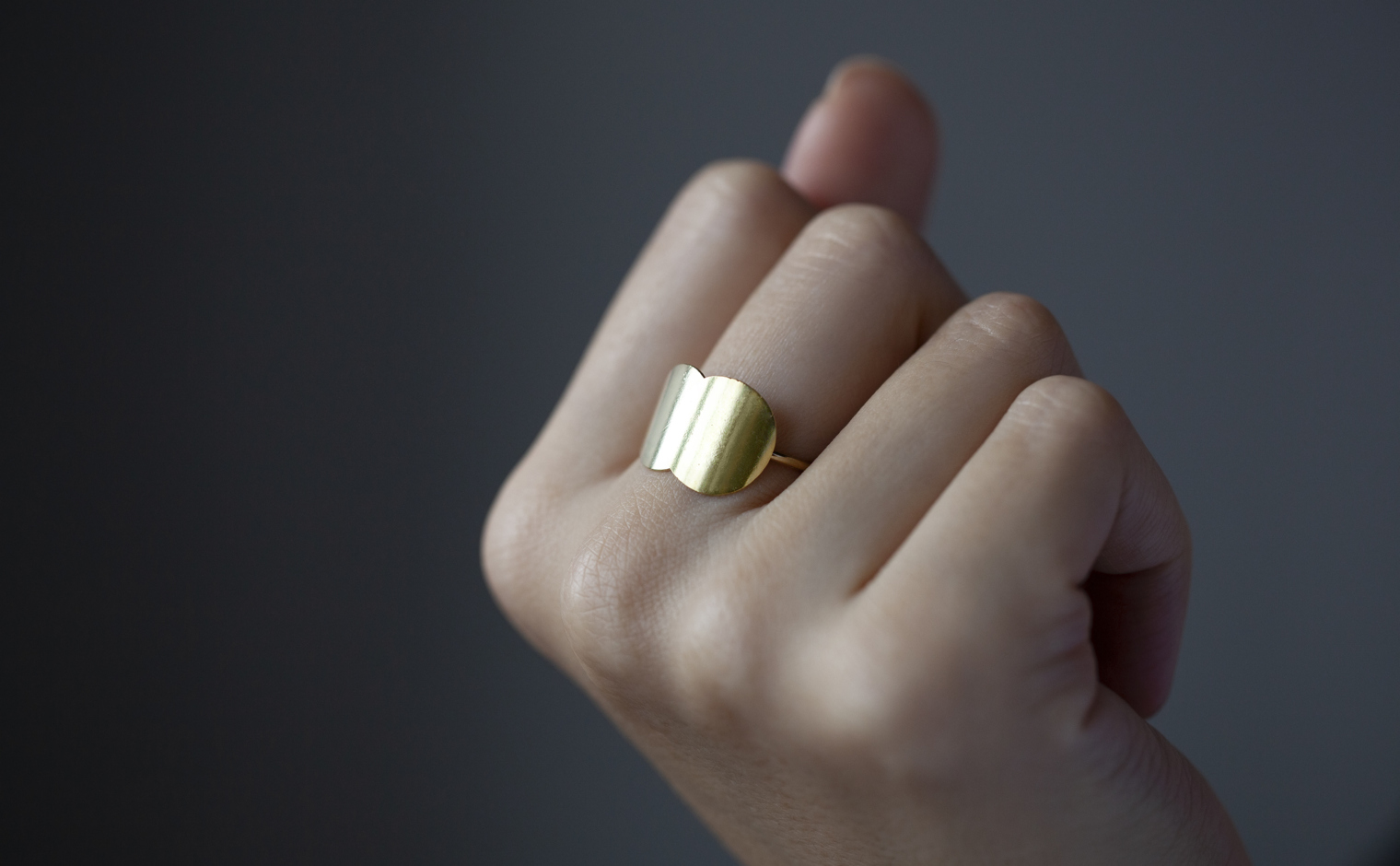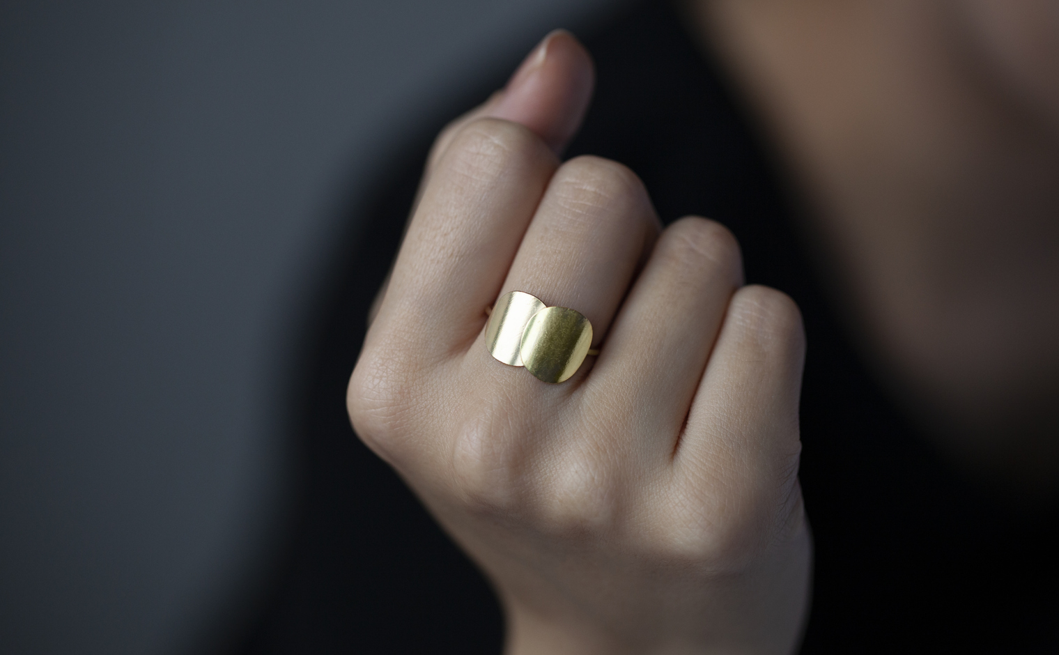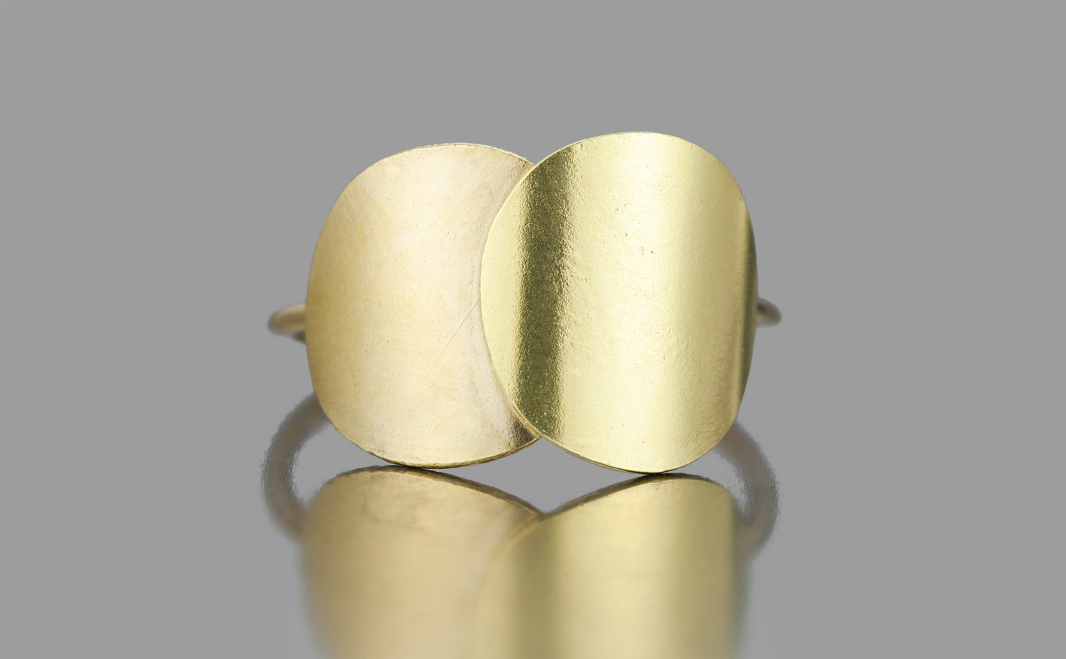 Luminous discs of exceptionally custom-blended rose gold and beige gold are formed and gently curved to wrap flawlessly around the finger. A thin band maintains an elegant approach and supports the bold profile creating an effortless synergy signature to the kataoka brand.