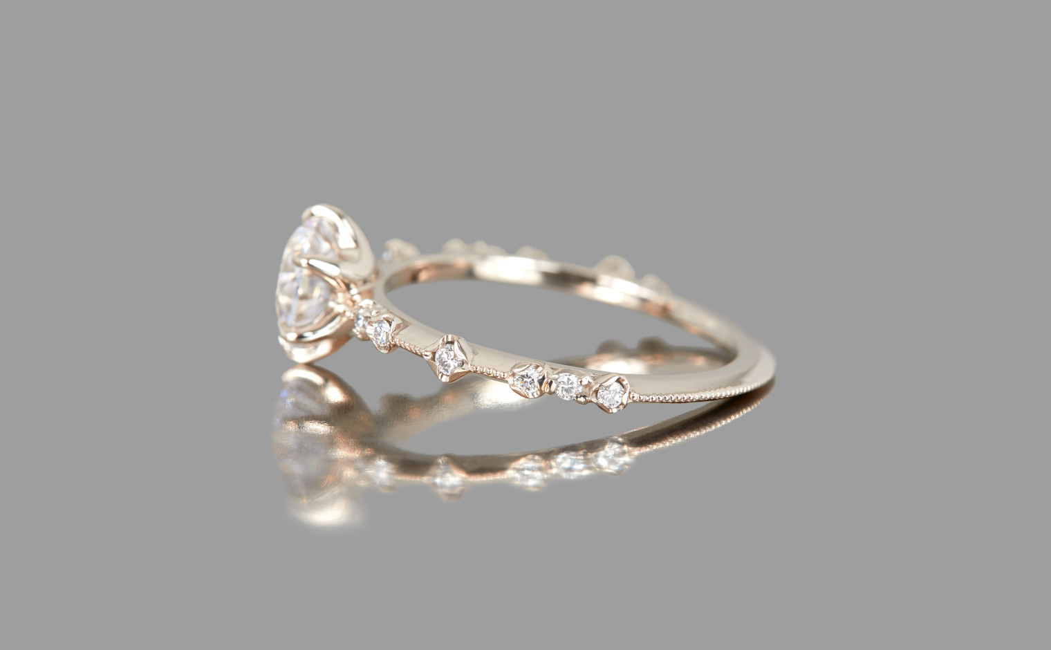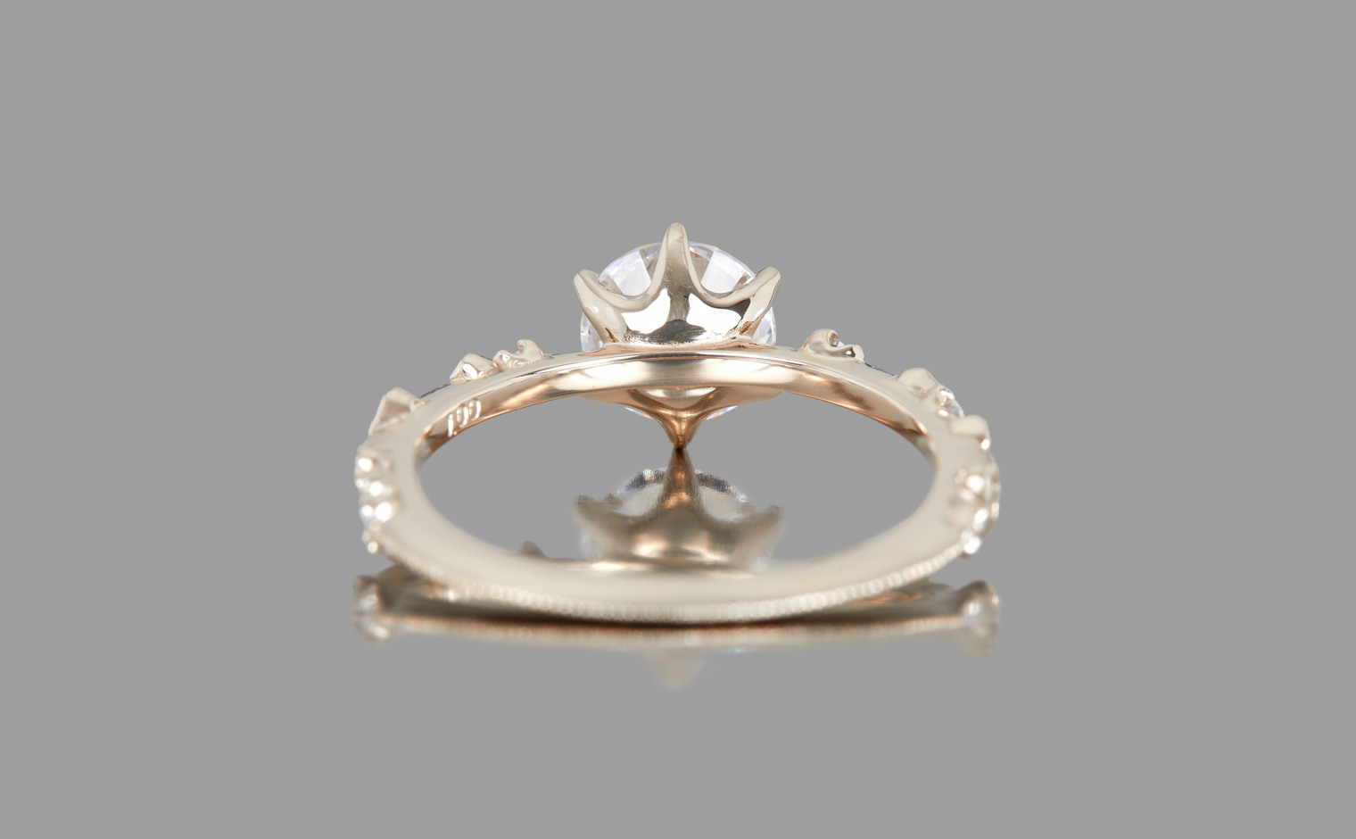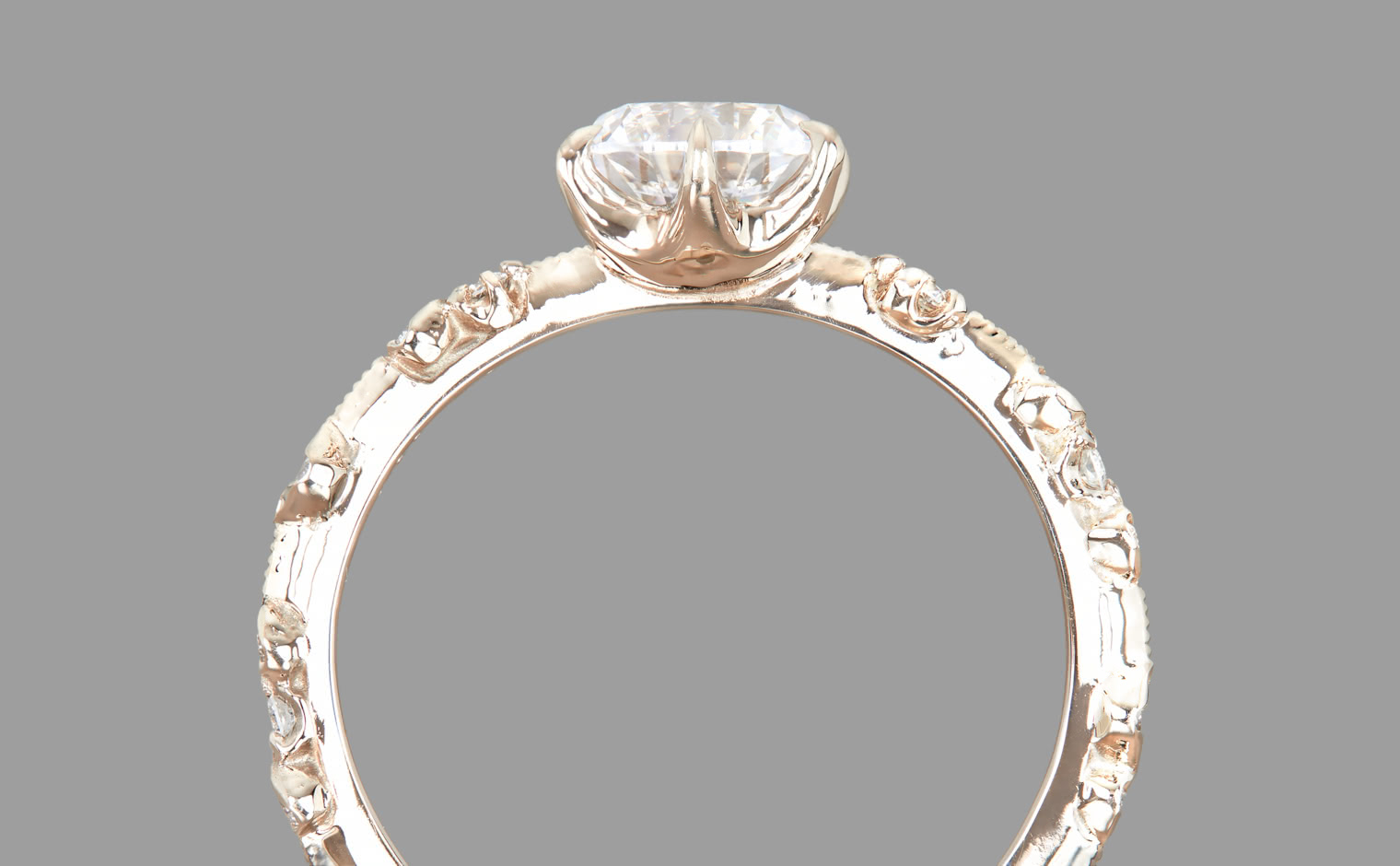 Diamonds trace a delicate rhythm of light, their brilliance unfolding with effortless grace. The New Moon Ring reflects a presence both fleeting and eternal—a whispered elegance, suspended in time.