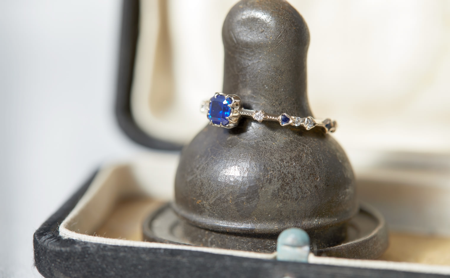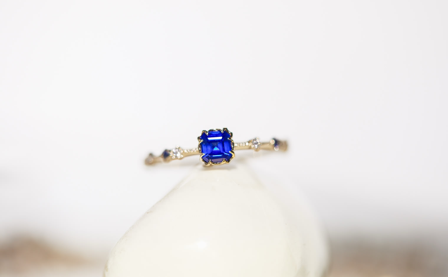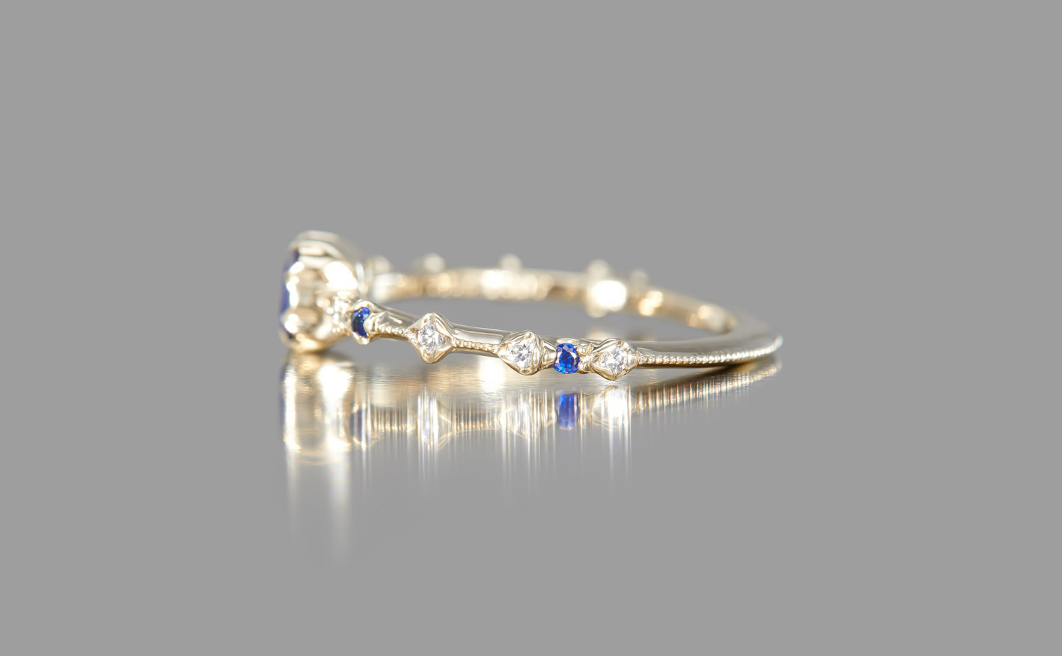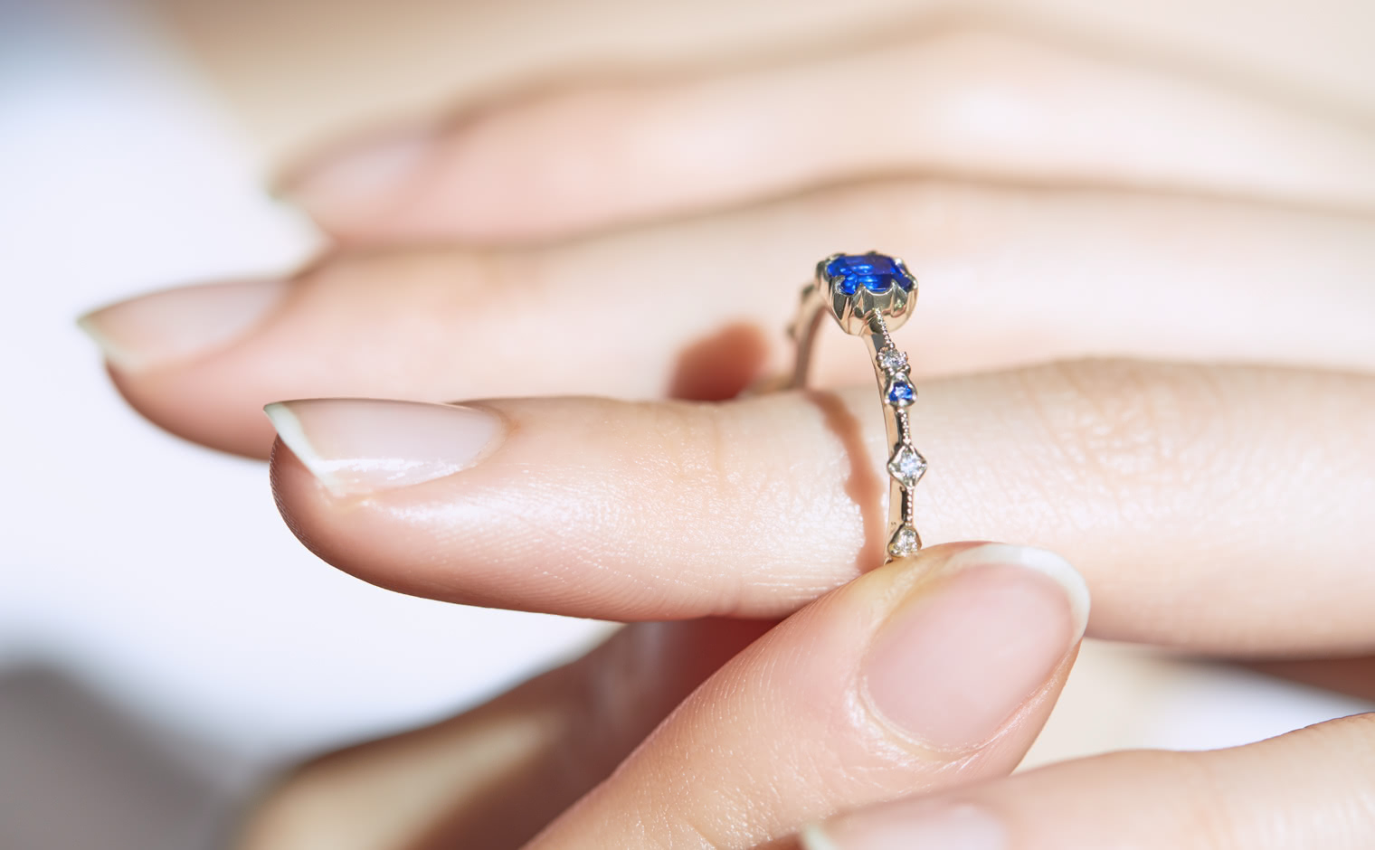 Sapphires and diamonds in gentle brilliance, their radiance flowing with subtle allure. The Paeonia Ring–Sapphire reflects delicate artistry, a lasting expression of elegance—refined, luminous, and timeless.