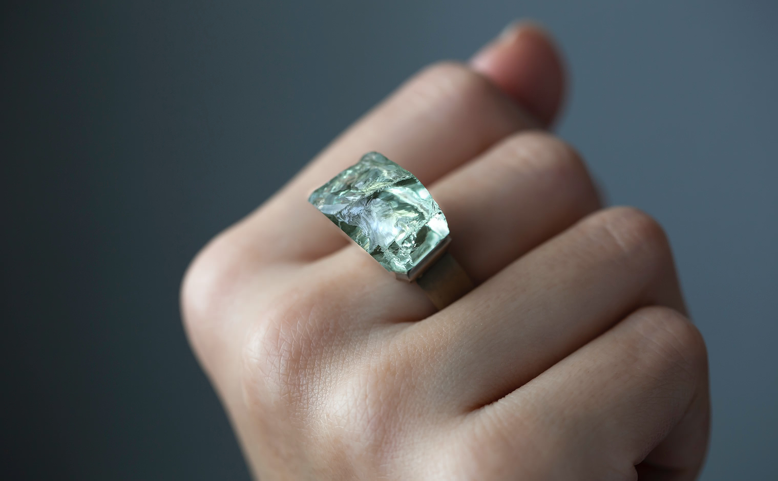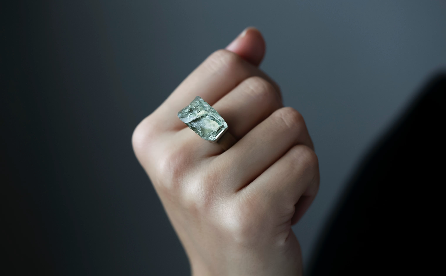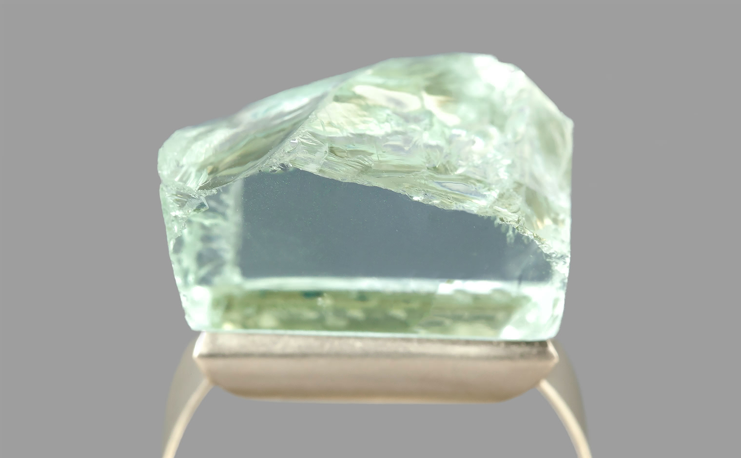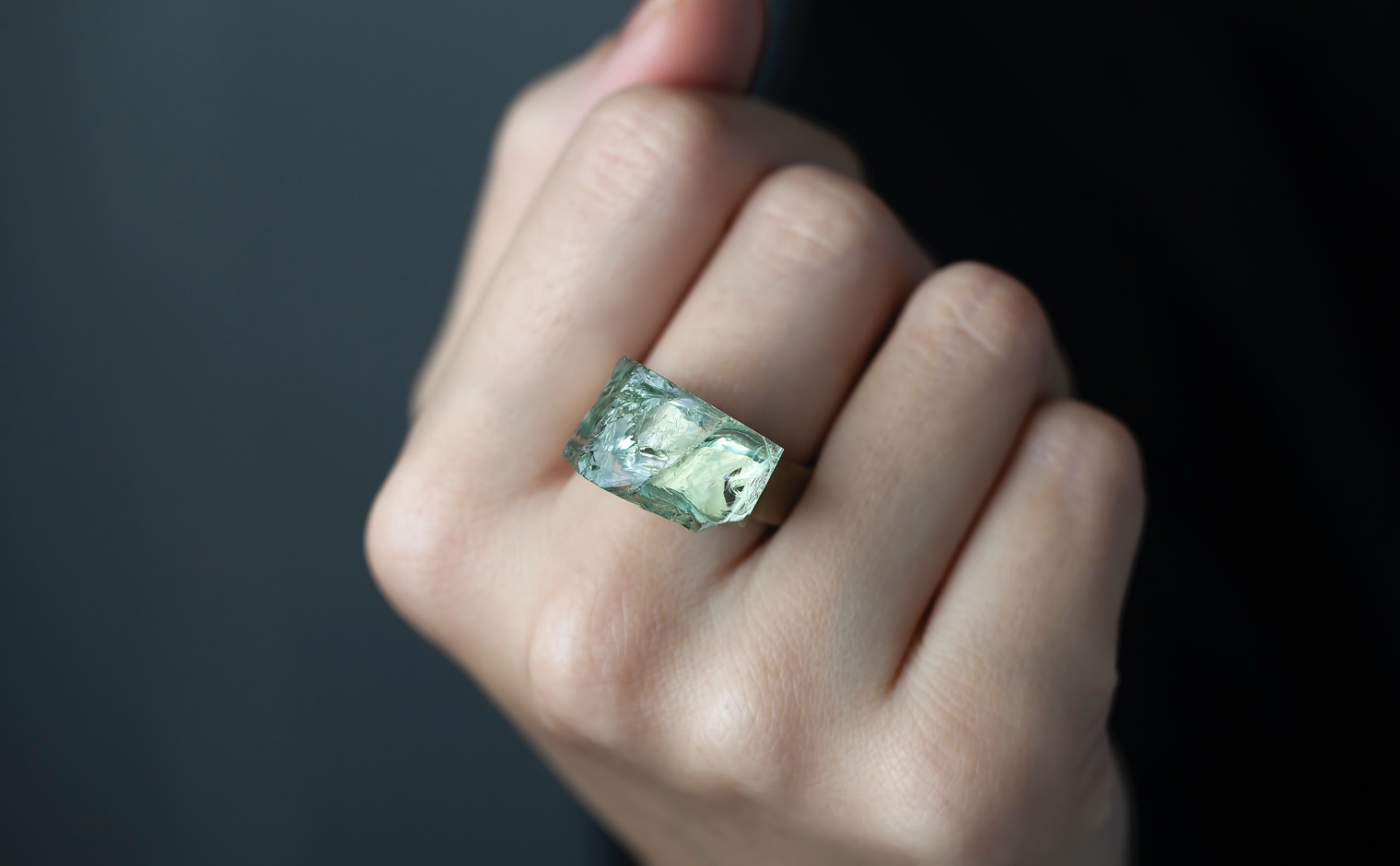 The natural beauty of this raw-edged green Quartz is balanced by the subtle color of kataoka custom blended gold in an innovative seamless setting to form the perfect statement piece. This one-of-a-kind ring is sure to be your new every-occasion-favorite.