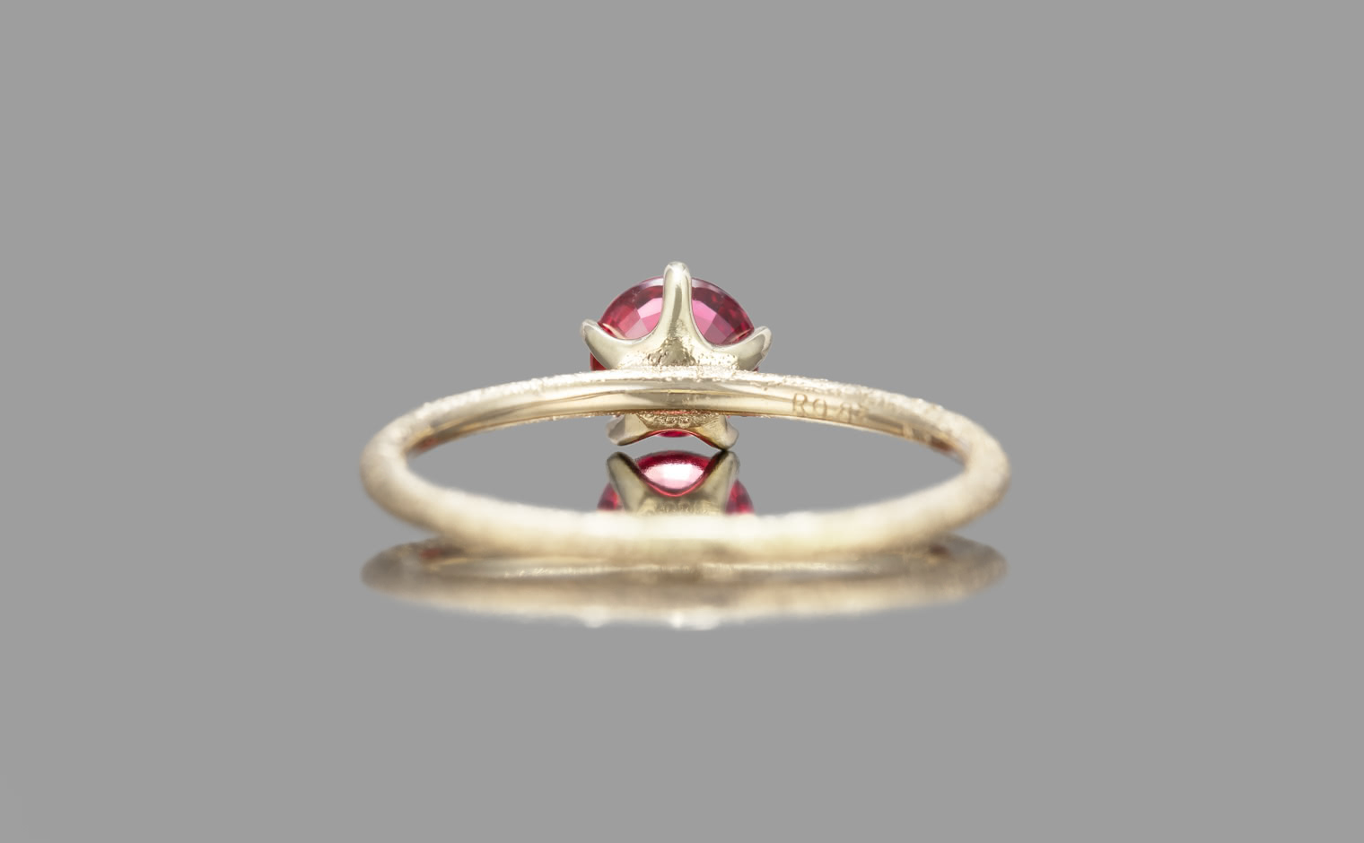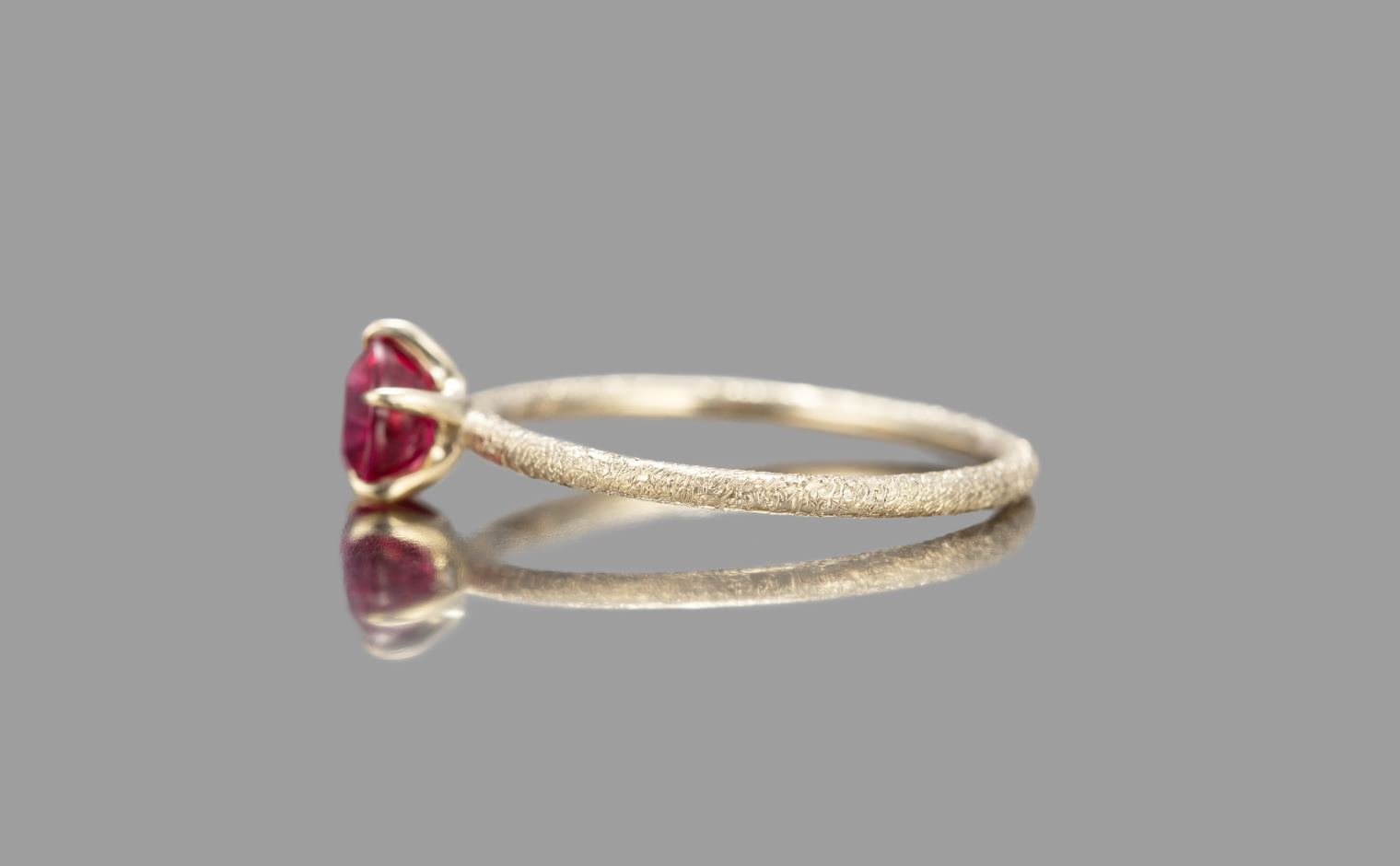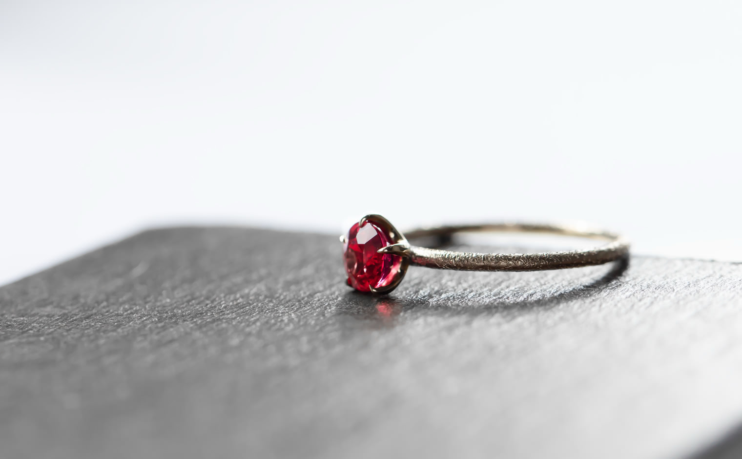 A ruby, its glow emanating with soft warmth. The Ruby Stardust Ring reflects enduring beauty, a timeless expression of grace and radiant charm.