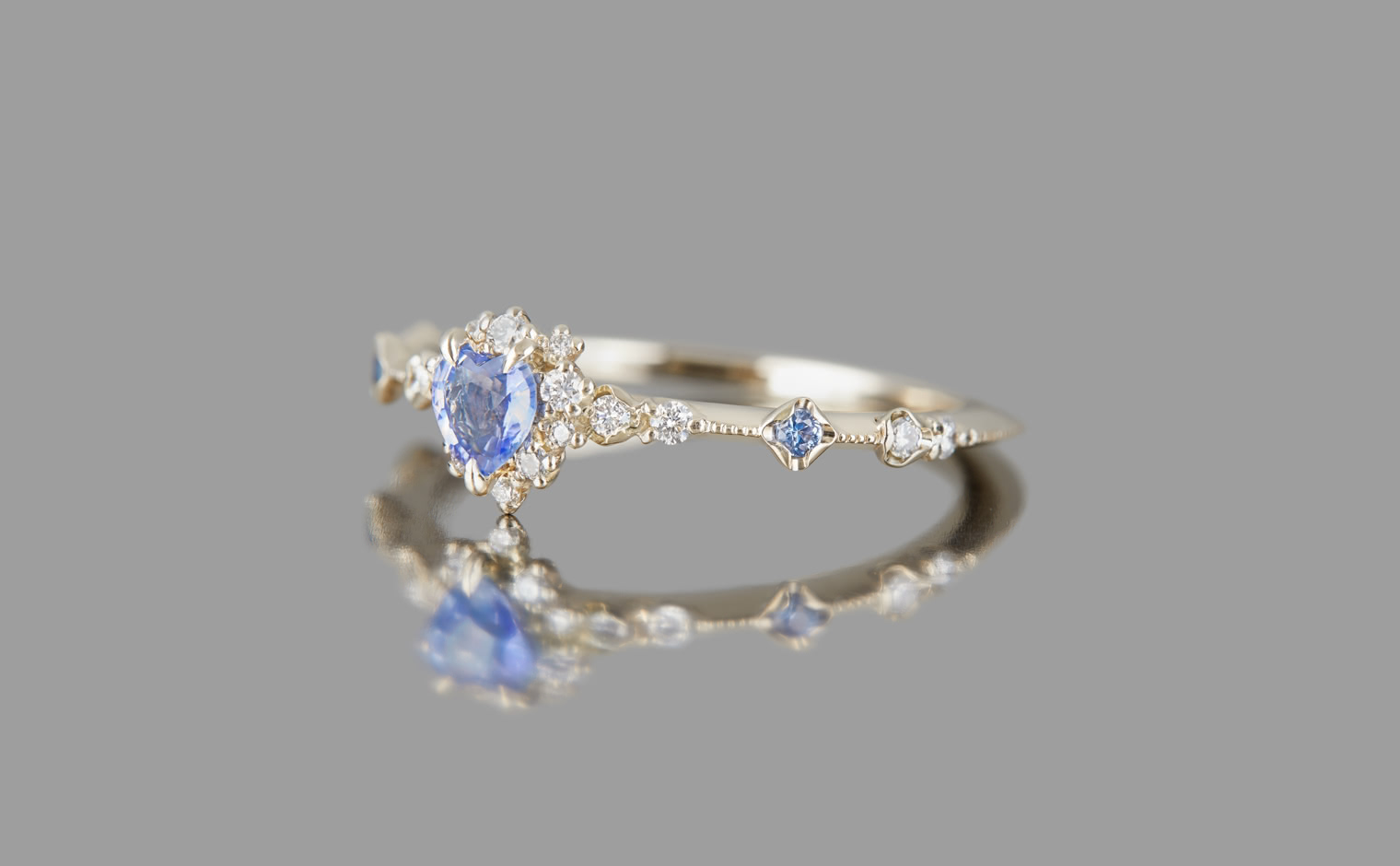 A quiet shimmer, where sapphire’s glow unveils a whispered elegance. The Sapphire Heart Ring embodies timeless refinement, a delicate expression of devotion, radiant, luminous, and everlasting.