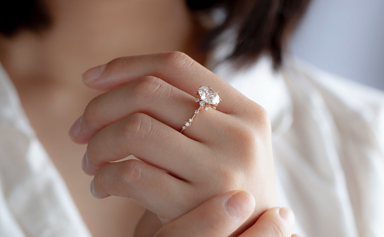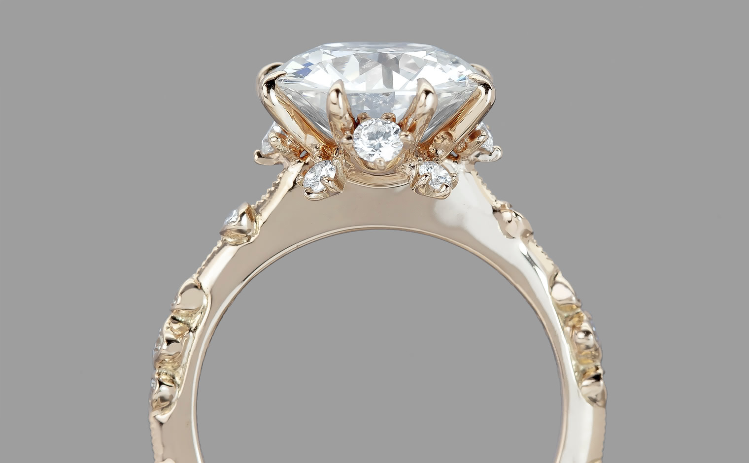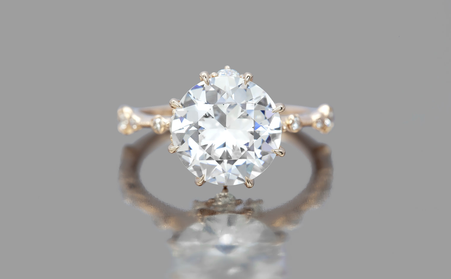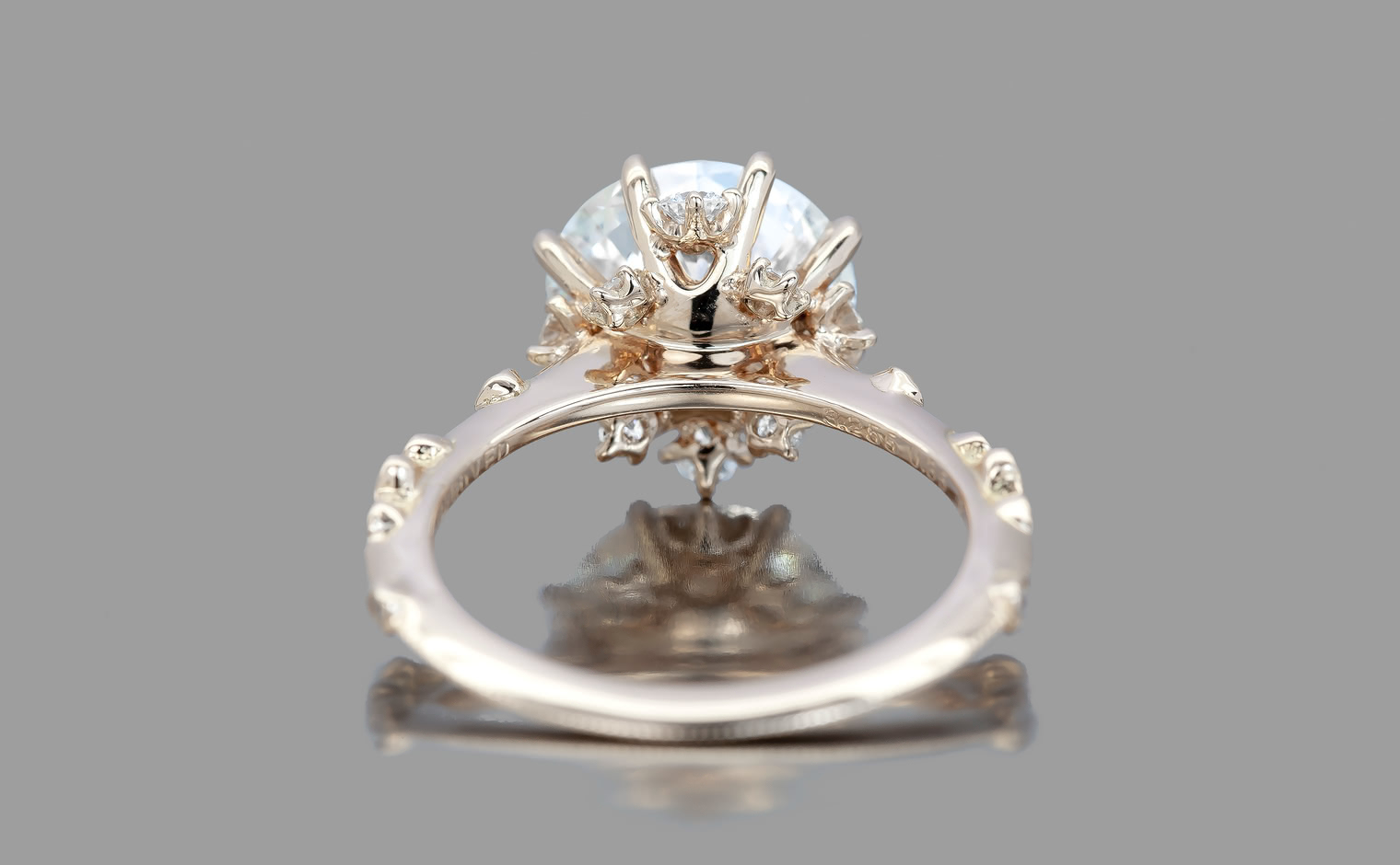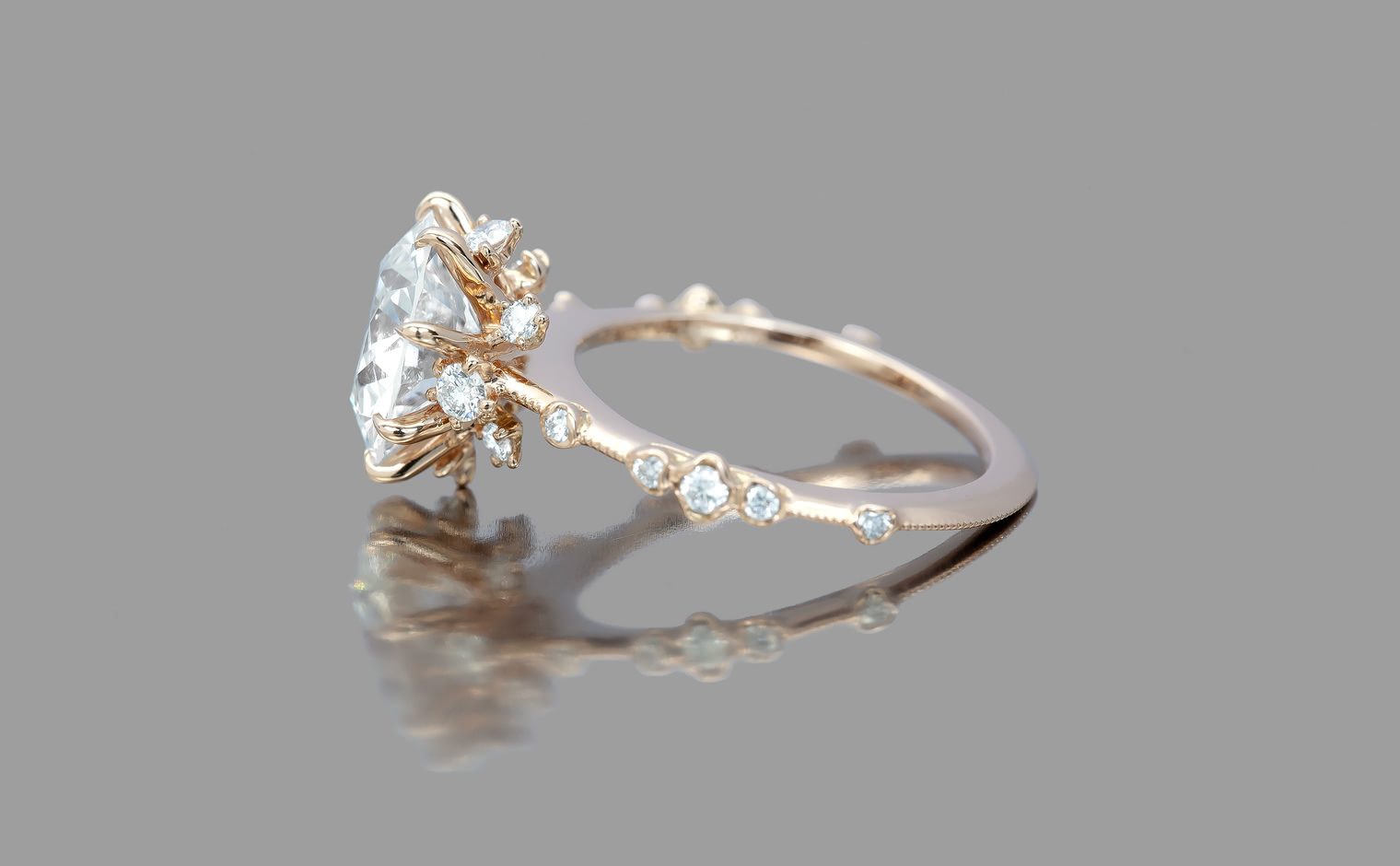 Just like a sparkling drop of Arctic fantasy. With its carefully chosen breathtakingly luminescent center diamond surrounded by a fractal of smaller white delicate diamonds accented by tiny diamond gems along a hand-milgrain slim rose gold band, the Diamond Snowflake Ring-Old Mine leaves you wishing for a winter of magic that never ends.
