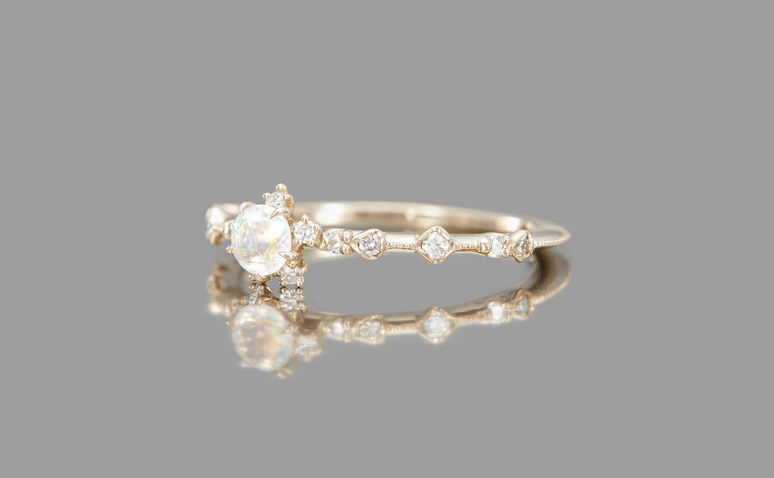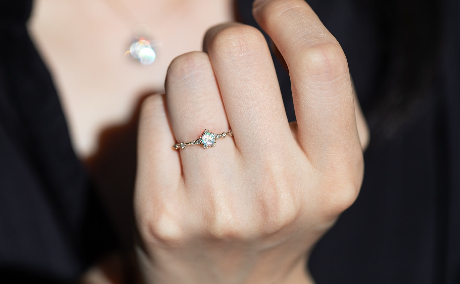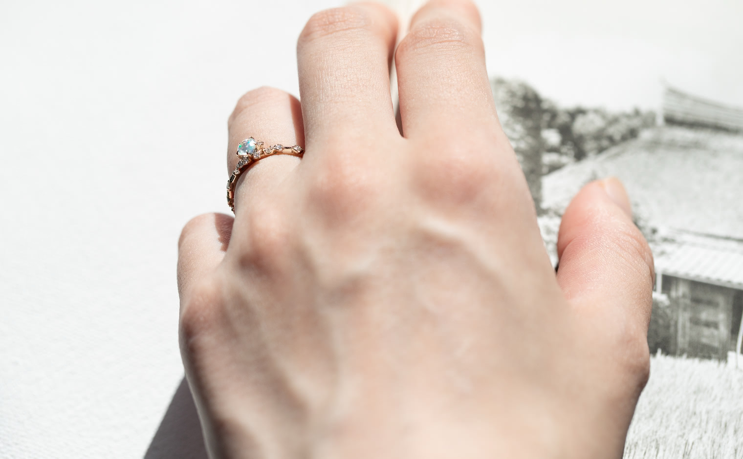 A fleeting shimmer, where opal’s radiance unveils soft depths of color. The Snowflake Ring-Opal captures quiet brilliance, a graceful expression of mystery and light—whispered, luminous, and enduring.