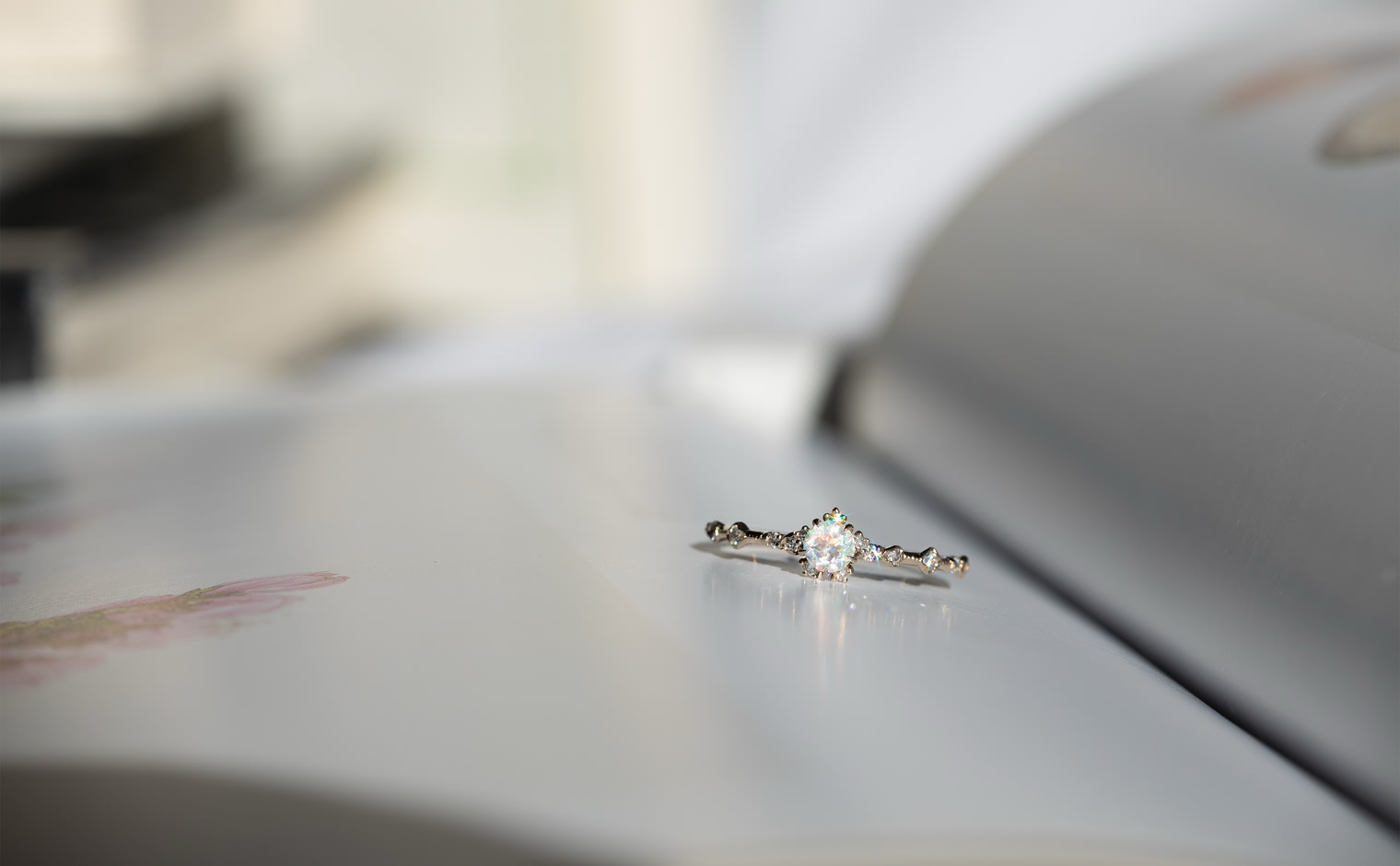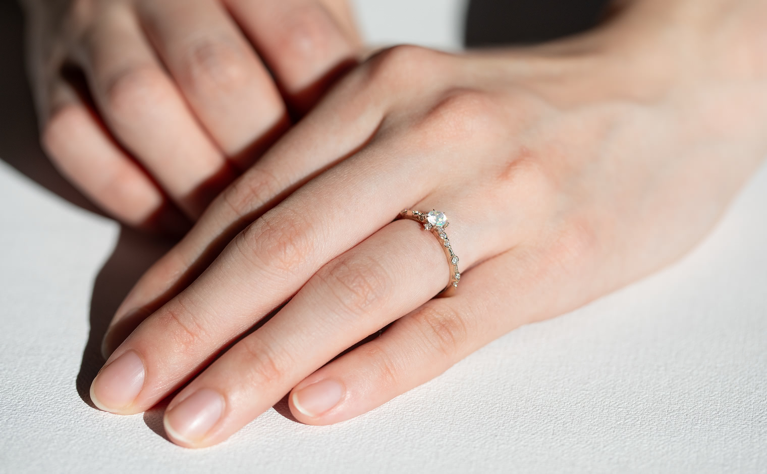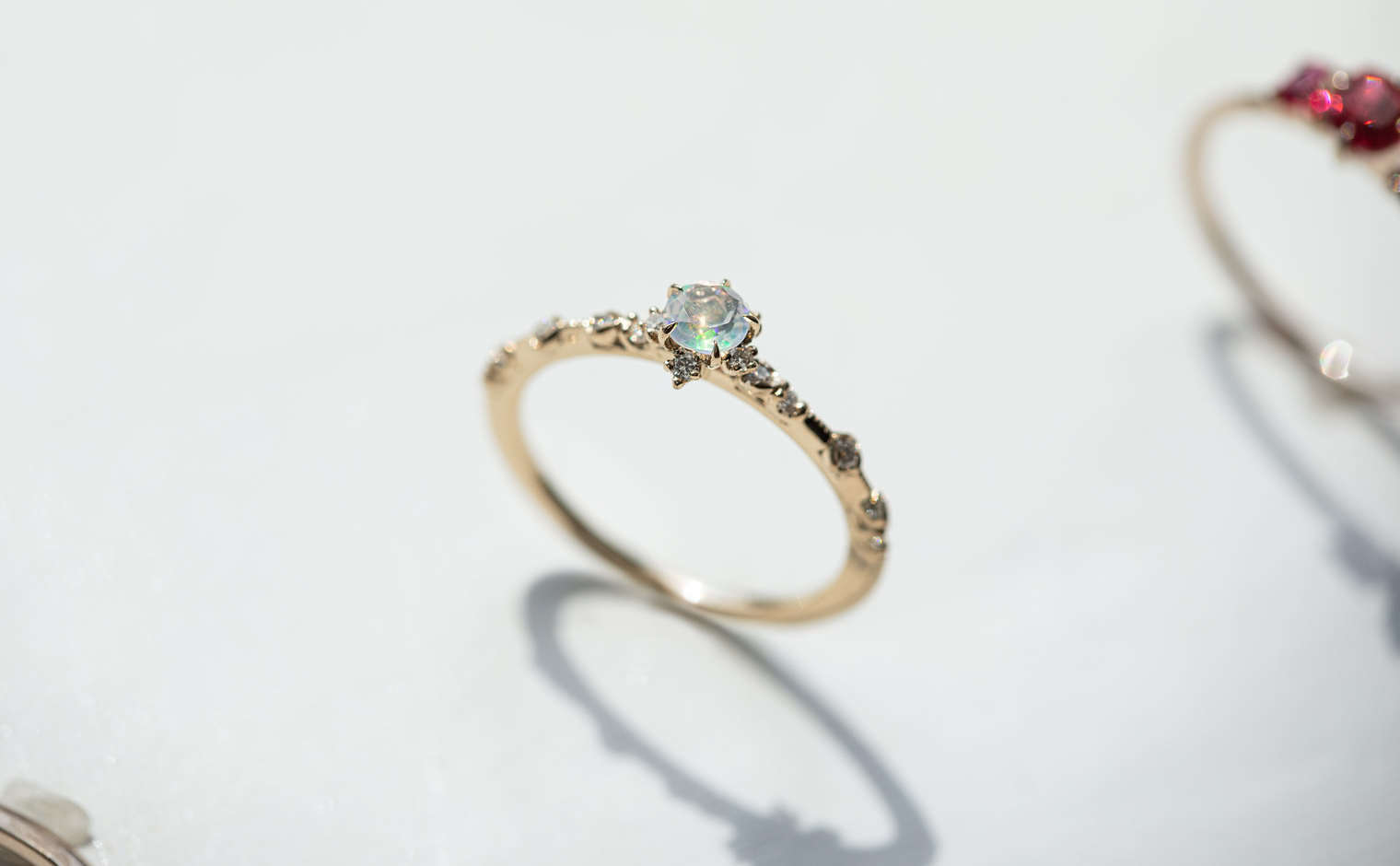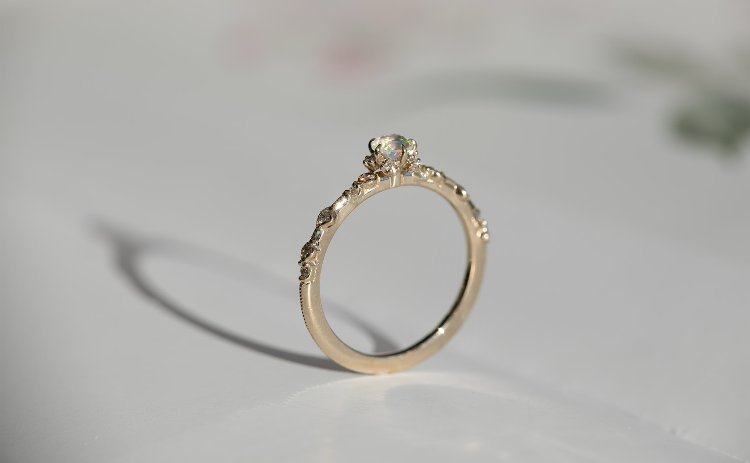 A fleeting shimmer, where opal’s radiance unveils soft depths of color. The Snowflake Ring-Opal captures quiet brilliance, a graceful expression of mystery and light—whispered, luminous, and enduring.