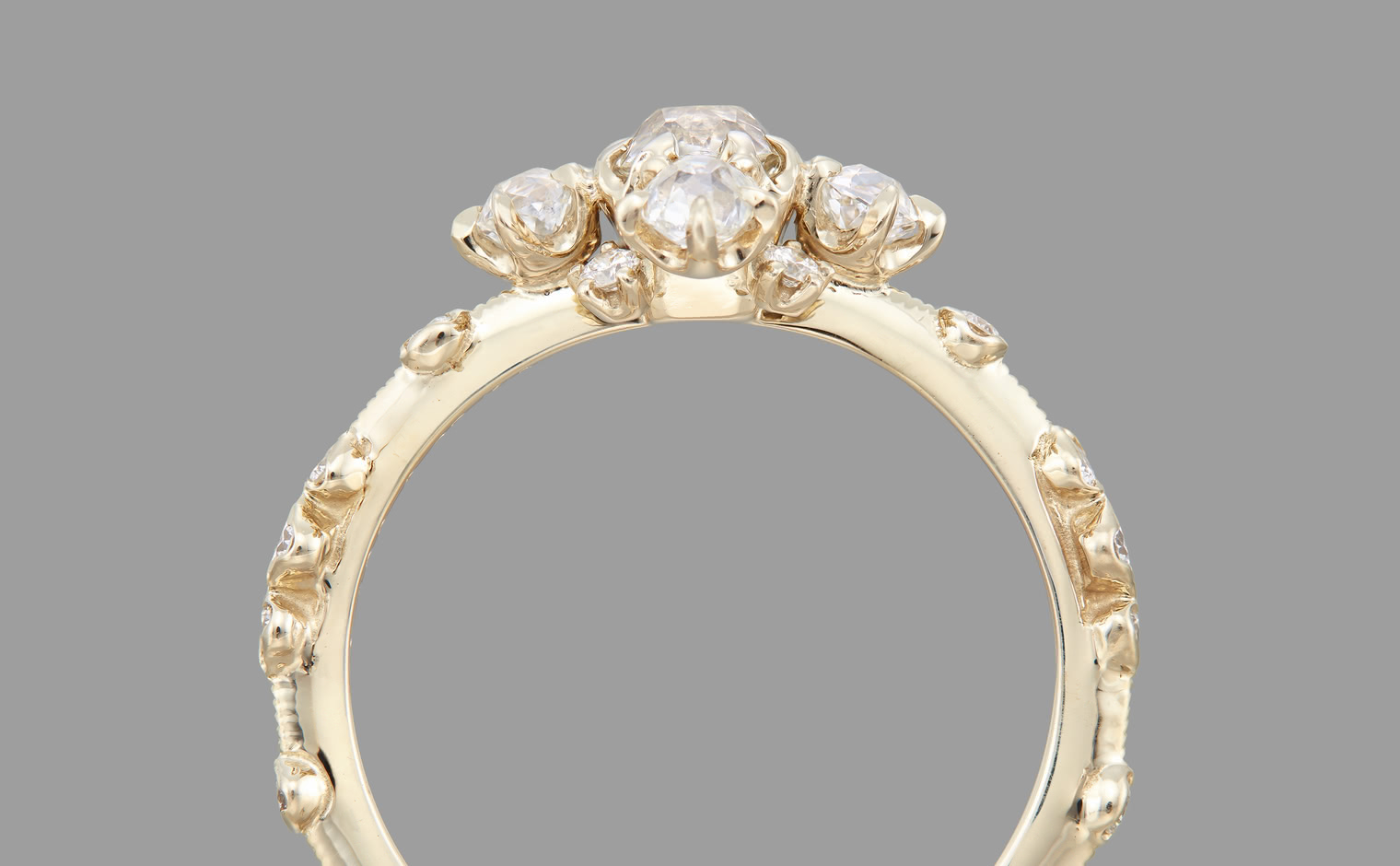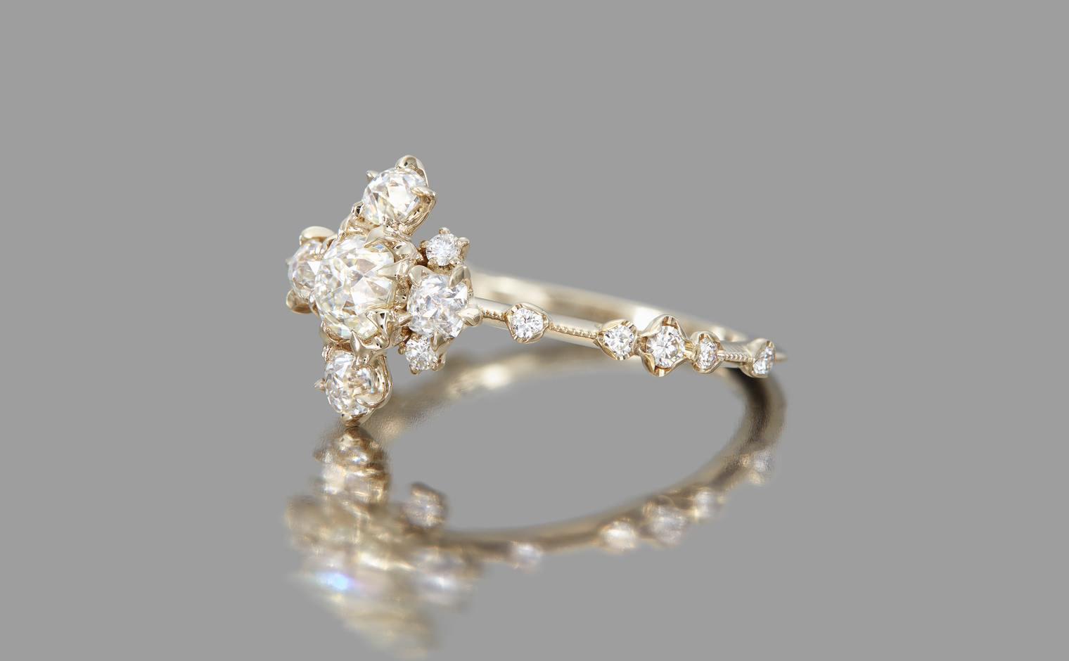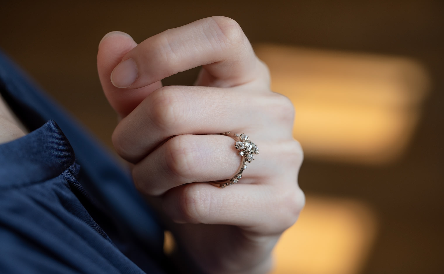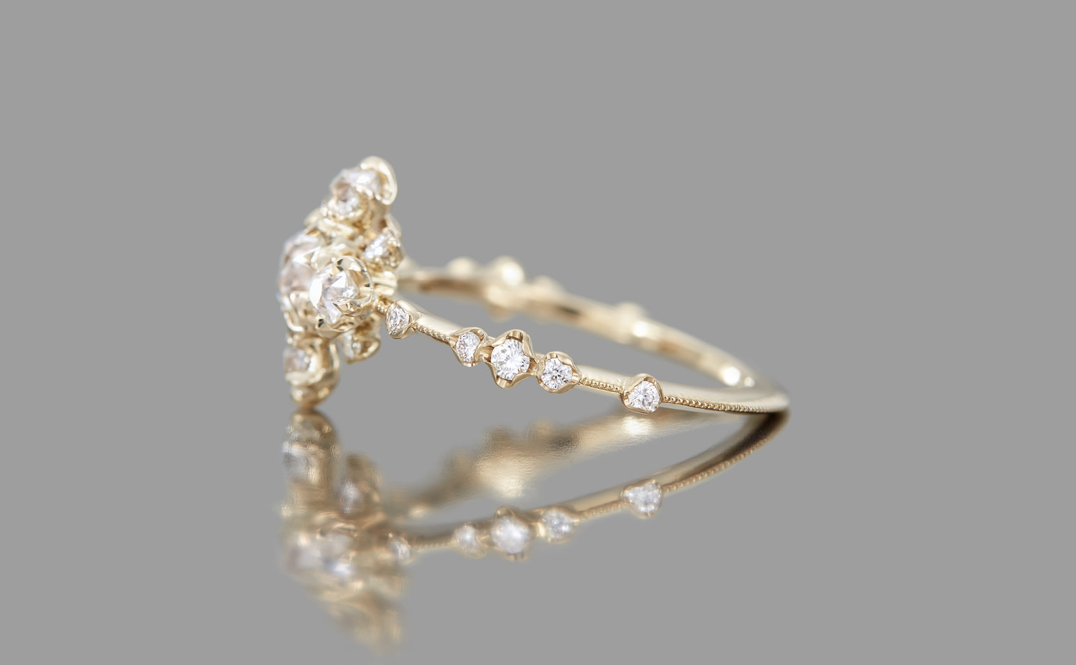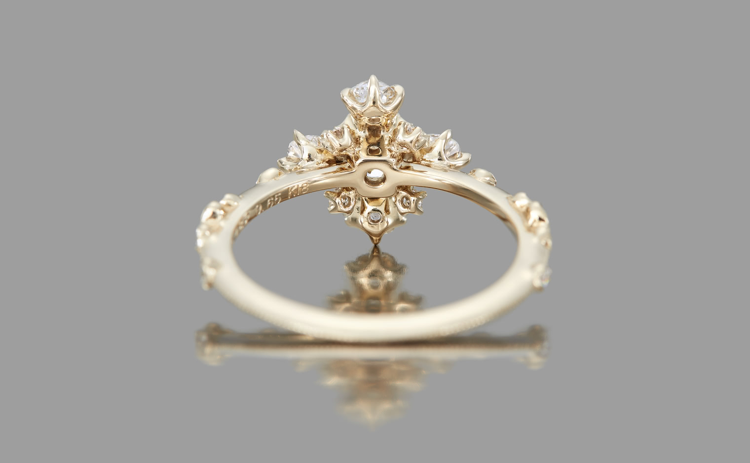A moment suspended in light, where brilliance reveals its quiet radiance. The Snowflake Ring–Apex embodies delicate artistry, a luminous expression of refinement—fleeting, yet eternal.