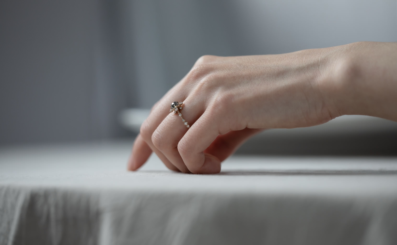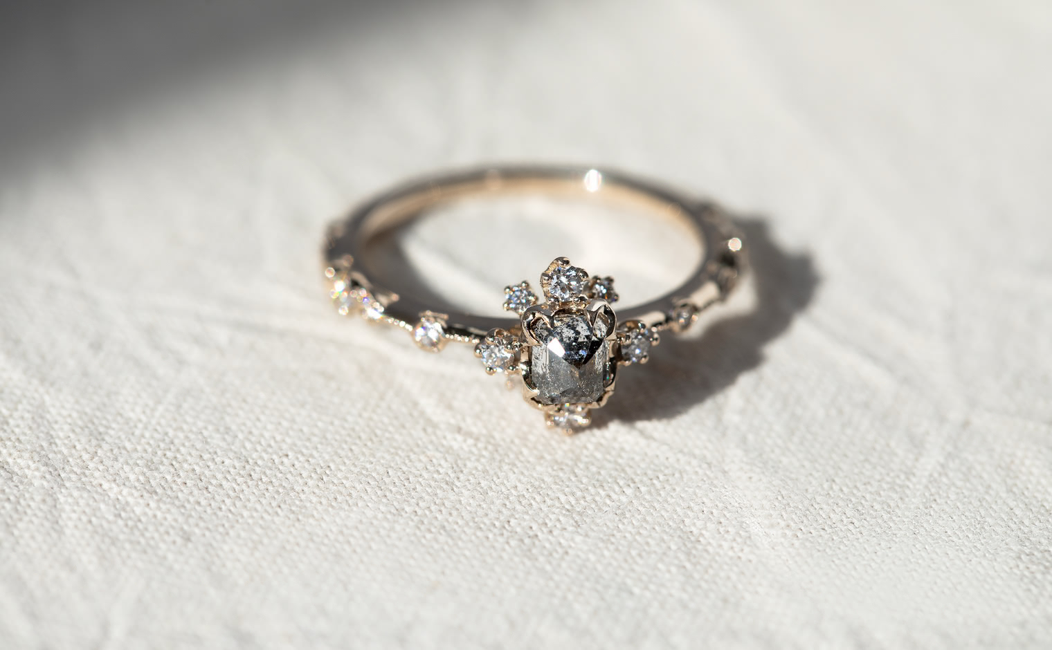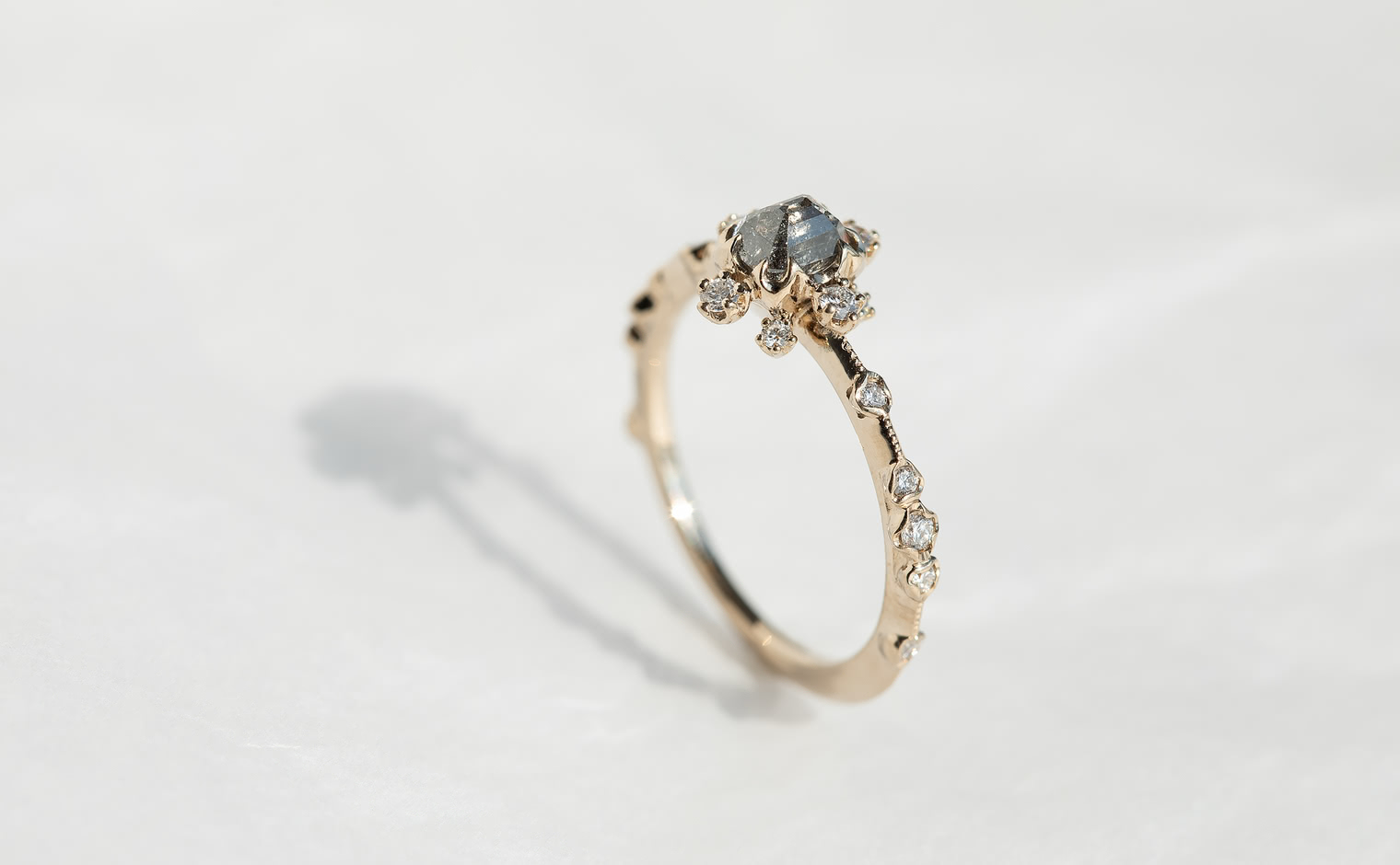 Enamor yourself with this one-of-a-kind luxurious creation that will make your heart skip a beat every time it twinkles in the light. This Snowflake Ring Supreme-Gray Diamond is a stunning addition to any collection, and its expert craftsmanship and timeless beauty are sure to captivate anyone who sees it. -