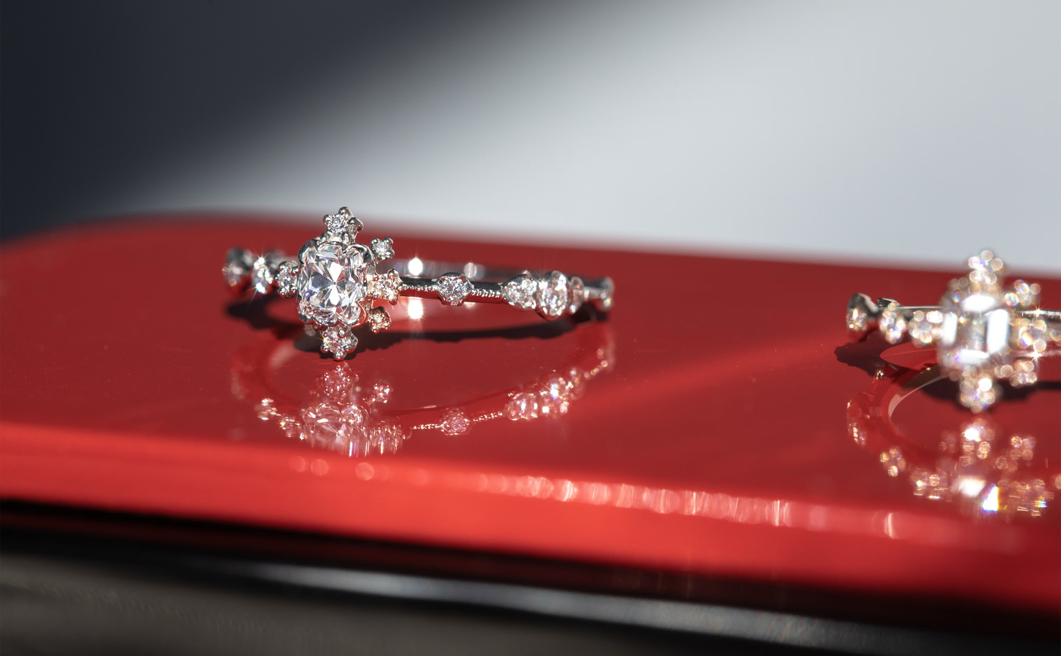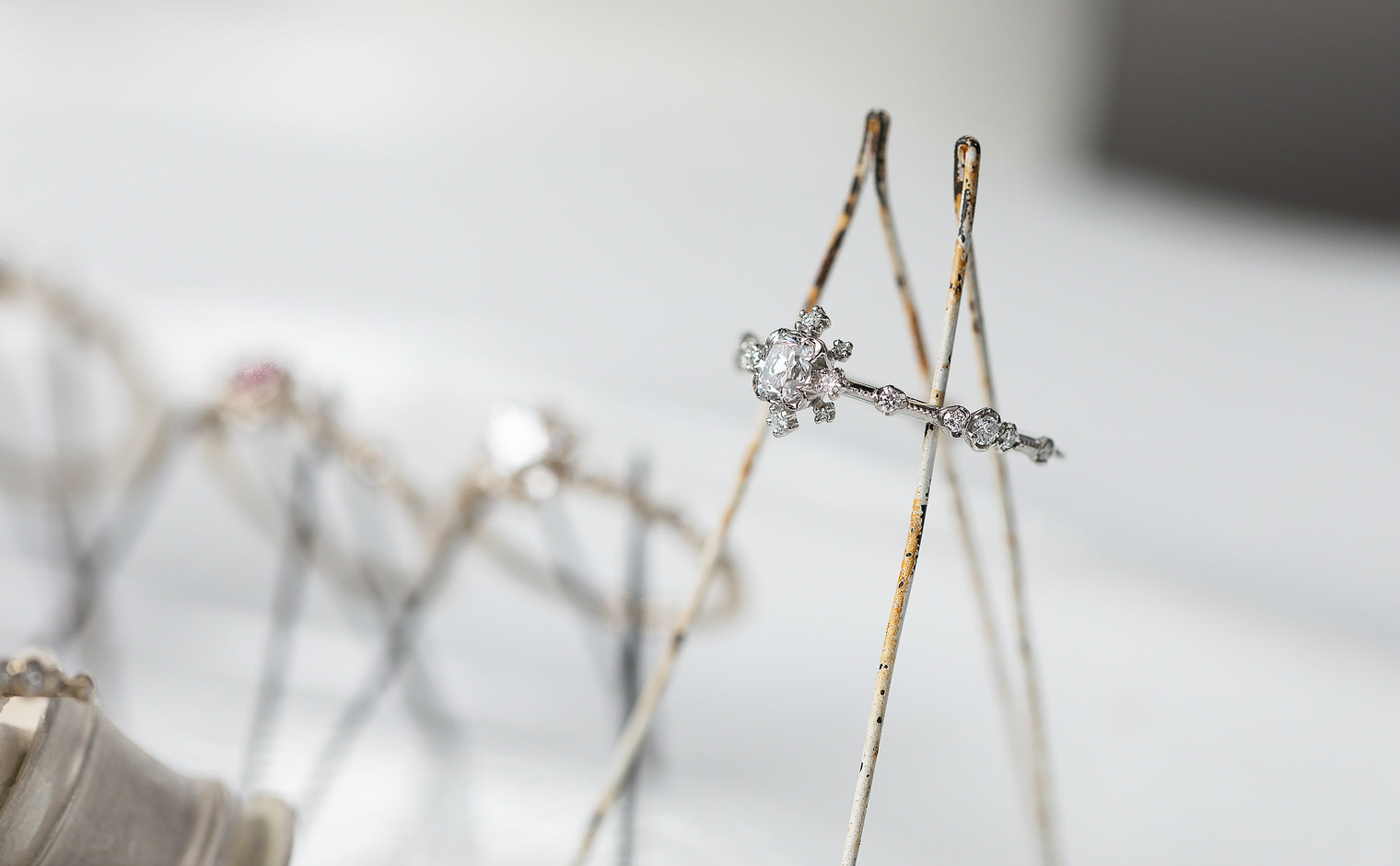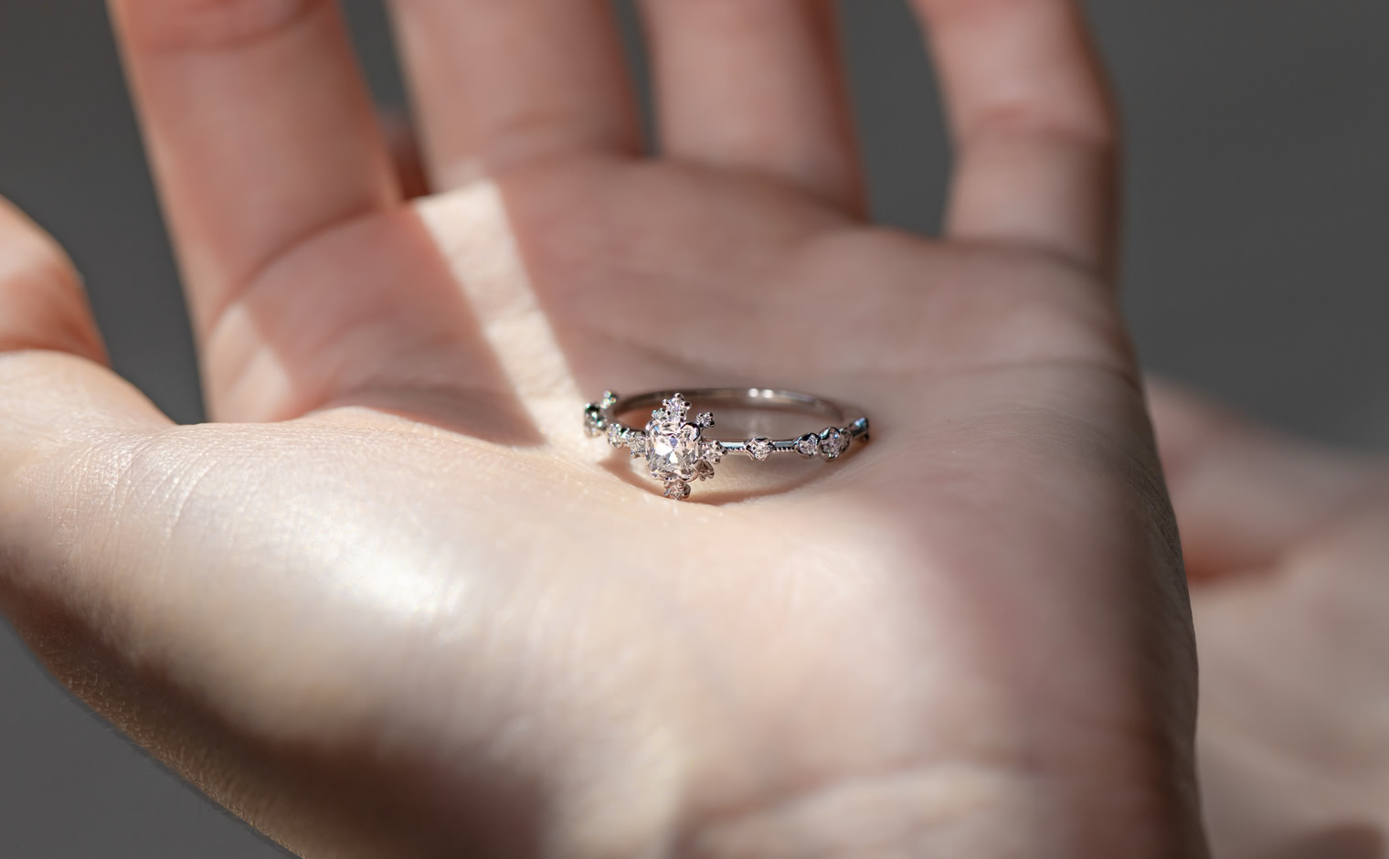 A soft shimmer, where light lingers in delicate formation. The Snowflake Ring Supreme–Old Mine embodies quiet sophistication, a whispered expression of grace and timeless elegance.