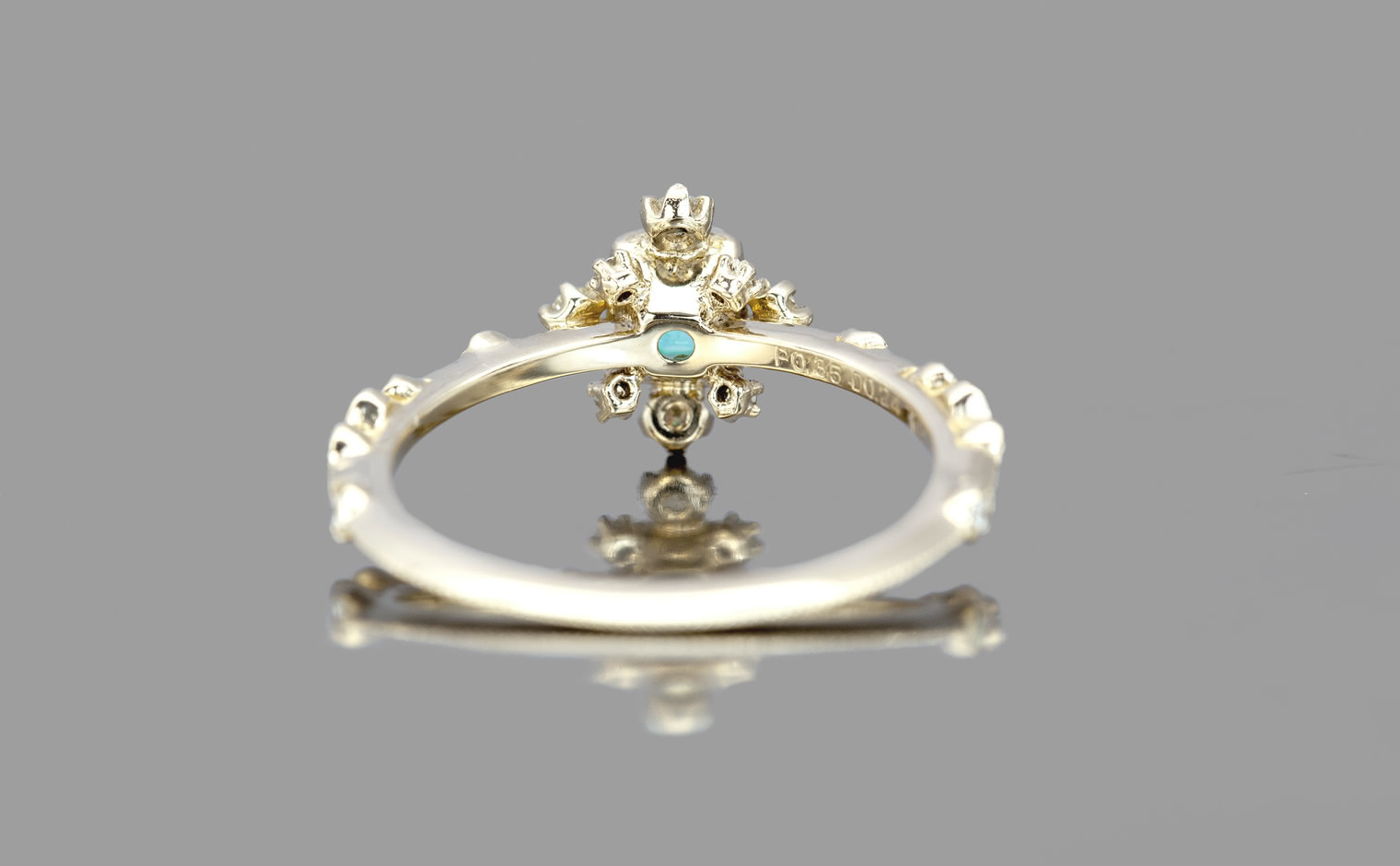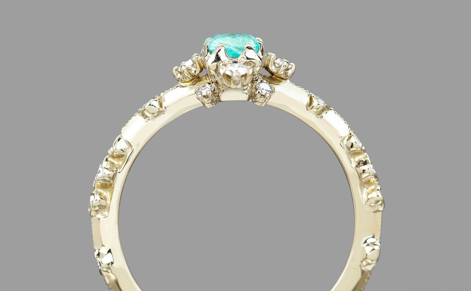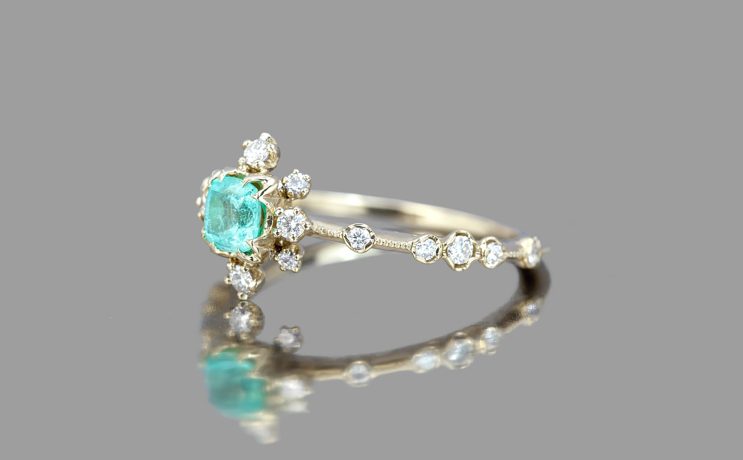 An everlasting divine winter creation. With its gloriously radiant glowing aqua-hued Paraiba tourmaline sitting atop a carefully handcrafted snowflake setting surrounded by the sweeping beauty of icy accent diamonds, the Snowflake Ring-Paraiba captures an enchanting blissful winter paradise on your finger.