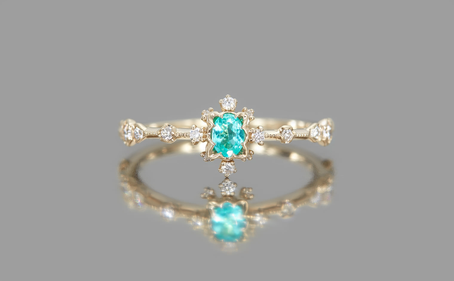 This breathtaking one-of-a-kind piece is crafted to bring you a lifetime of joy and happiness. Fall deeply in love with the Snowflake Ring Supreme-Paraiba, a symbol of elegance and sophistication that will capture the hearts and minds of all who see it. Let its stunning design and expert craftsmanship become a cherished part of your collection and a source of beauty and inspiration for years to come. -