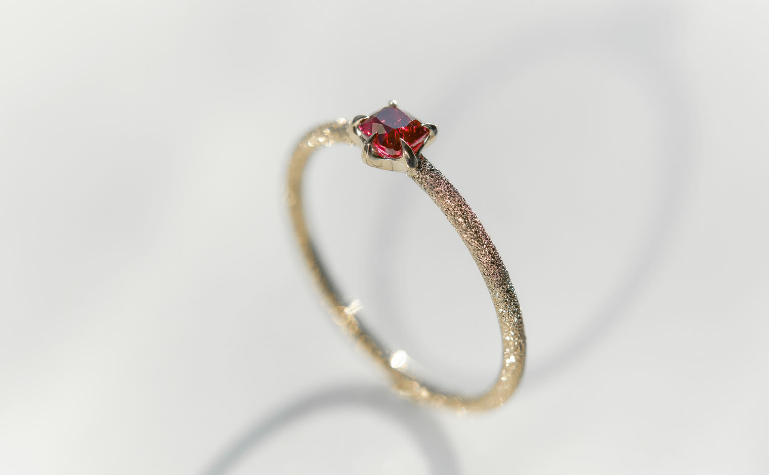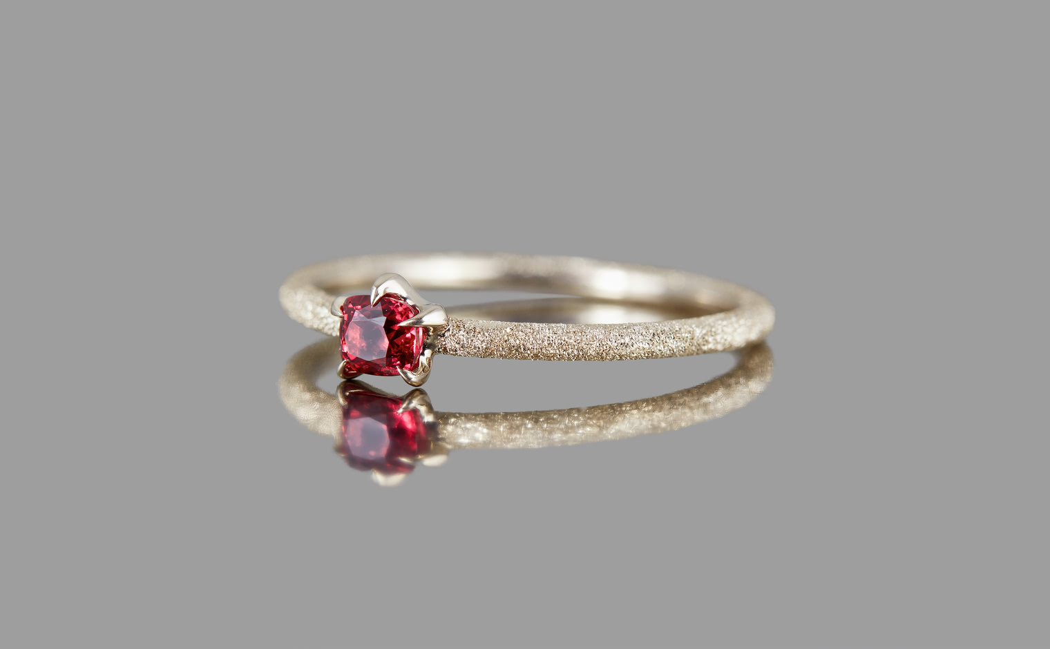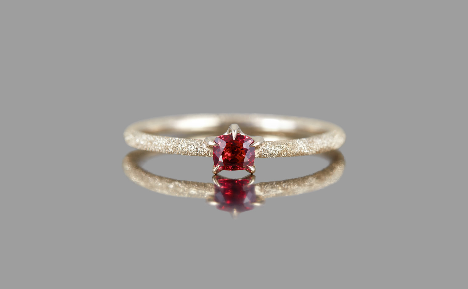 A Lasting Piece of Passion. With its breathtaking rich red cushion-cut spinel set against the gentle gleam of the finely textured stardust band, the Spinel Stardust Ring-Cushion is that feeling of love at first sight embodied in one spectacular creation.