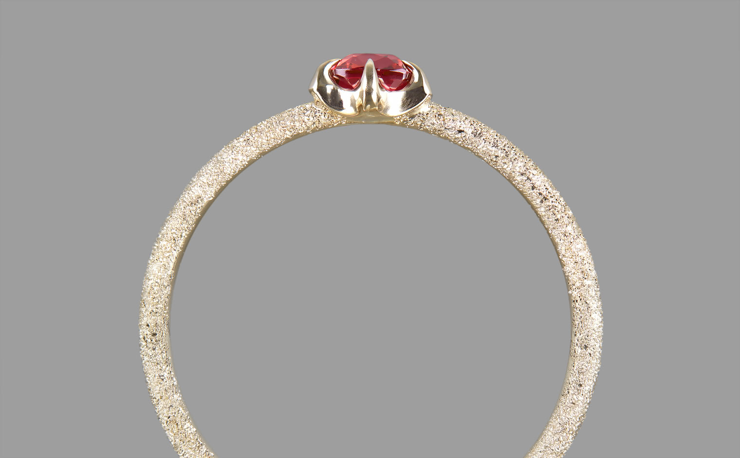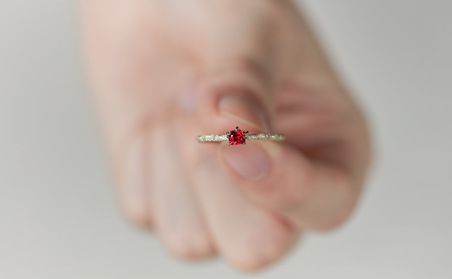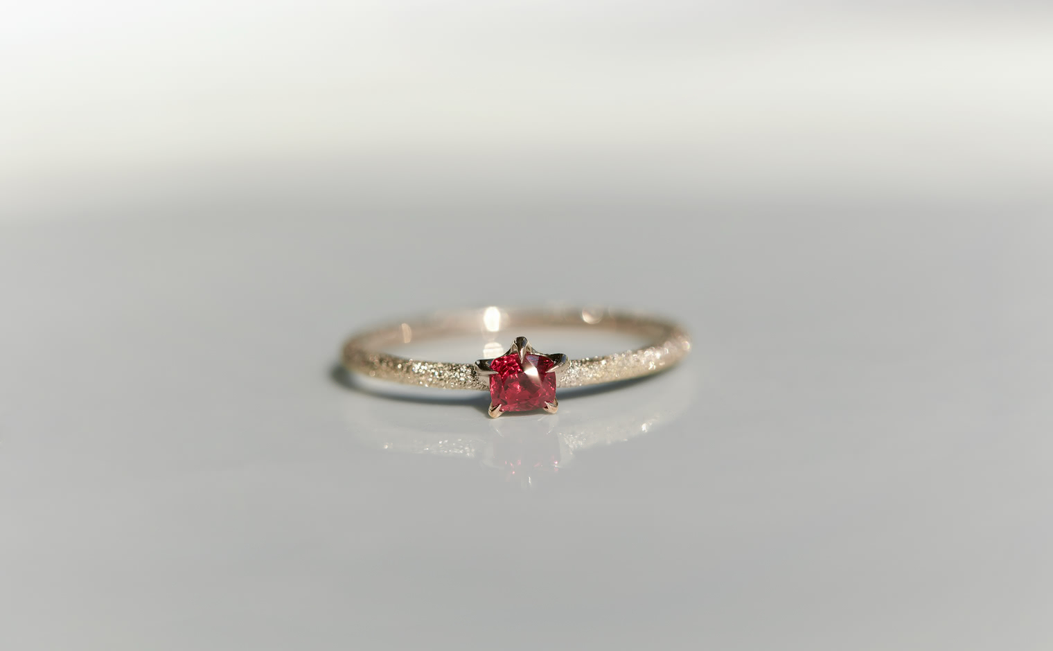 A Lasting Piece of Passion. With its breathtaking rich red cushion-cut spinel set against the gentle gleam of the finely textured stardust band, the Spinel Stardust Ring-Cushion is that feeling of love at first sight embodied in one spectacular creation.