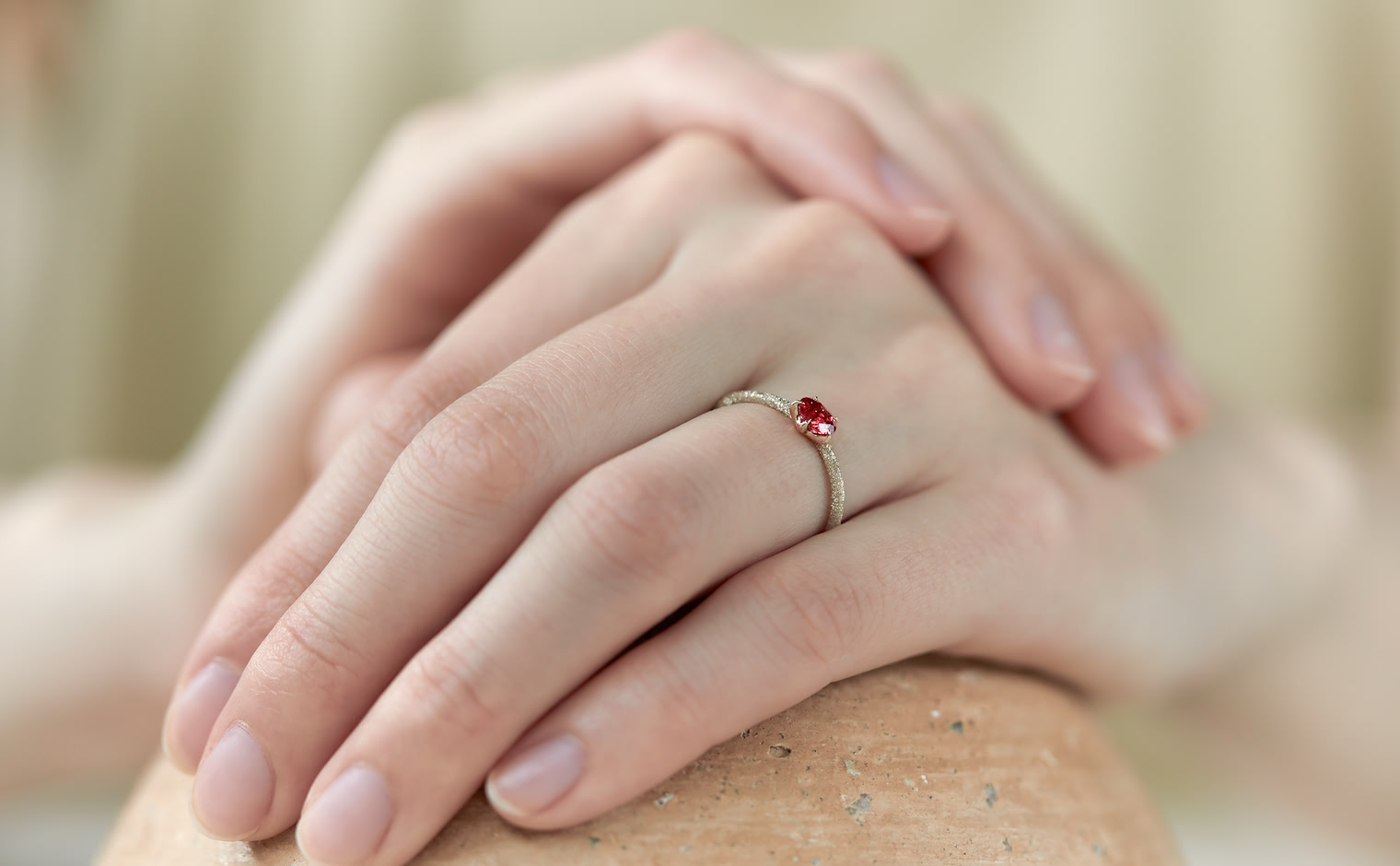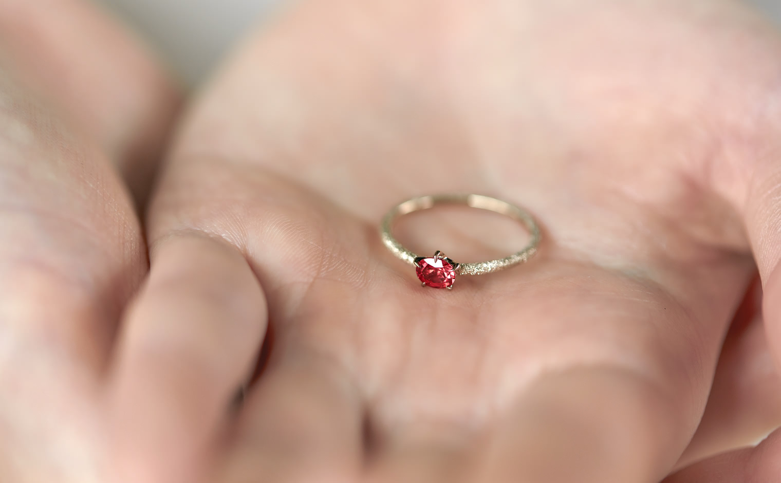 A Love that Grows and Glows. Let the priceless beauty of the Spinel Stardust Ring-Eclipse make your heart skip a beat, with its intense red oval-cut spinel set on a stardust-textured band every time you look at it.