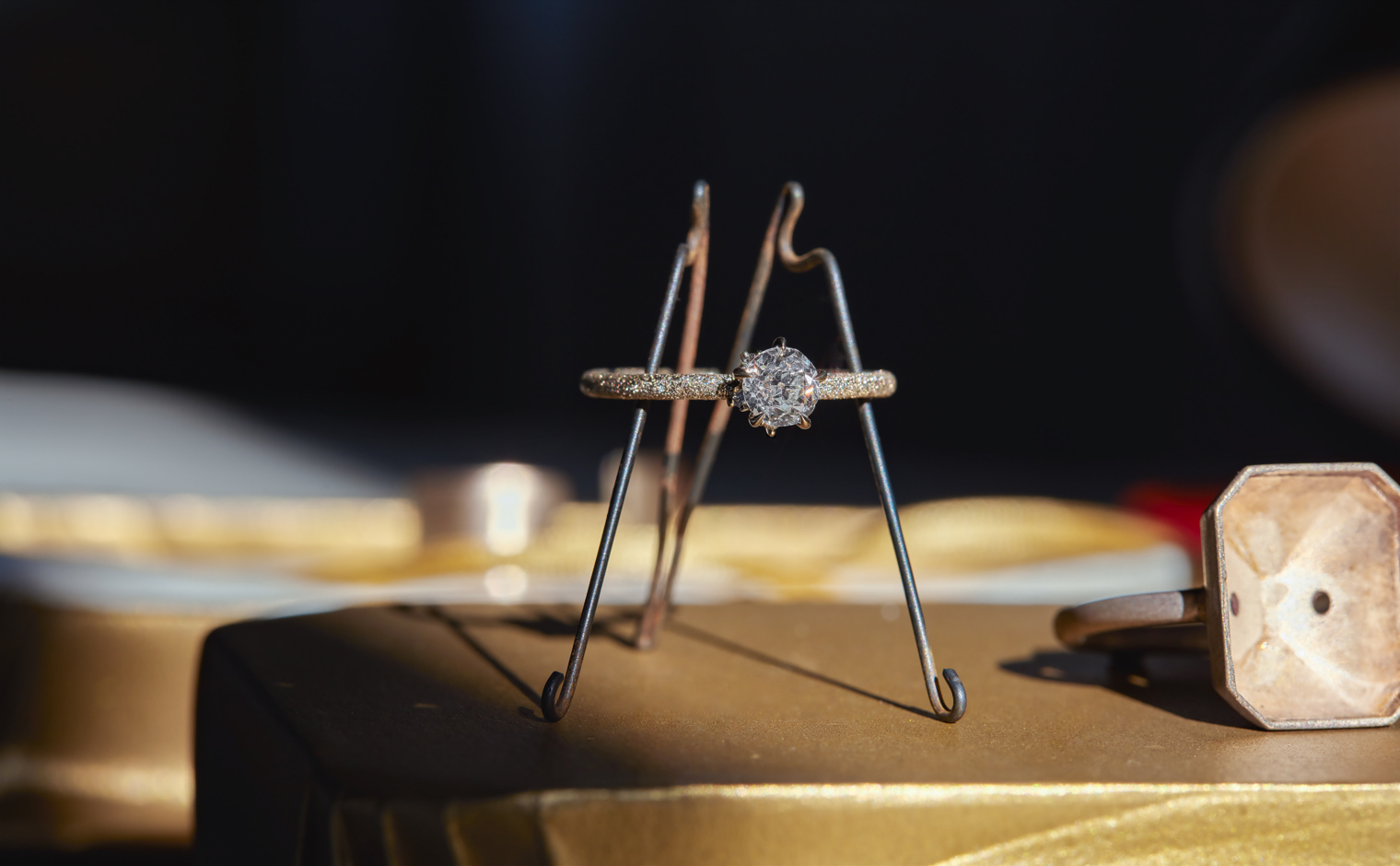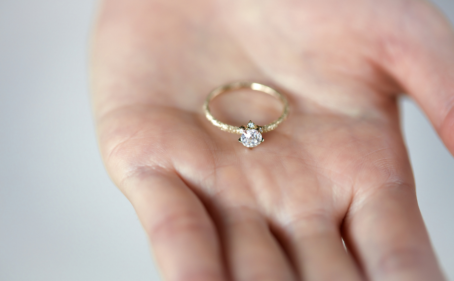 - Diamond (center) 0.492 ct. G color, clarity VS-2 Antique cut.