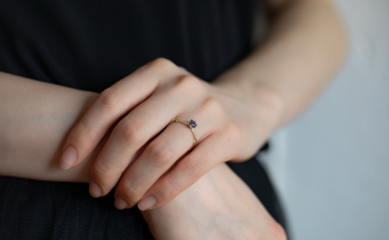 A subtle play of light and form, where sapphire reveals its serene depth. The Twisting Solitaire Ring–Sapphire reflects enduring elegance, its essence both timeless and gracefully refined.
