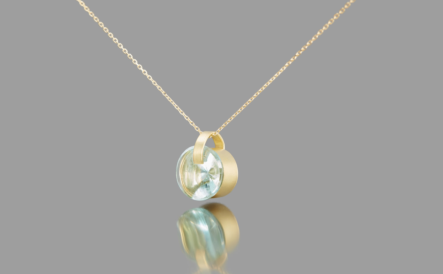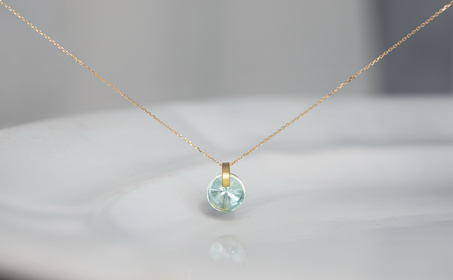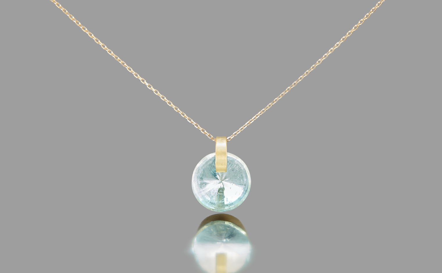 Indulge in glacial serenity with the Arctic Aquamarine Necklace. Expertly handcrafted, this passion piece features a gleaming, ice-blue round Aquamarine center stone within a handcrafted gold setting, suspended from an adjustable yellow gold chain.The Arctic Aquamarine Necklace is a true masterpiece of exceptional artistry and exquisite design.